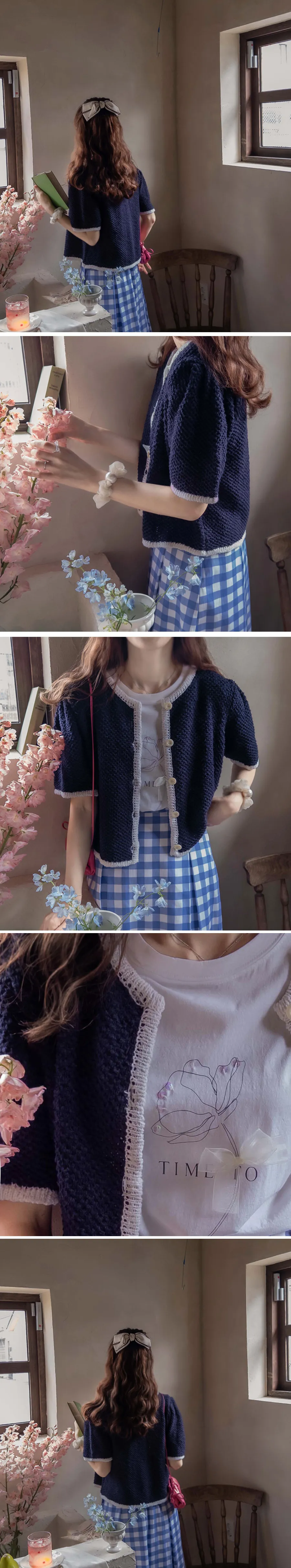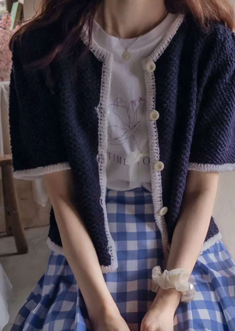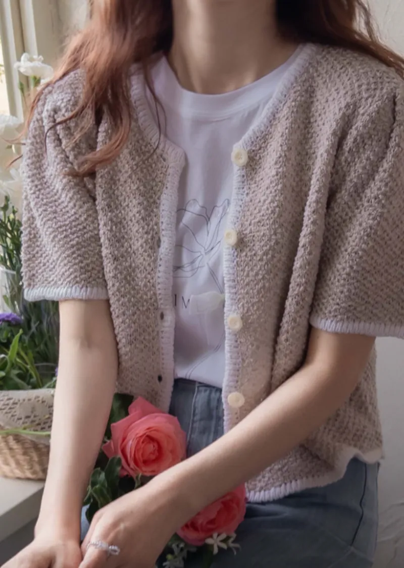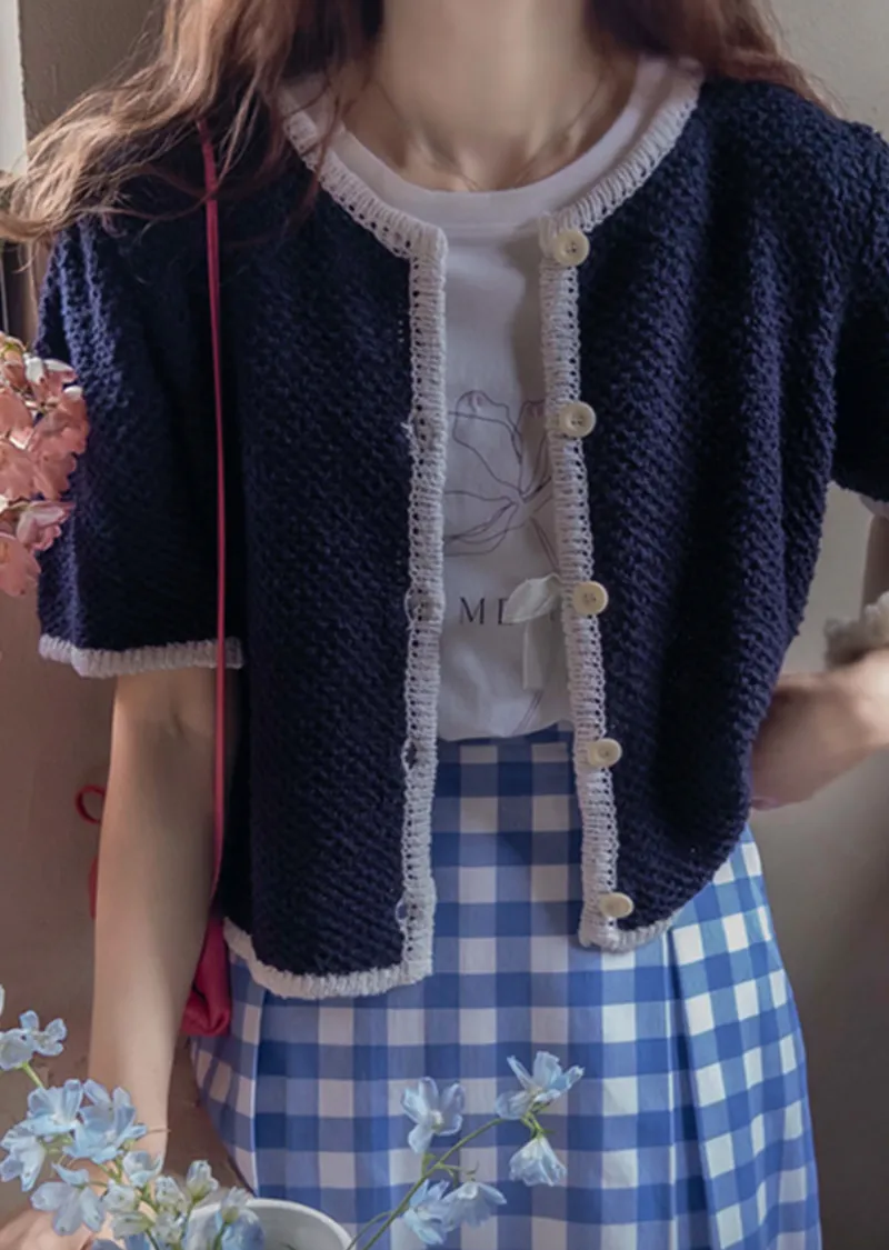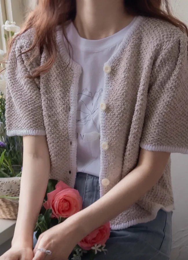 明亮配色邊設計鈕扣短袖開衫