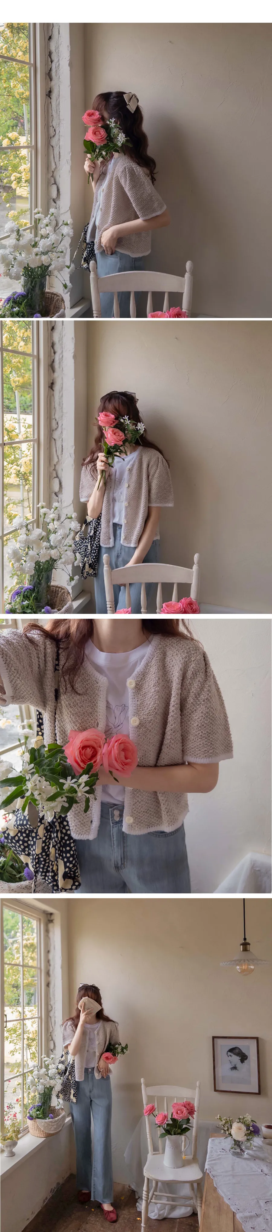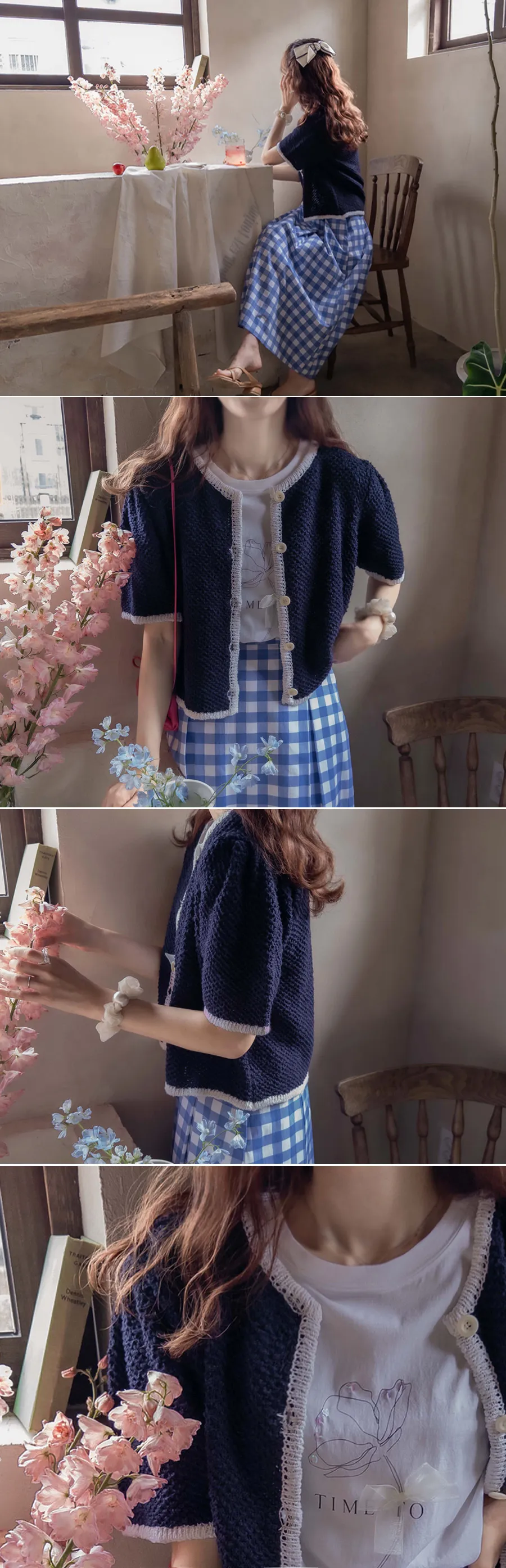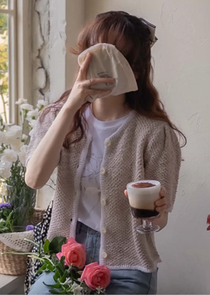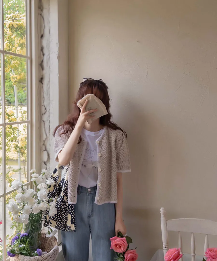 明亮配色邊設計鈕扣短袖開衫