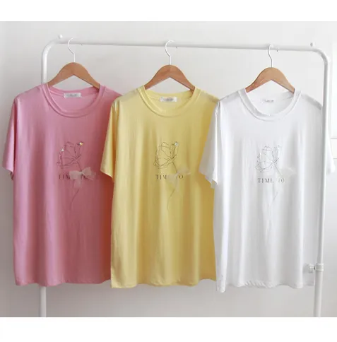 [帶有絲帶裝飾和串珠玫瑰的迷人設計][給人一種明亮的心情][具有優雅魅力的上衣] [穿著舒適