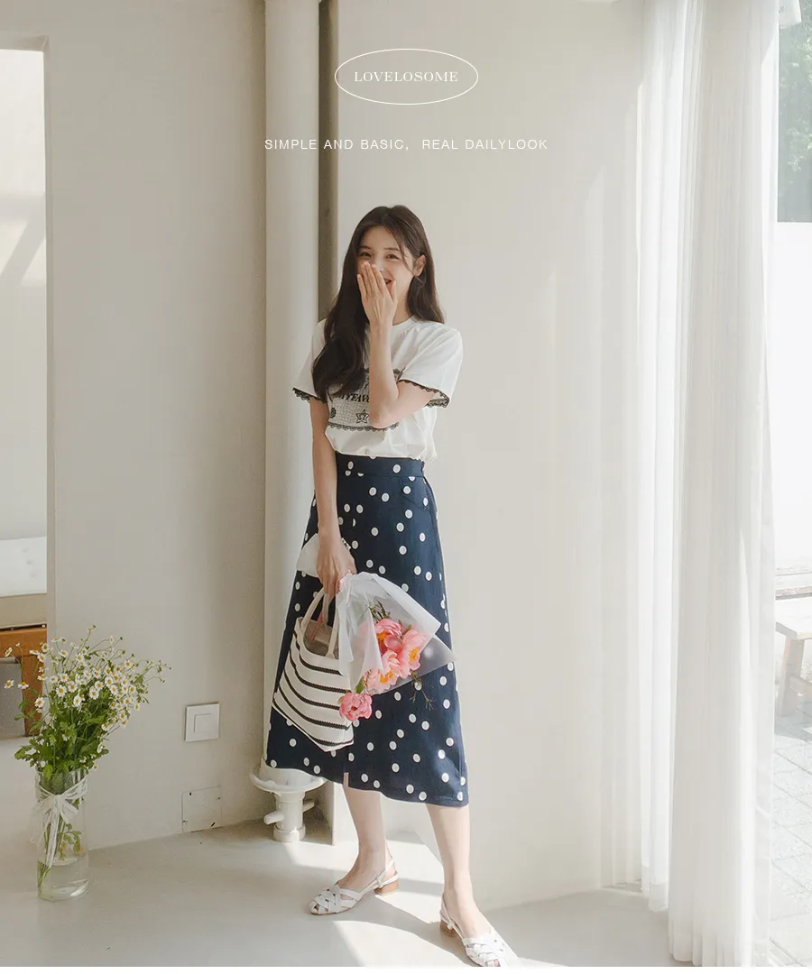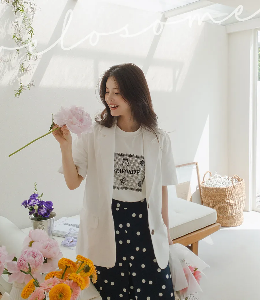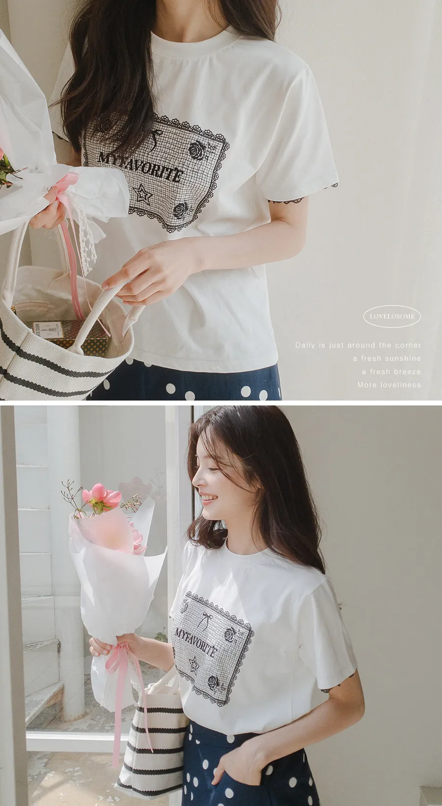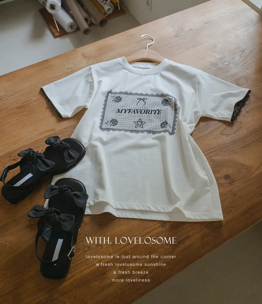 一款充滿可愛緞帶蕾絲的短袖T卹。 採用基本版型和圓領設計。 適中的半袖線條和蕾絲,給人一種奢華的感覺,繡有蕾絲和花朵絲帶,與外衣搭配也不會被遮擋的設計。 搭配裙子,給人一種可愛又奢華的情調。 搭配基本款休閒褲或牛仔褲也很適合日常穿著!