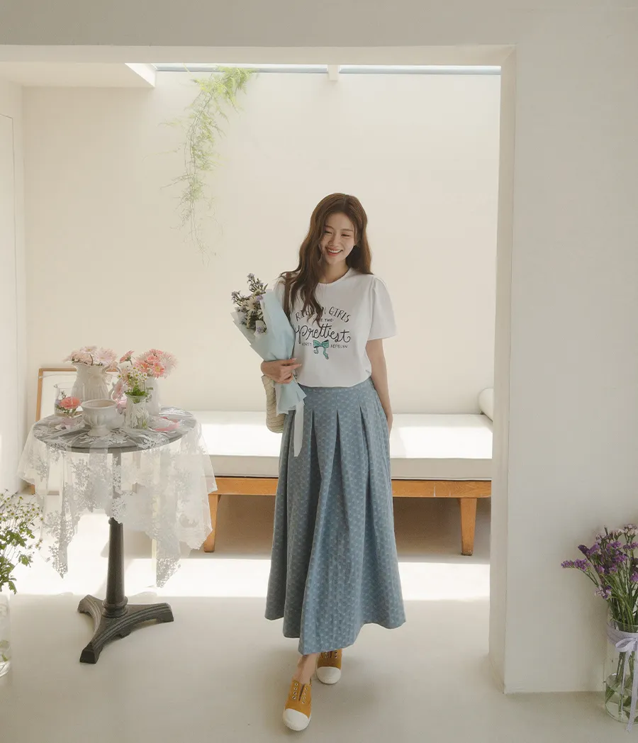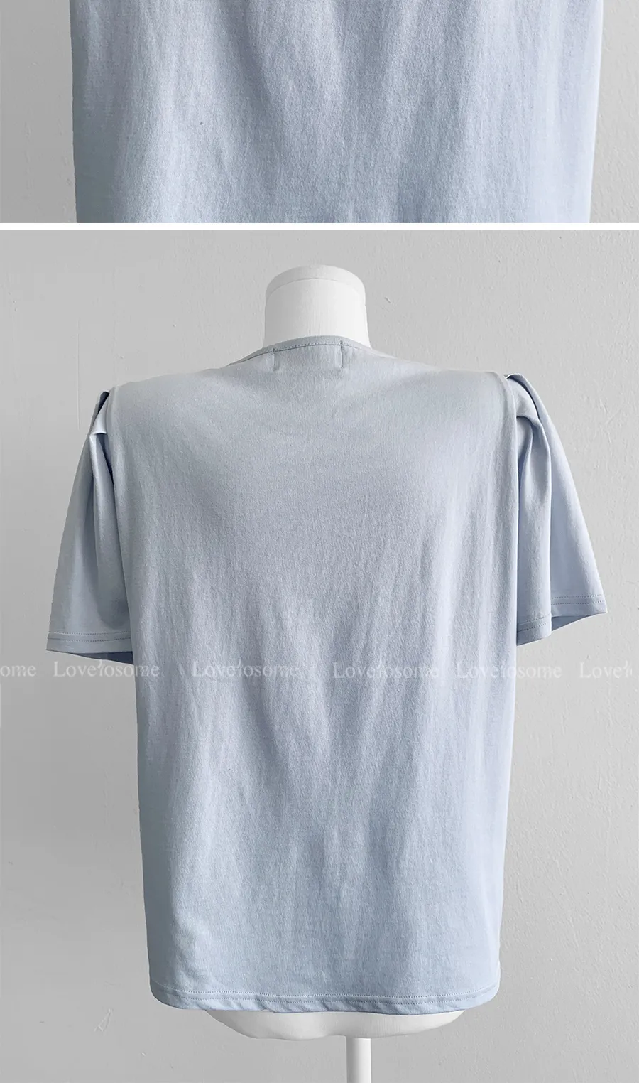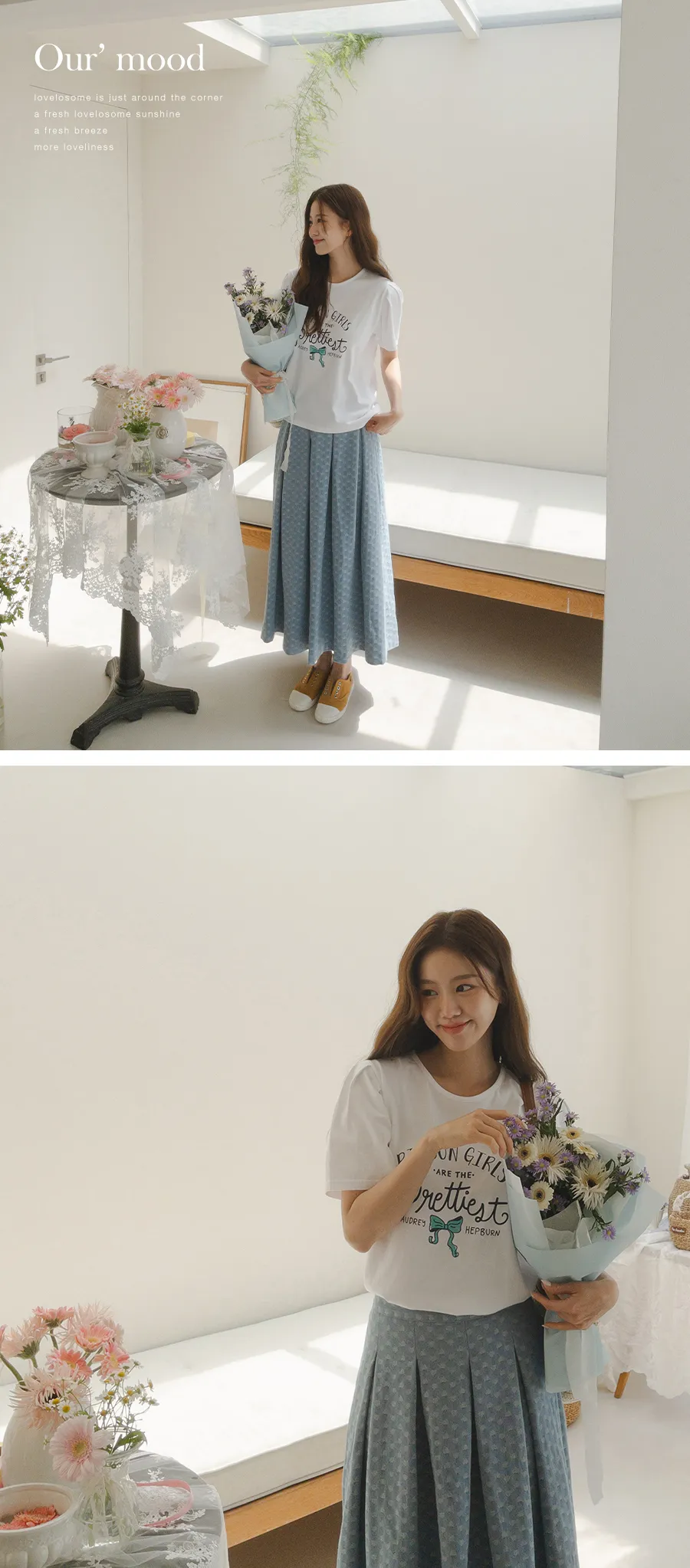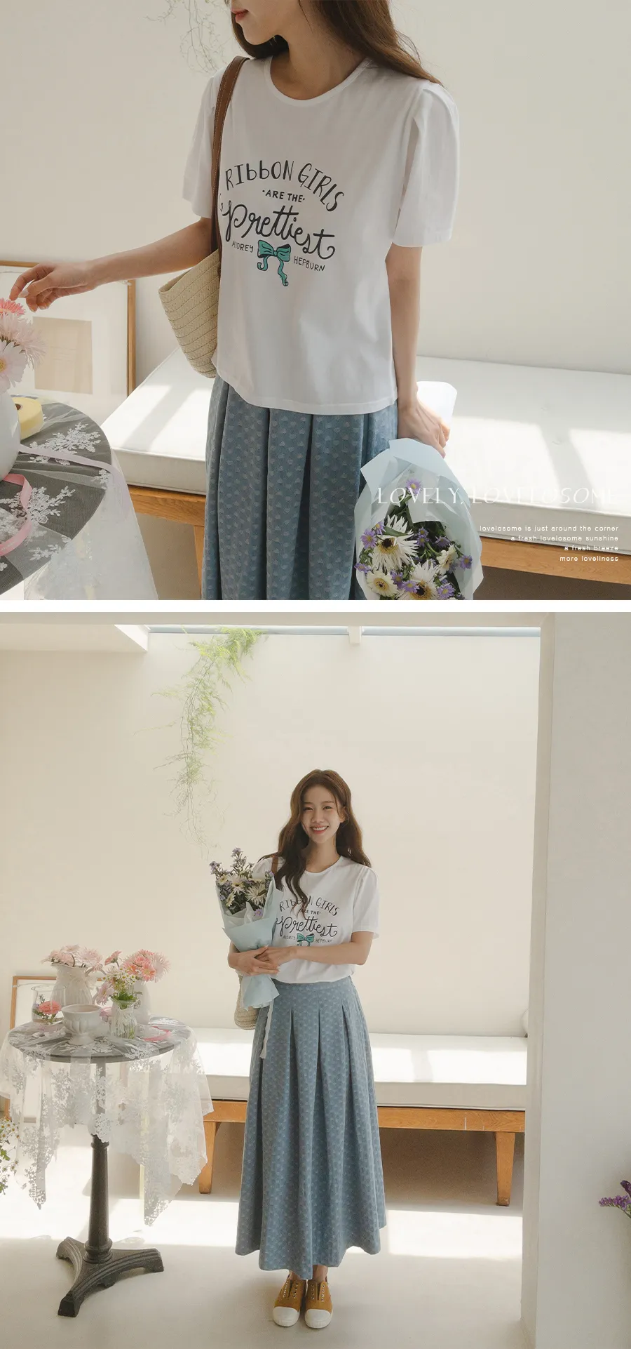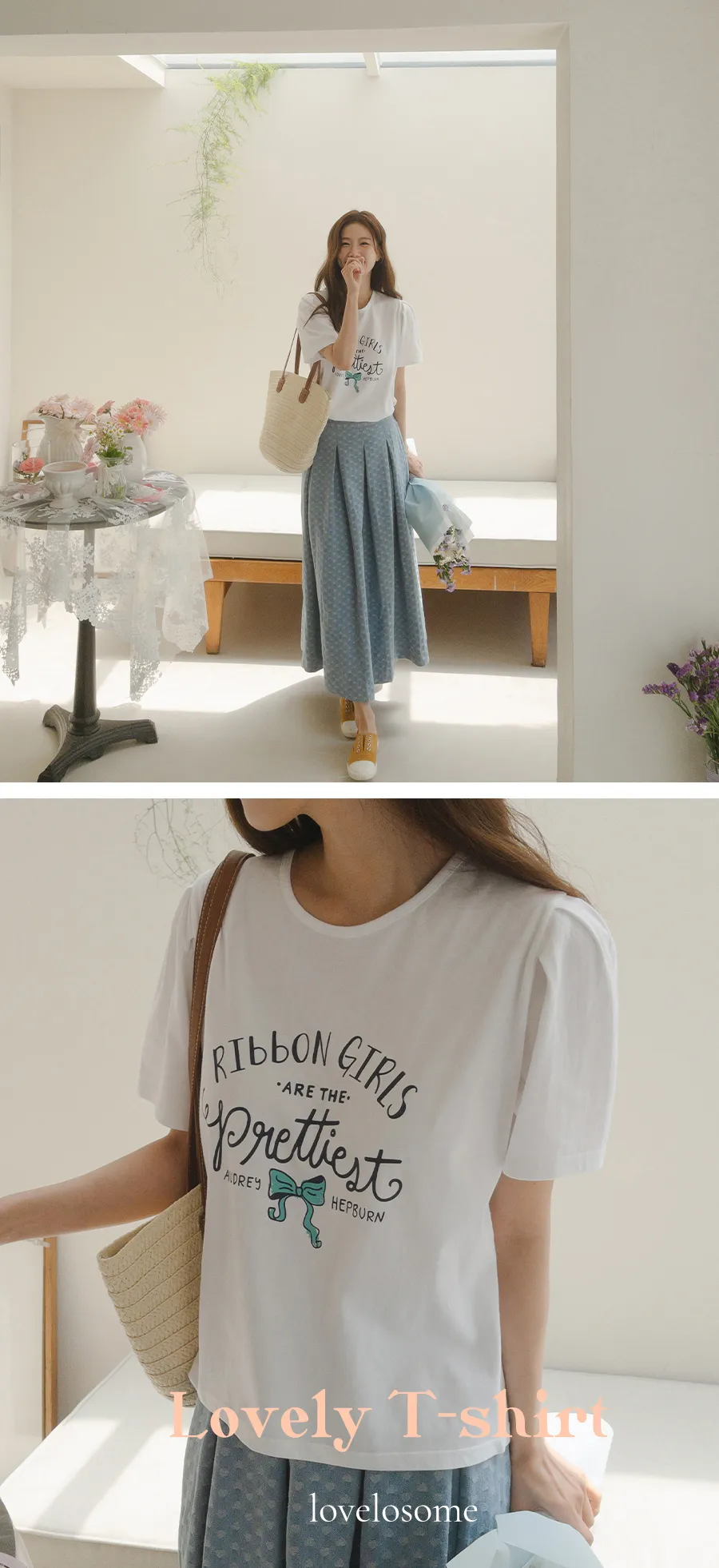 可愛蝴蝶結字母印花肩線剪裁短袖上衣