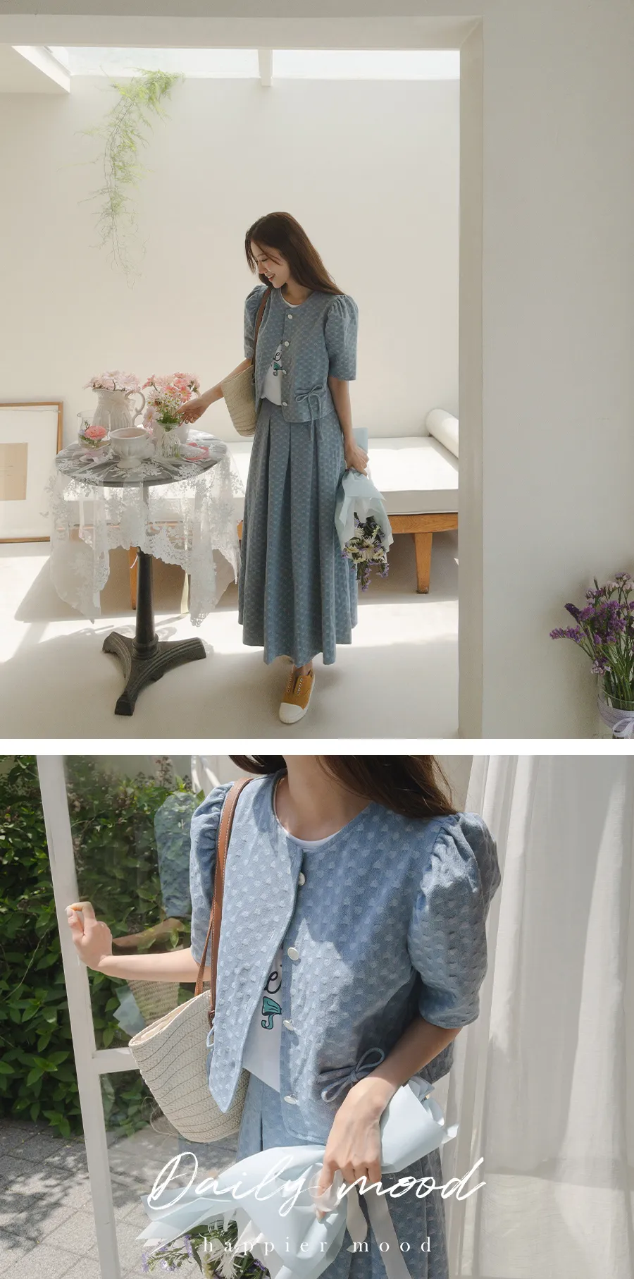 可愛優雅點綴蝴蝶結泡泡袖排扣外套