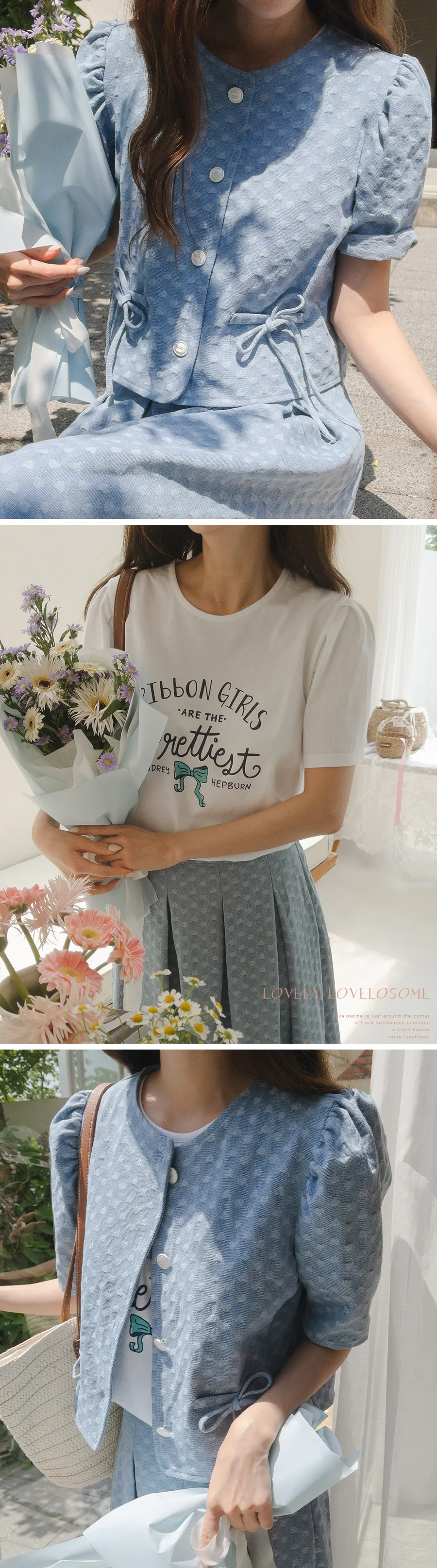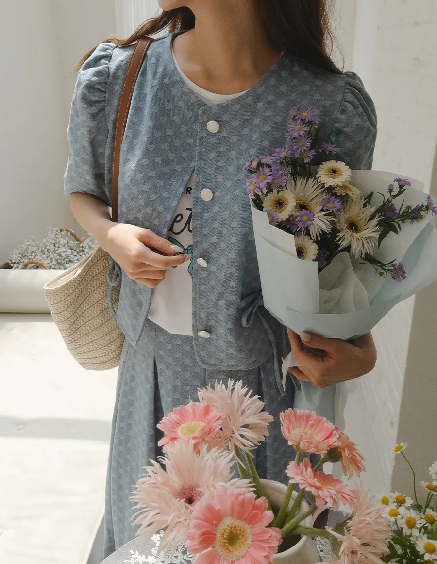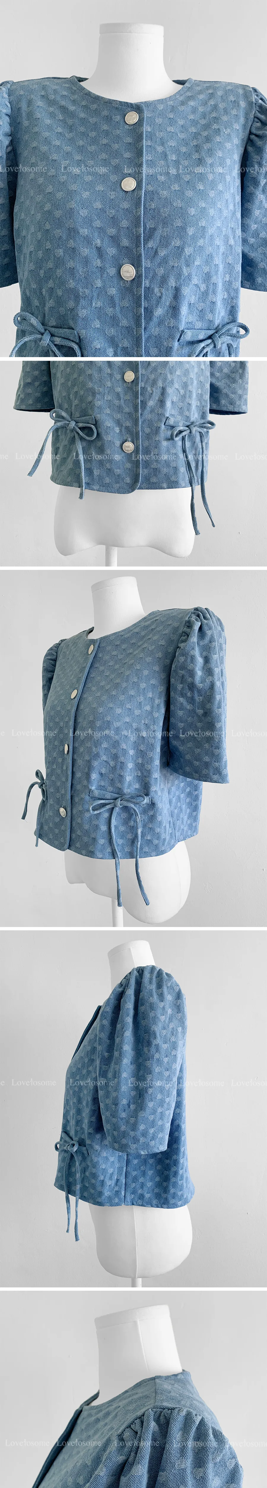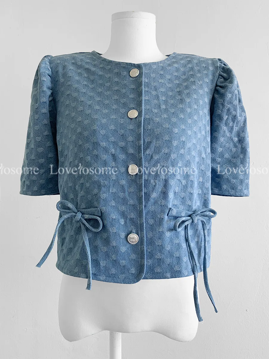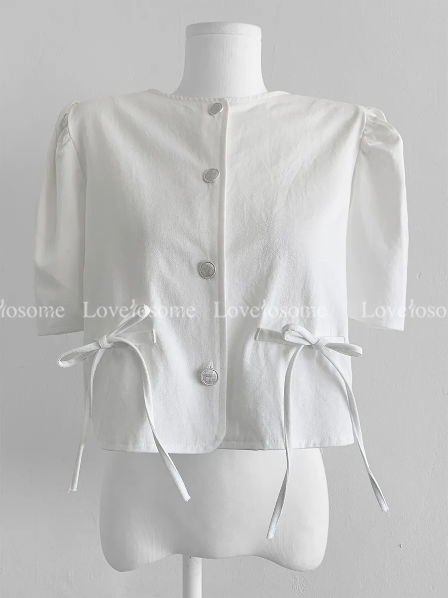 可愛優雅點綴蝴蝶結泡泡袖排扣外套