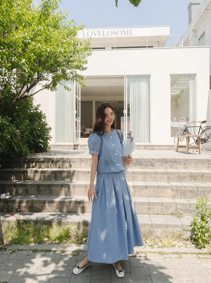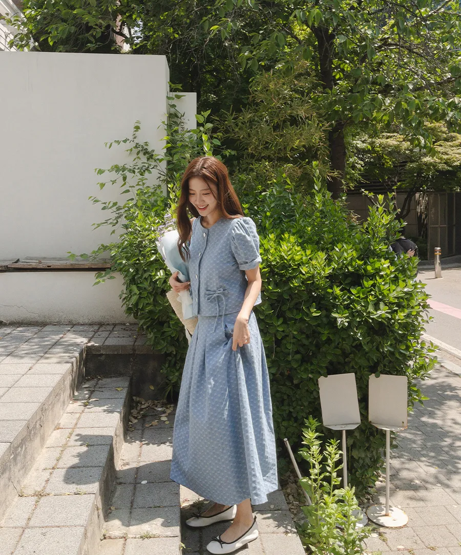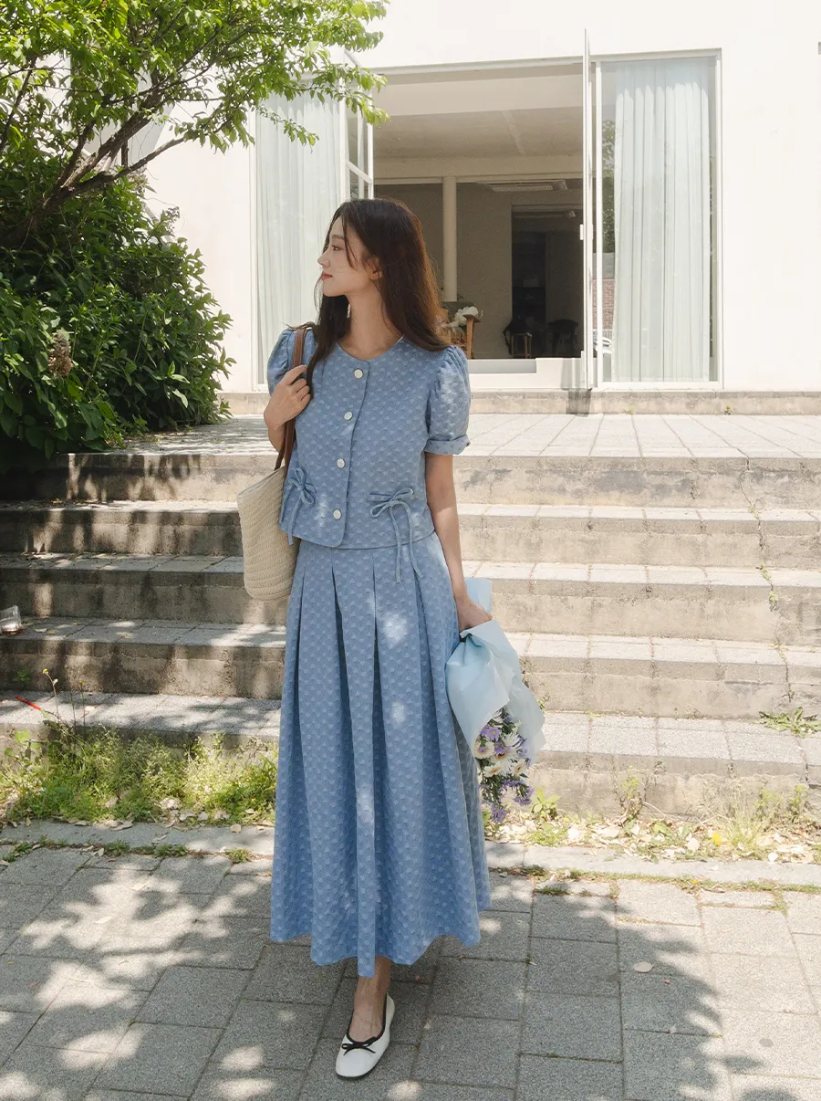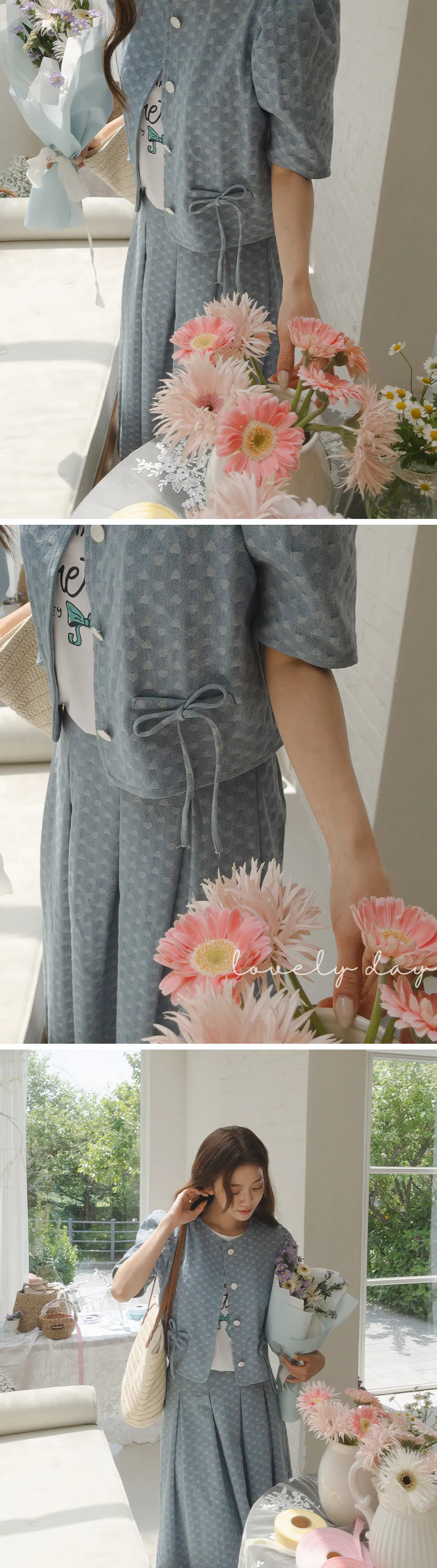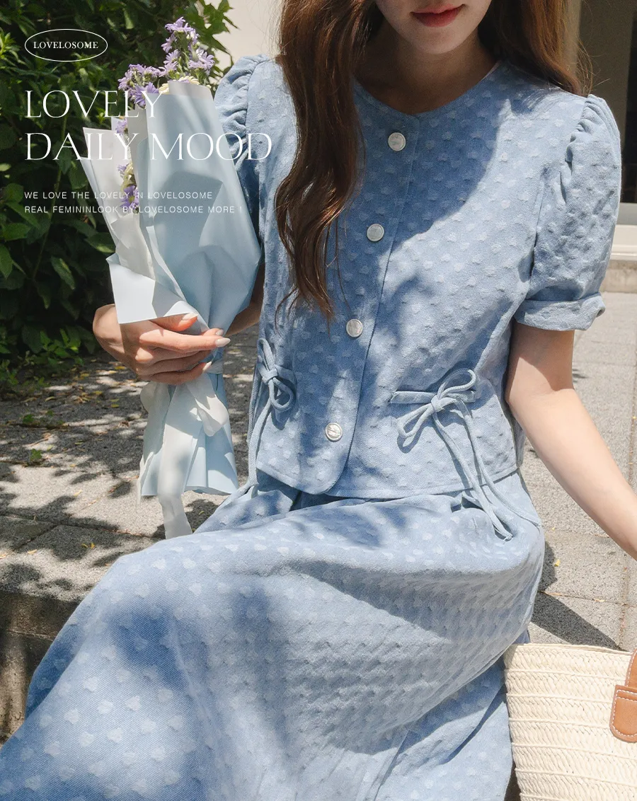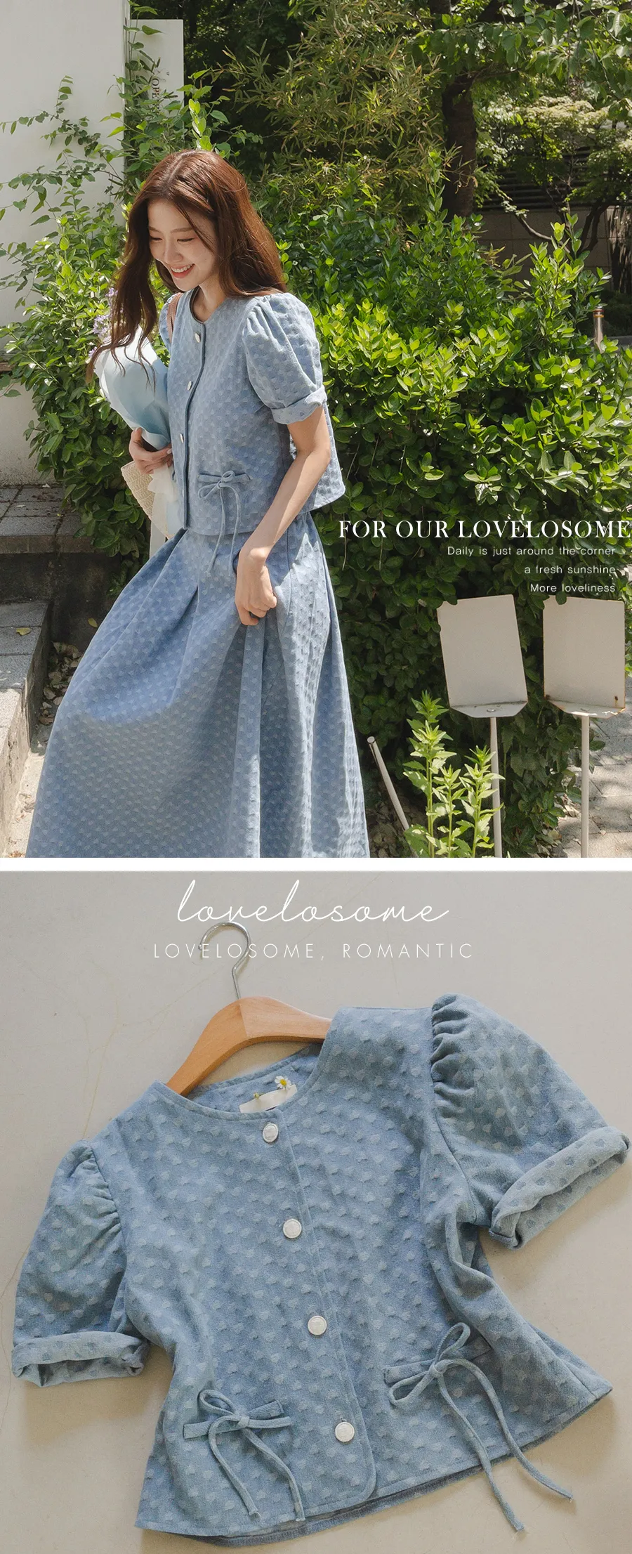 可愛優雅點綴蝴蝶結泡泡袖排扣外套