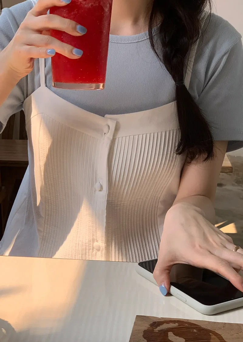 魅力後側鏤空綁帶設計羅紋修身上衣