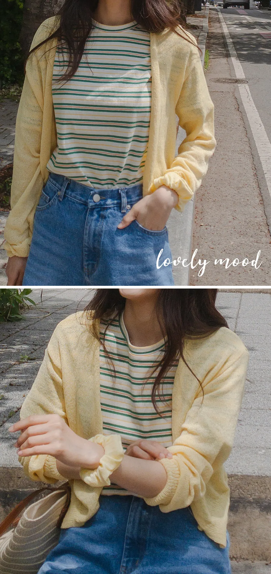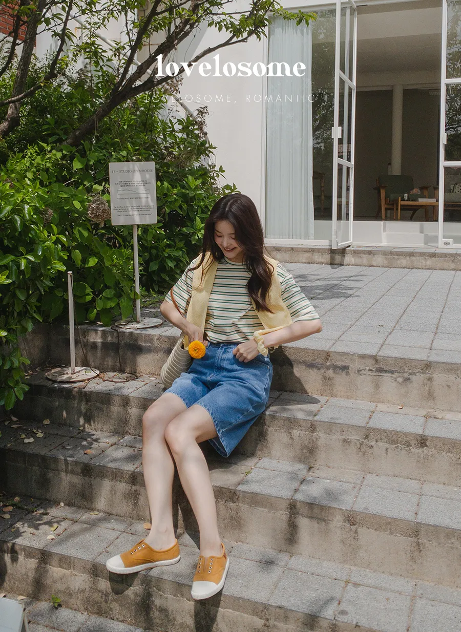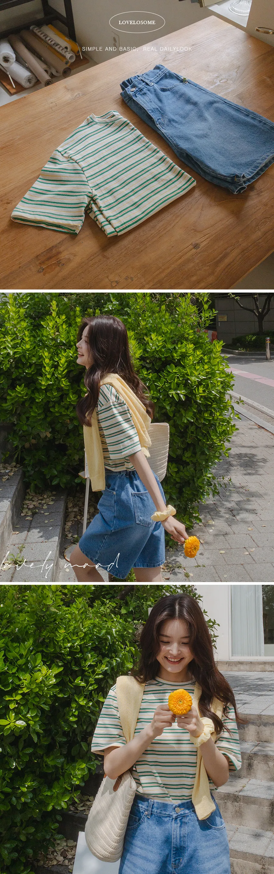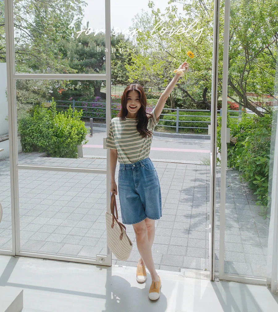 條紋短袖 T 卹 ,可愛活潑感~♡♥♡ 帶有迷人彩色條紋圖案的短袖T卹,這是一款看起來簡單的 T 卹,可為造型增添亮點,其標準輪廓自然流動並遮蓋身體線條,是一件非常適合日常穿著的 T 卹! 它看起來很基本,但當然彩色條紋讓它成為焦點。 穿上這件T卹,就會顯得很可愛