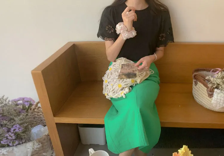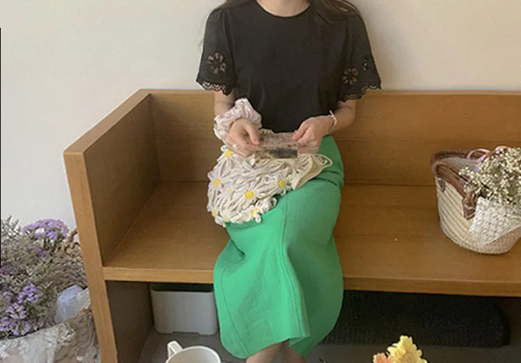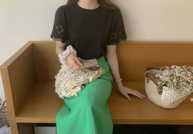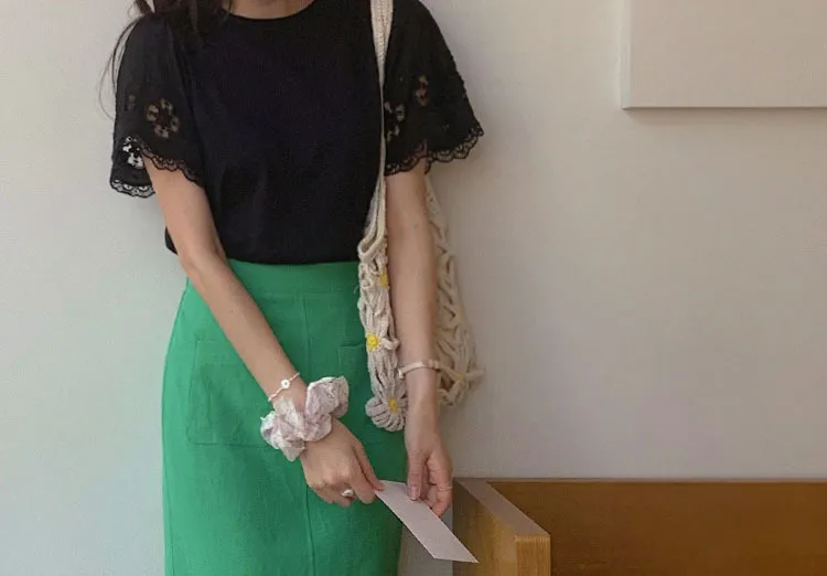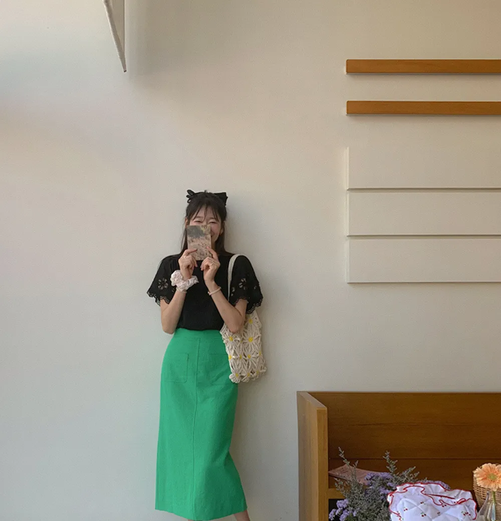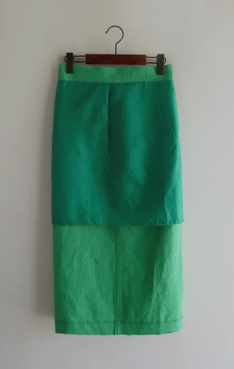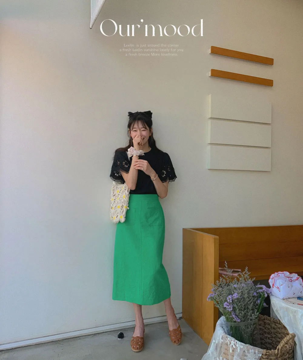 [亞麻裙♡ 完美、緊實、漂亮輪廓] [簡潔的H 型剪裁,修飾腿部線條] [柔軟的聚酯纖維襯裡,穿著舒適,不會感到不適] [前面口袋細節後側開衩設計突出!