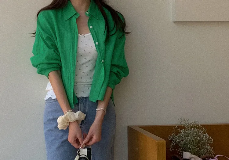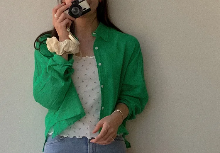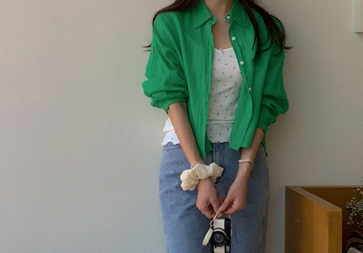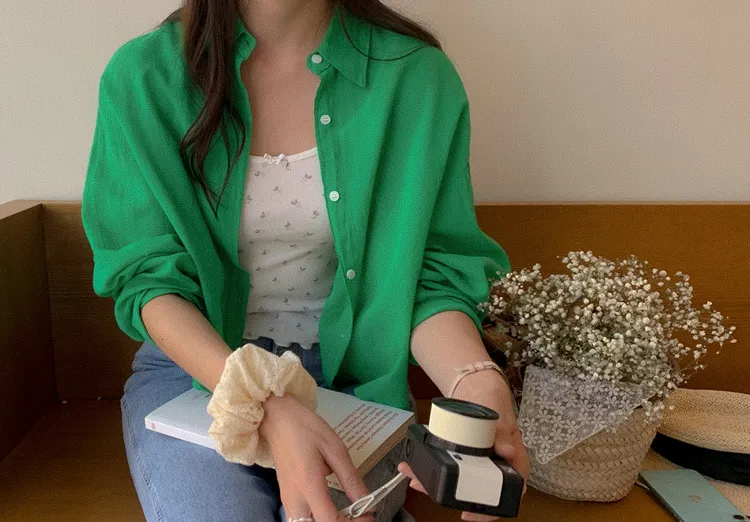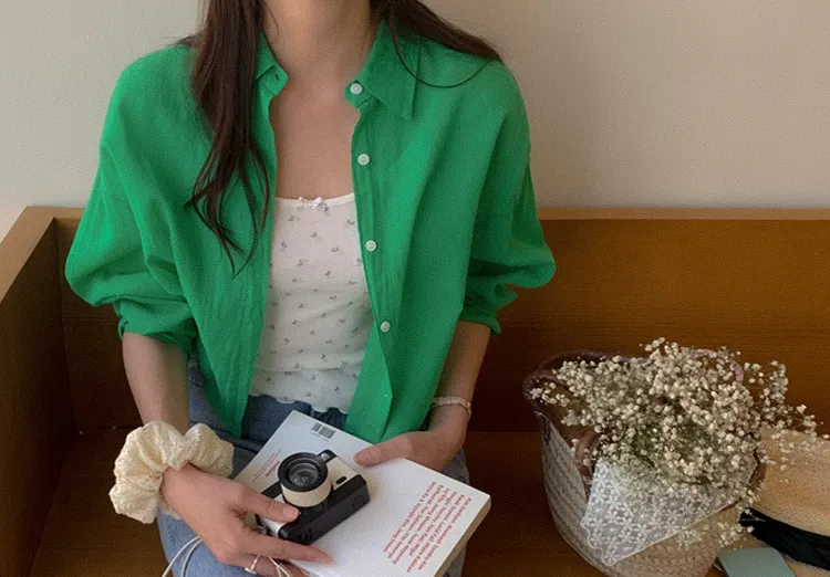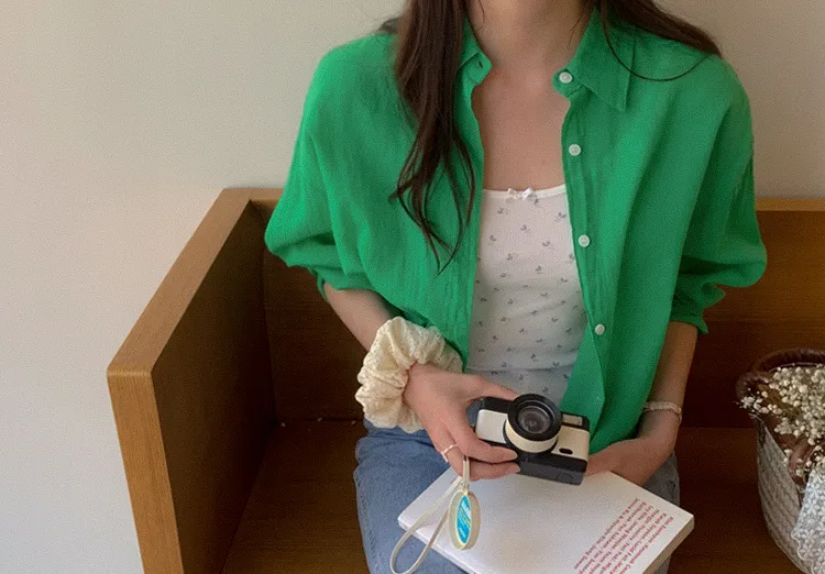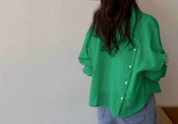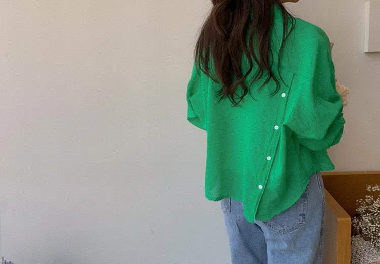 獨特後側對角排扣寬鬆版型輕款襯衫