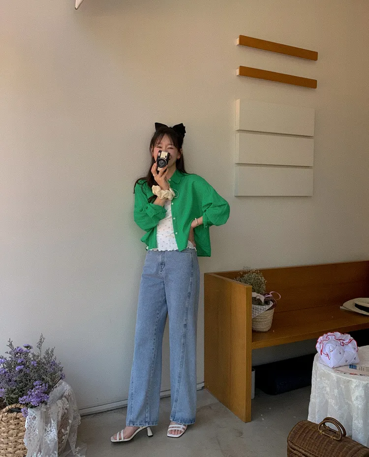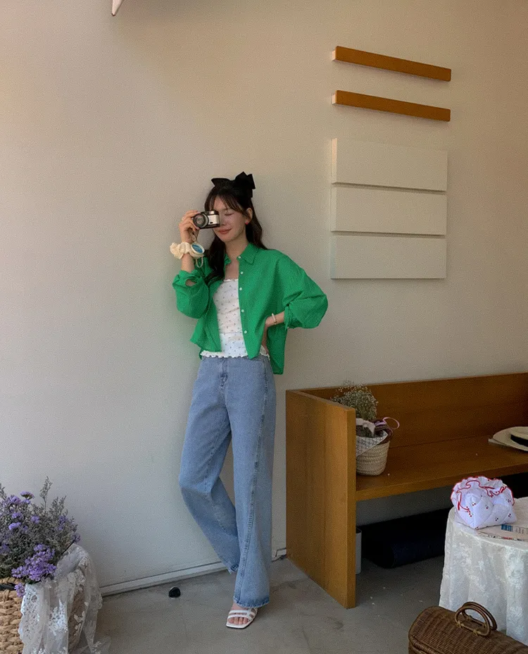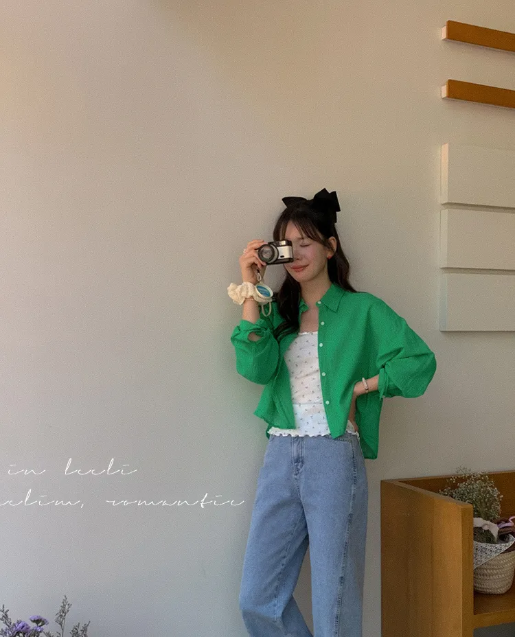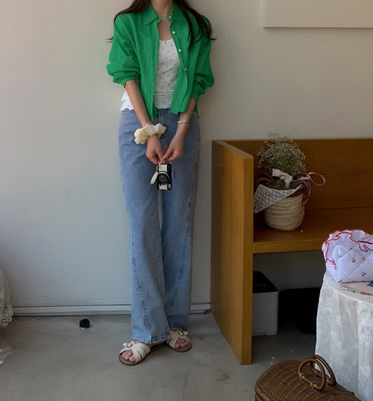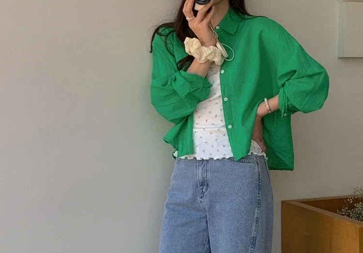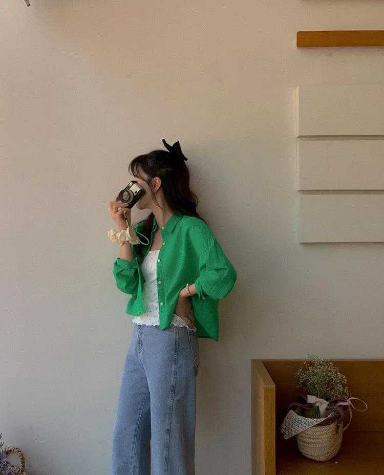 獨特後側對角排扣寬鬆版型輕款襯衫