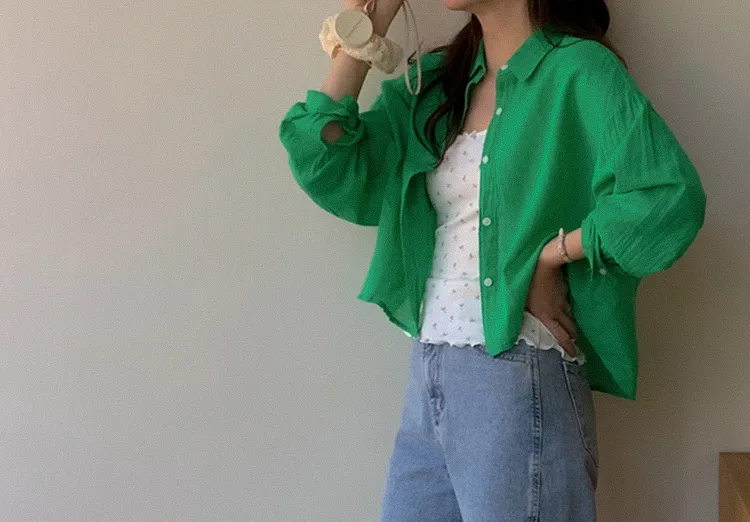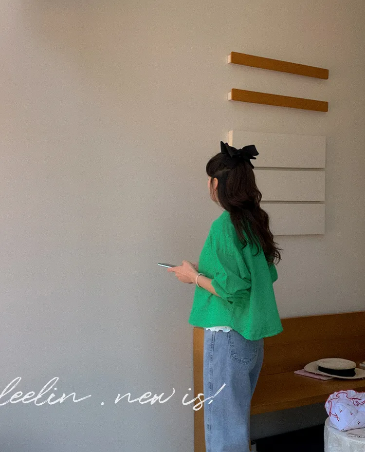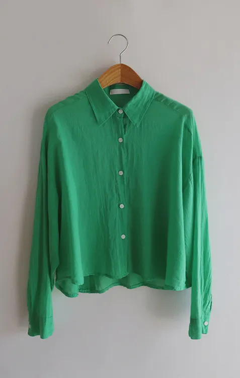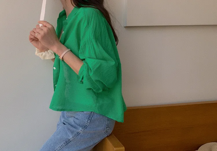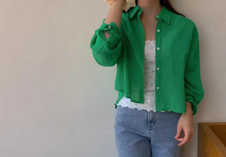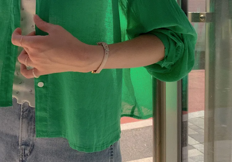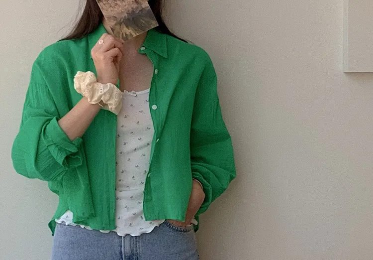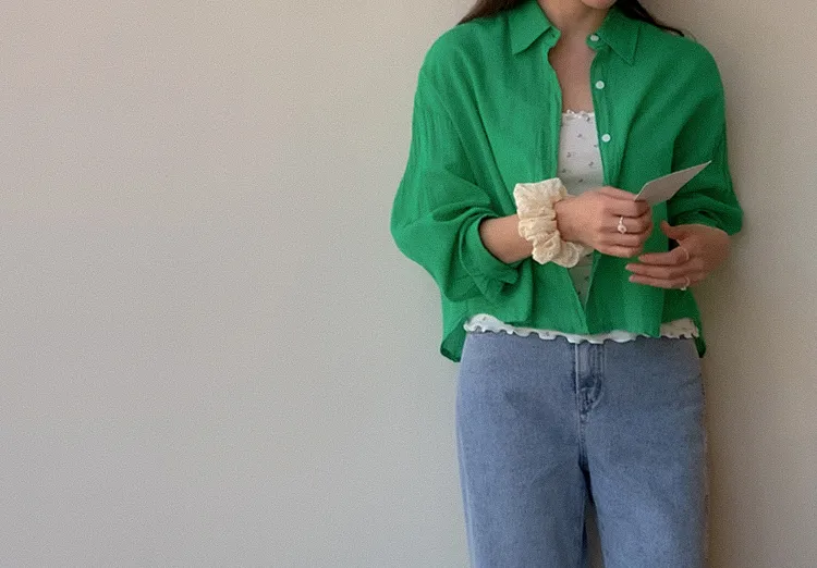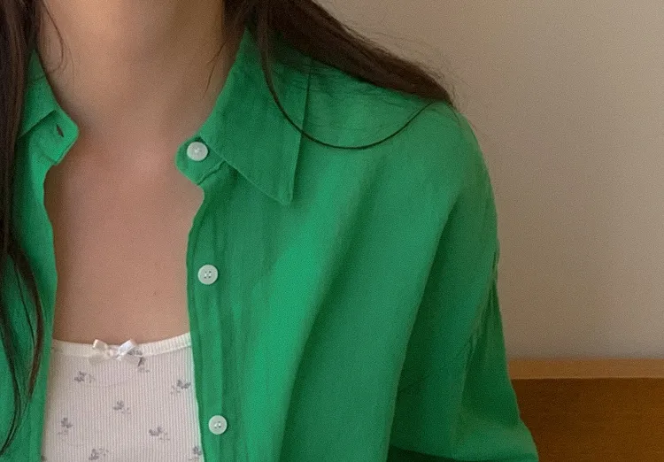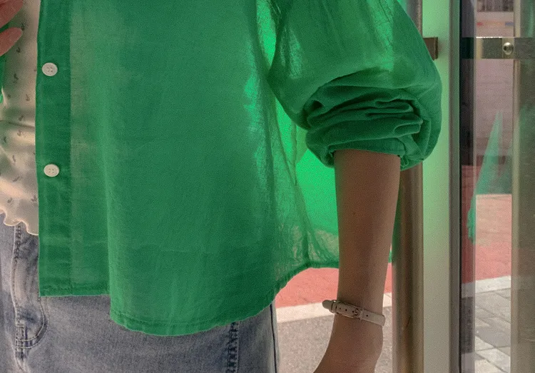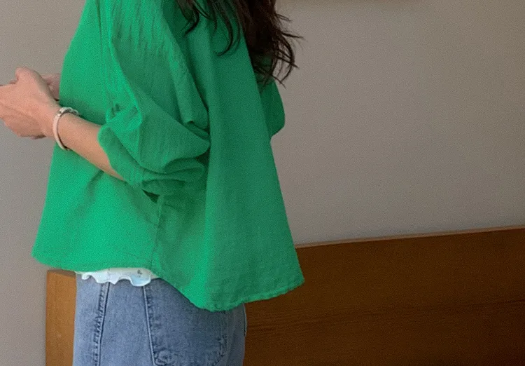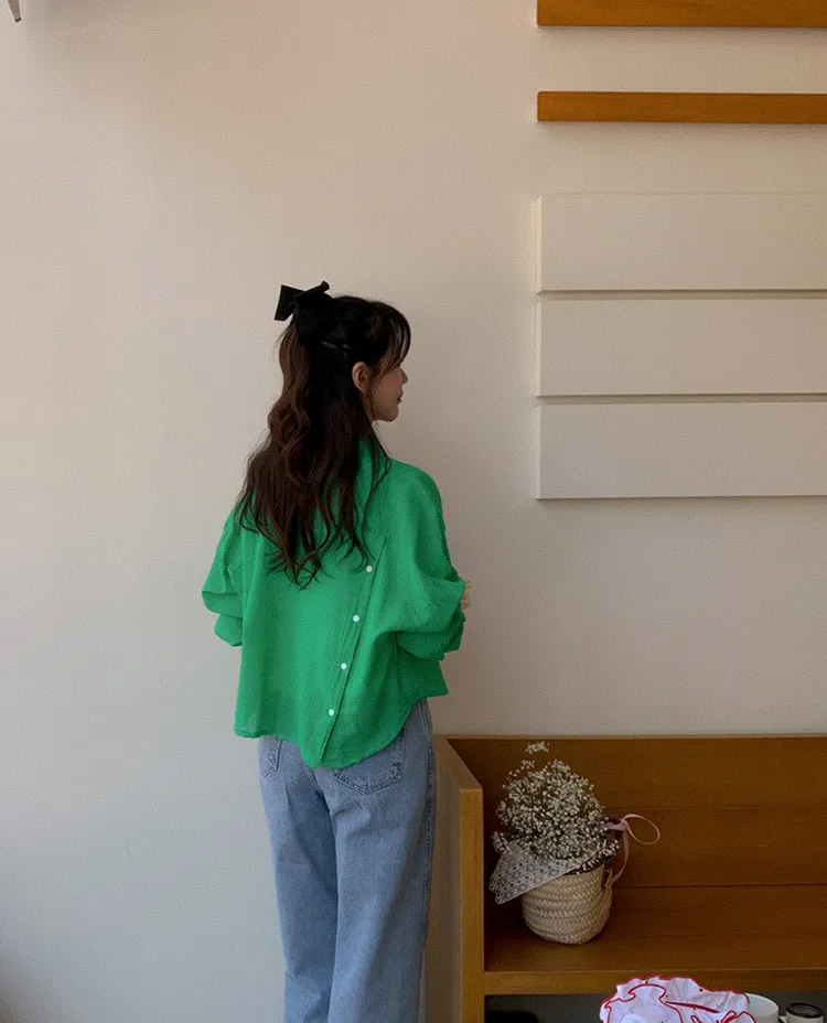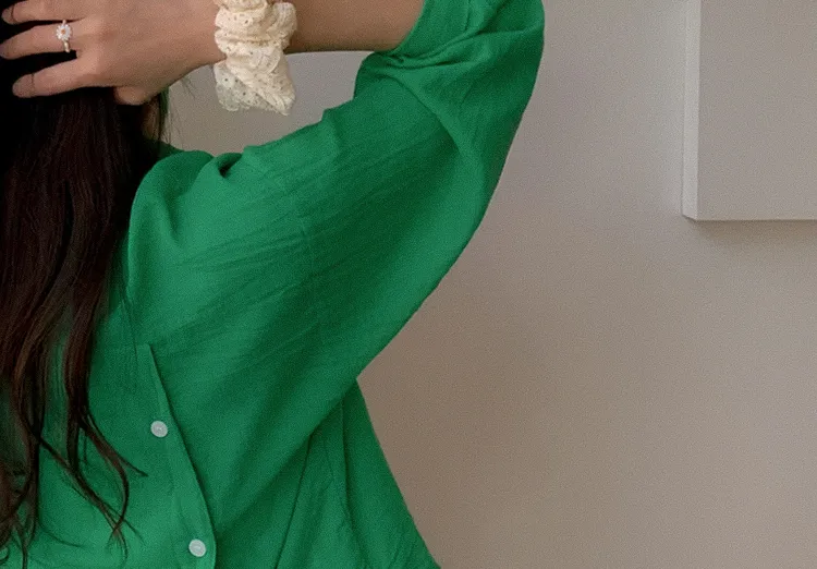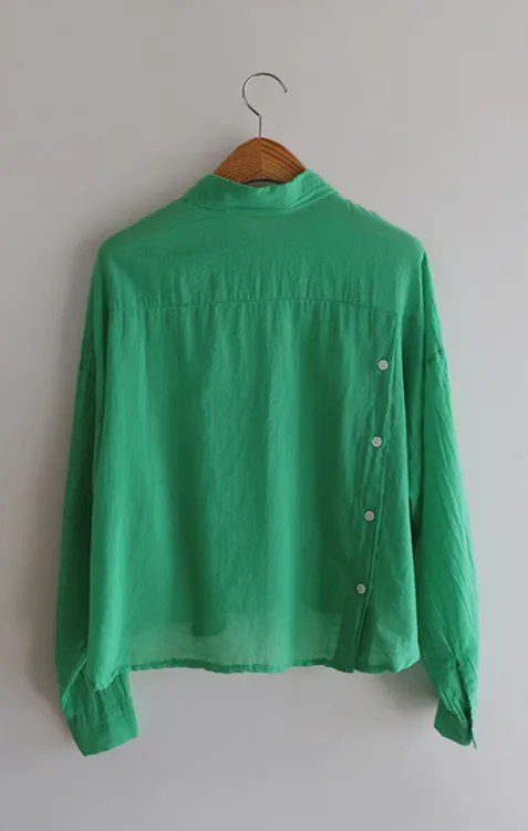 【後側的對角線鈕扣設計!獨特又時尚的襯衫♥]【輕款蓬鬆】【薄而涼爽的紗棉】【實用性很高的商品】