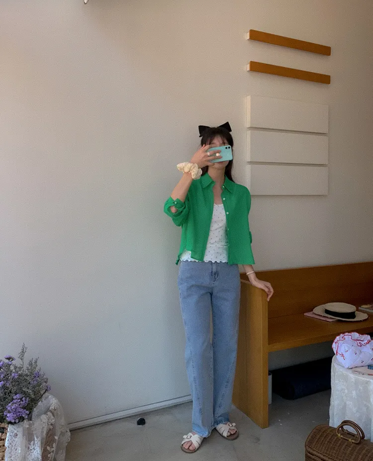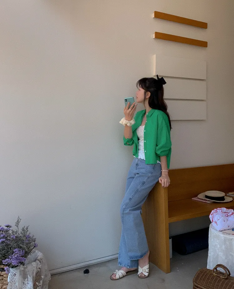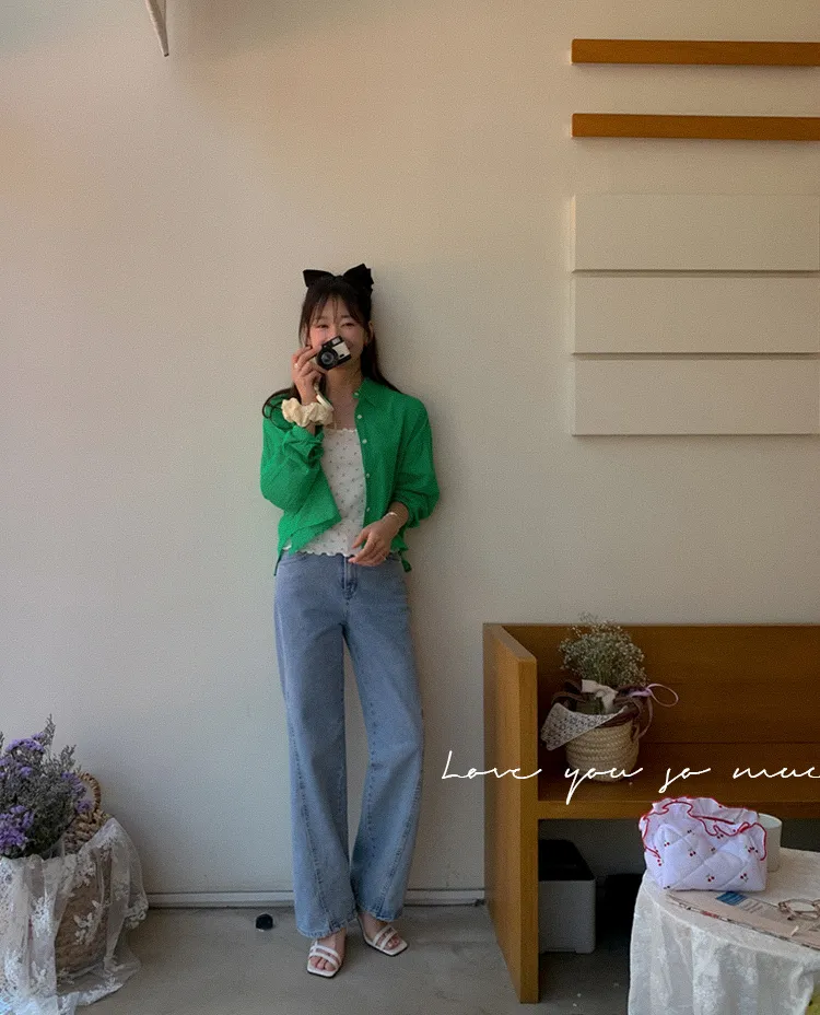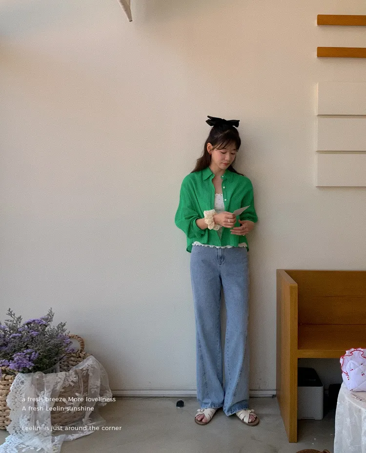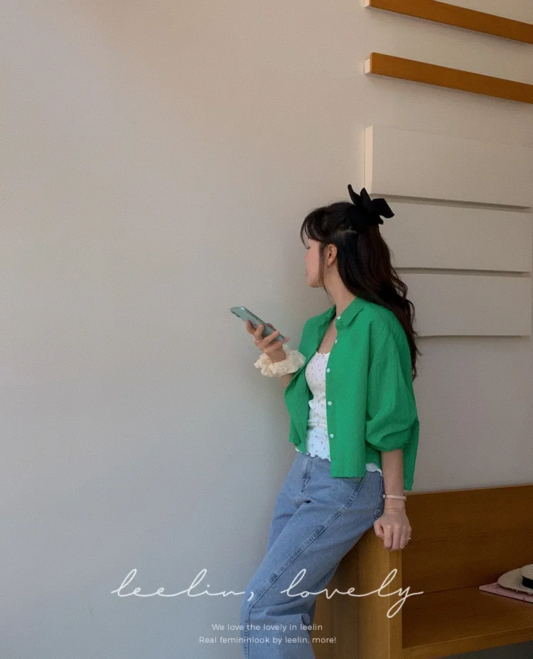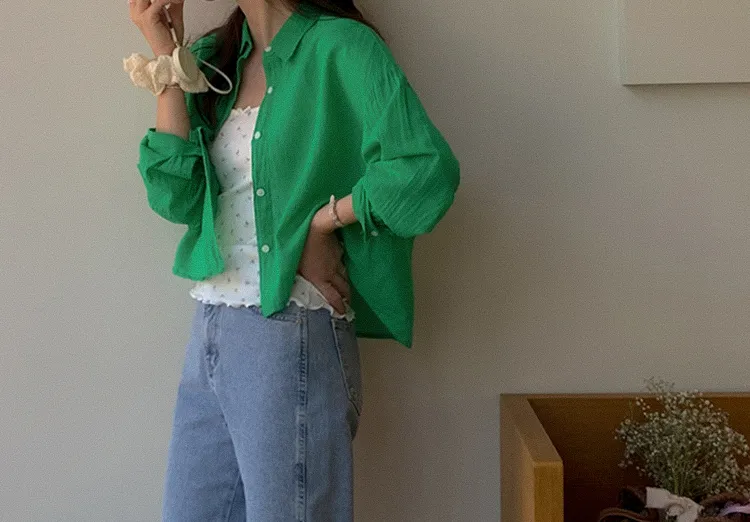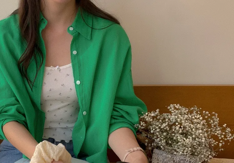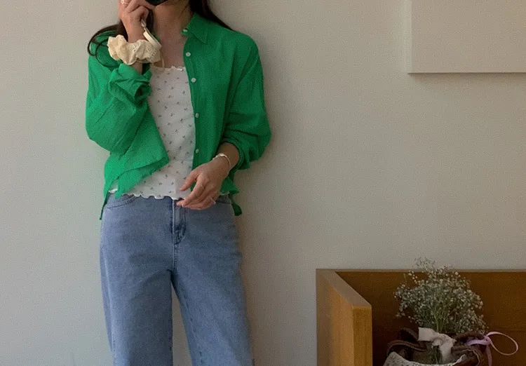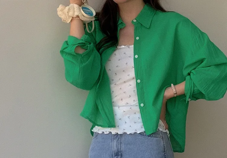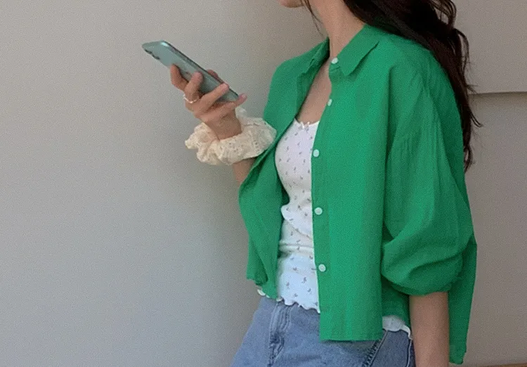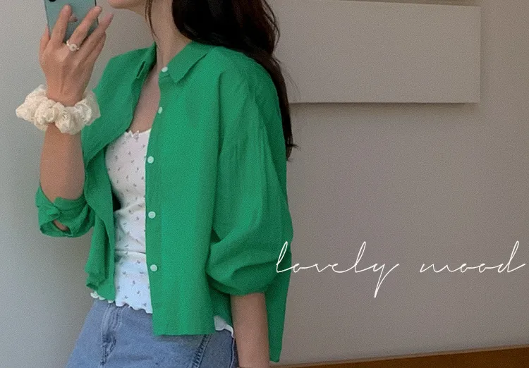 【後側的對角線鈕扣設計!獨特又時尚的襯衫♥]【輕款蓬鬆】【薄而涼爽的紗棉】【實用性很高的商品】