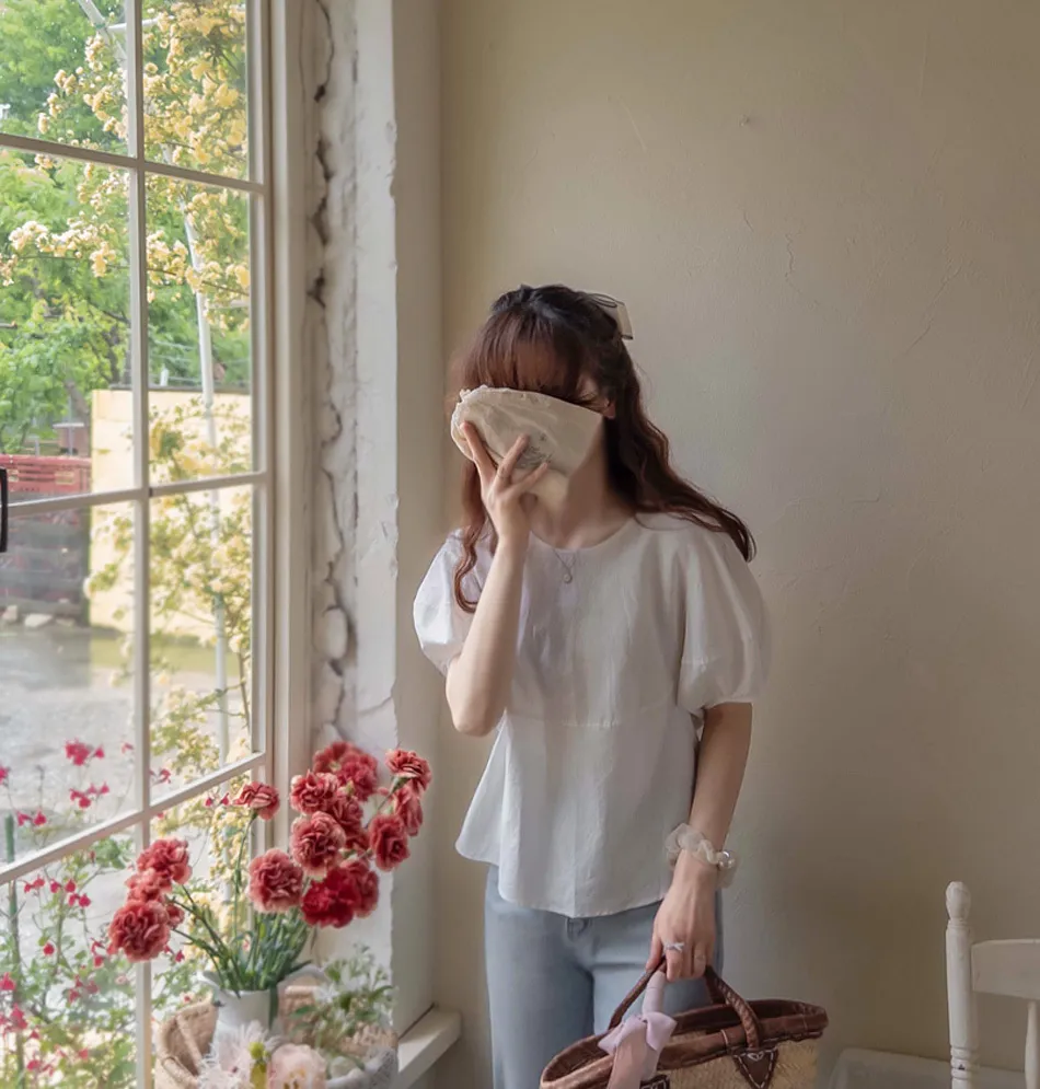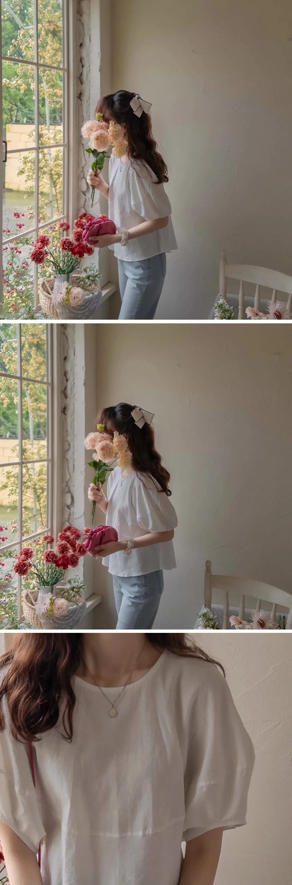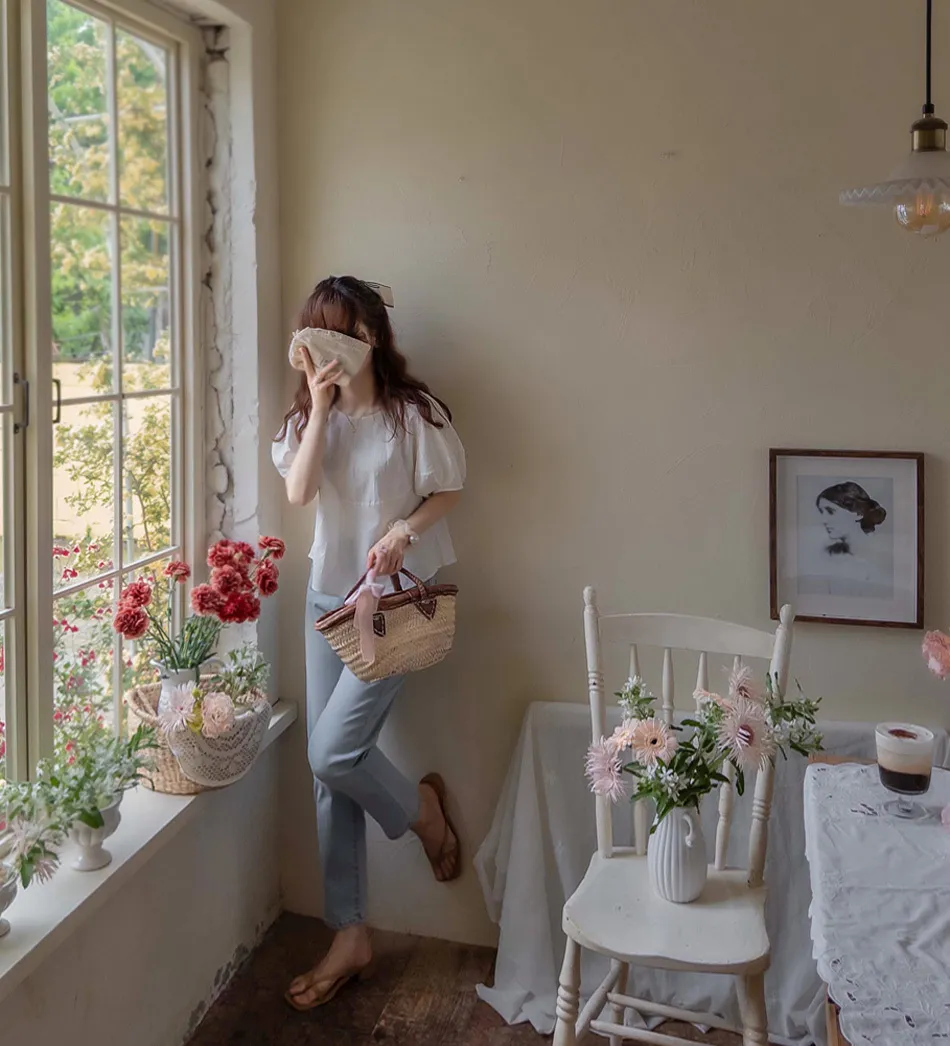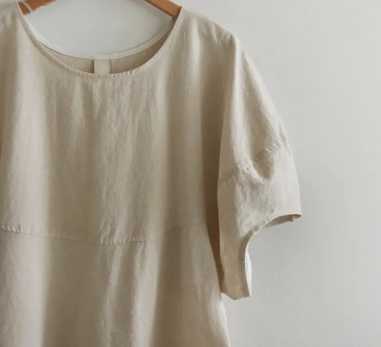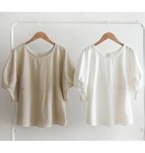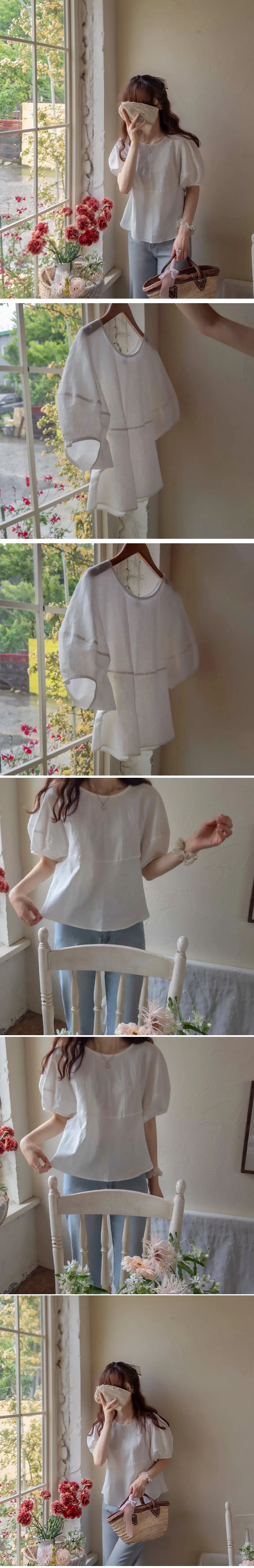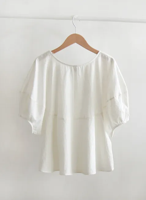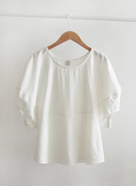 【含50%亞麻的夏季材質】【修飾身形,展現俏皮可愛的修長線條】【優雅魅力的單品】【袖子圓潤豐盈,打造精緻感】【整體可愛修長】 [從現在到夏天都可以]