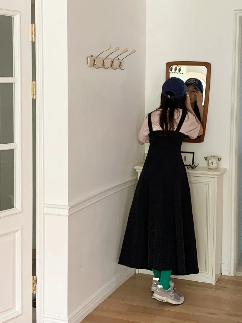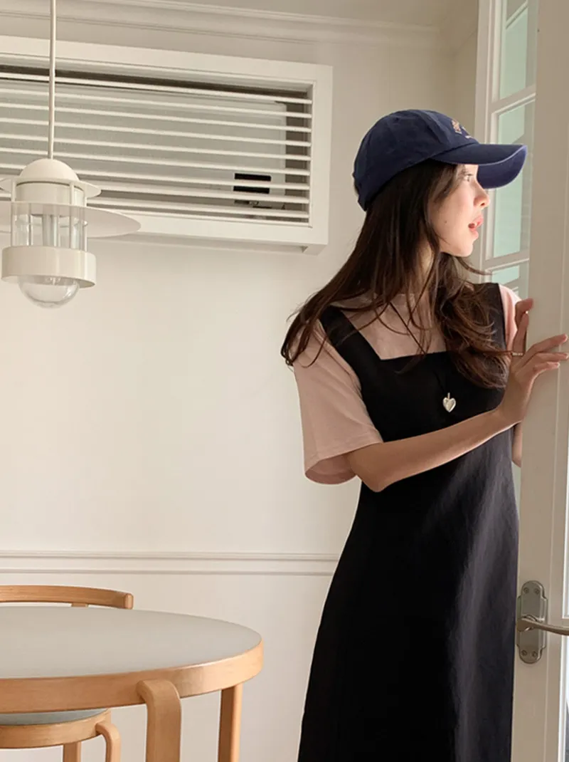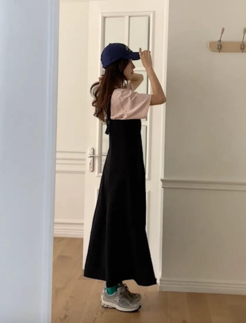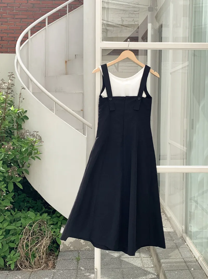復古休閒的連身裙:) 方領和無袖設計營造出修長的輪廓。 可透過後扣輕鬆調整長度。 與各種單品疊戴,也很好看。穿著舒適,夏天可以單獨搭配,打造清涼日常的造型。 寬鬆的傘擺形設計營造出女性化的輪廓。
