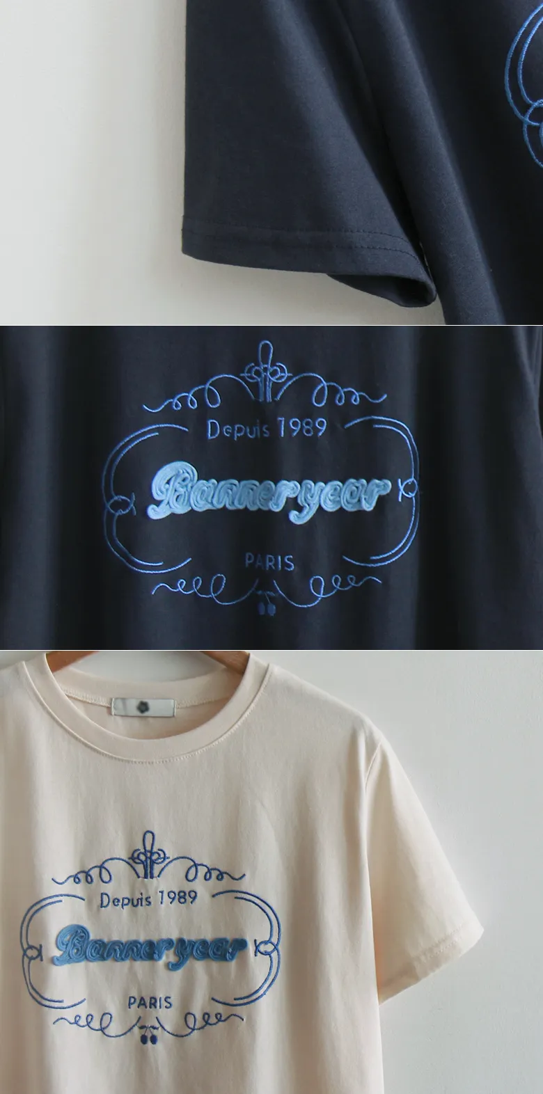 [適合夏季的棉質材質T卹][穿著舒適][刻字立體刺繡凸出][易於搭配的T卹,可以穿起來有品位又不累贅]【推薦日常造型】