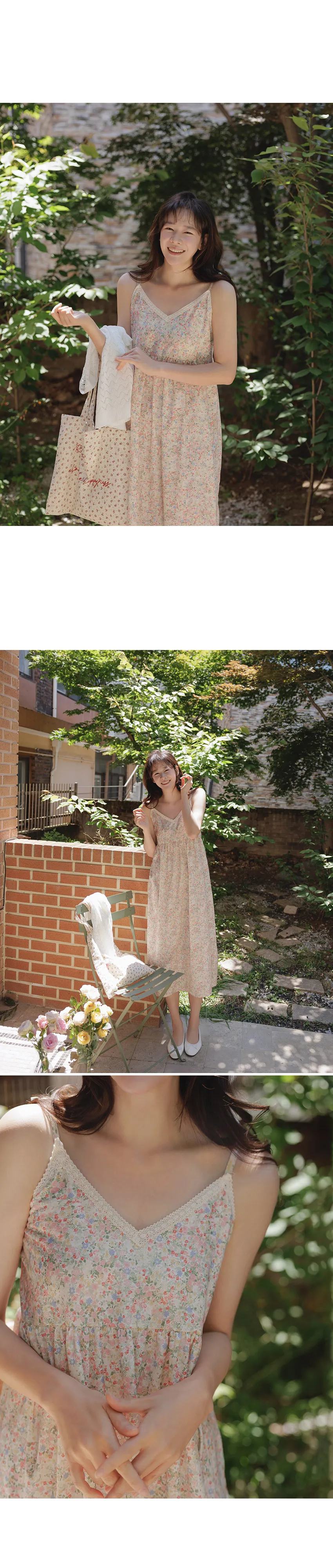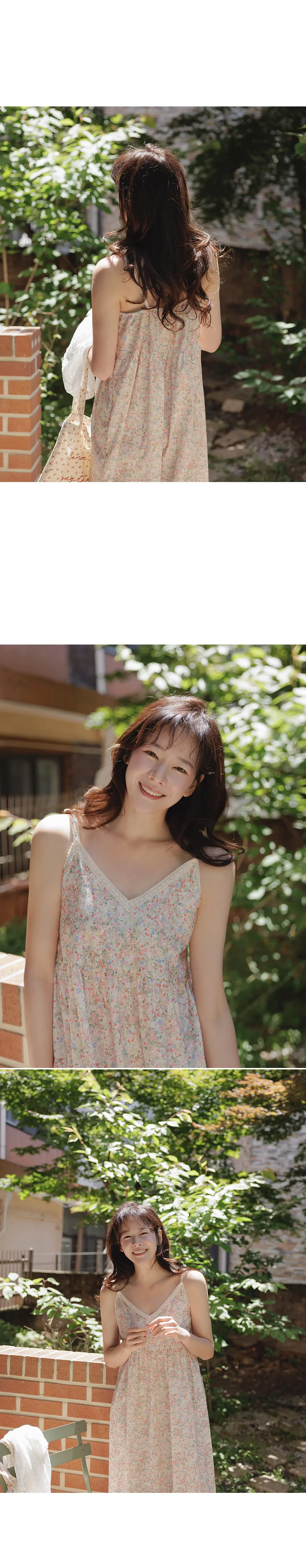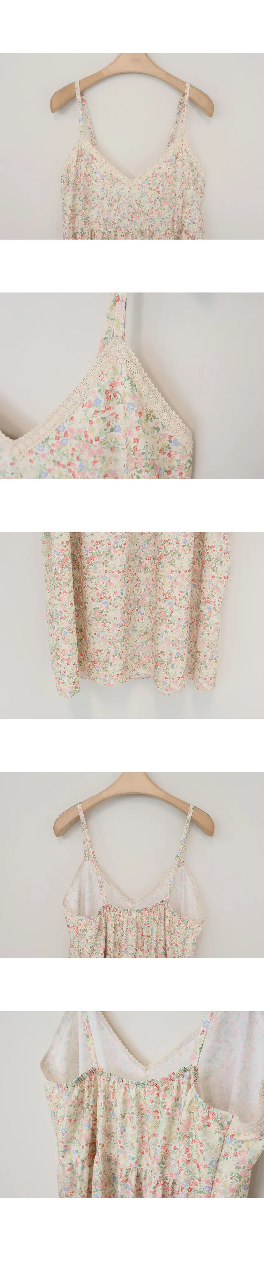 柔美小碎花點綴V領蕾絲細肩連身裙