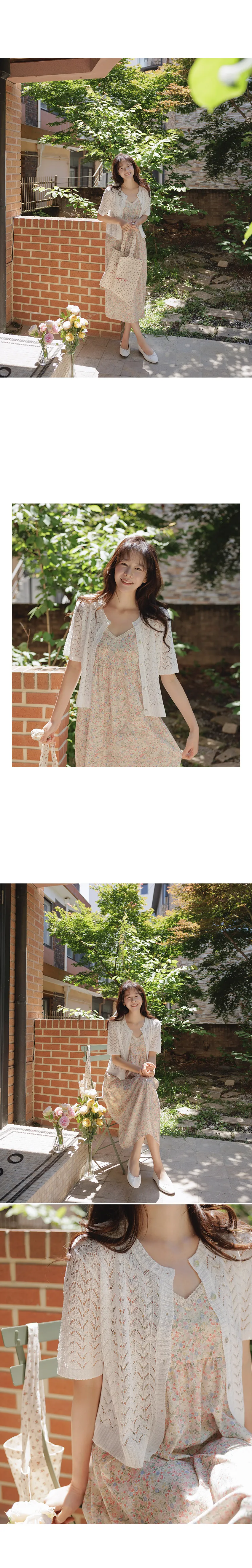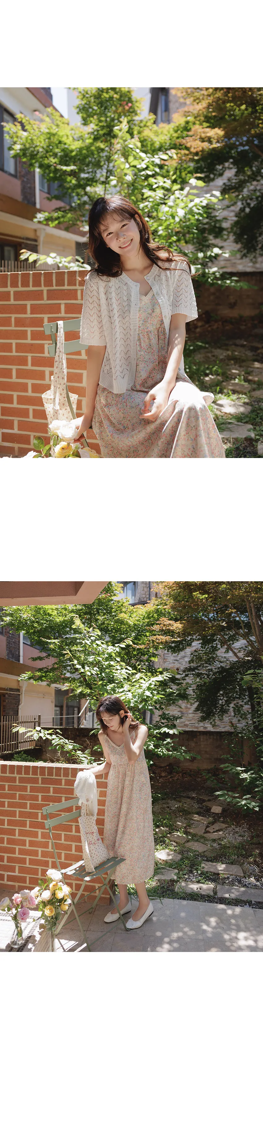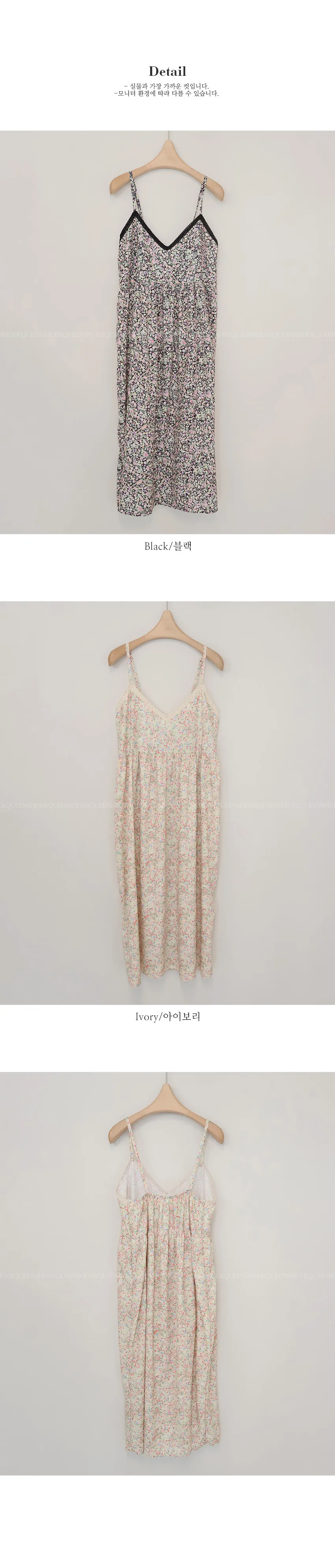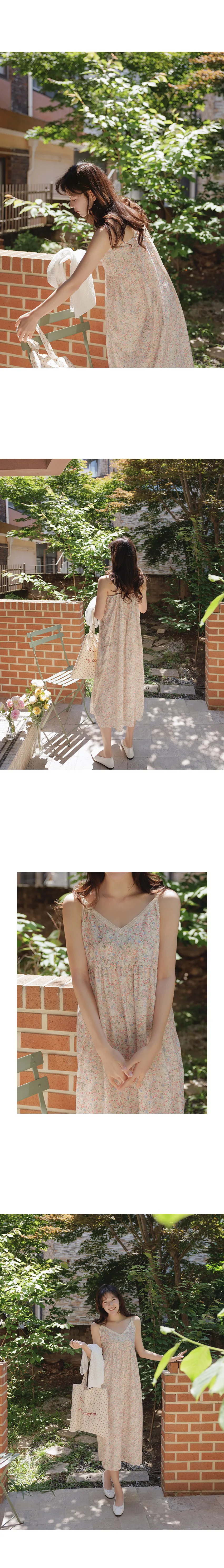 柔美小碎花點綴V領蕾絲細肩連身裙