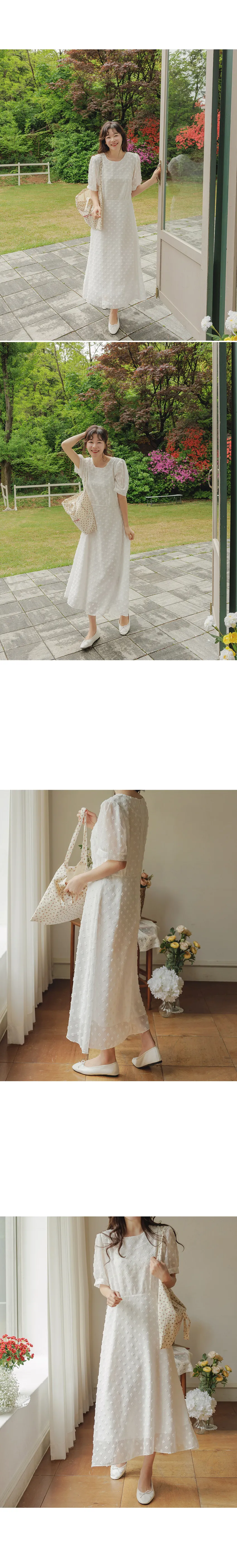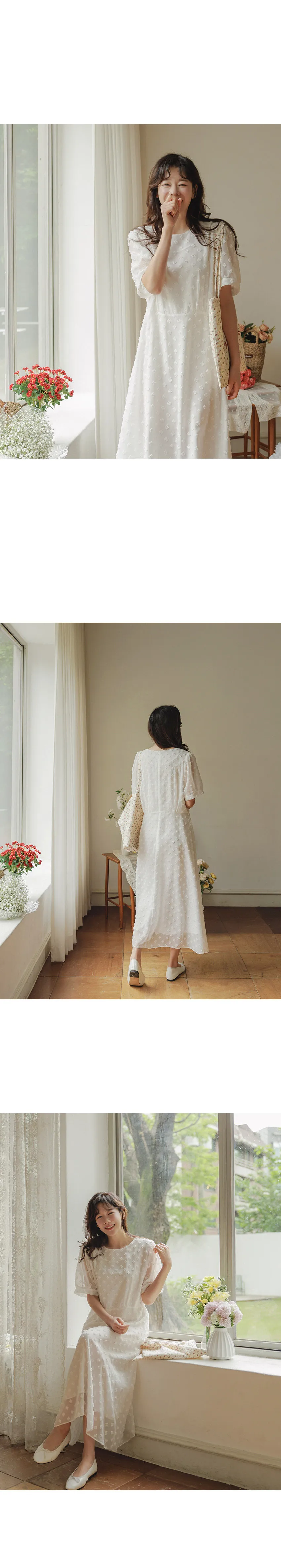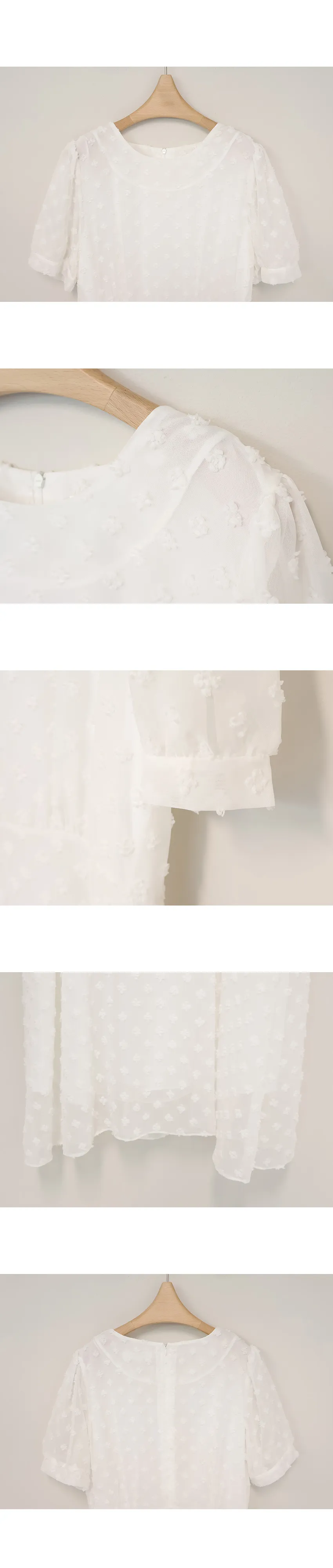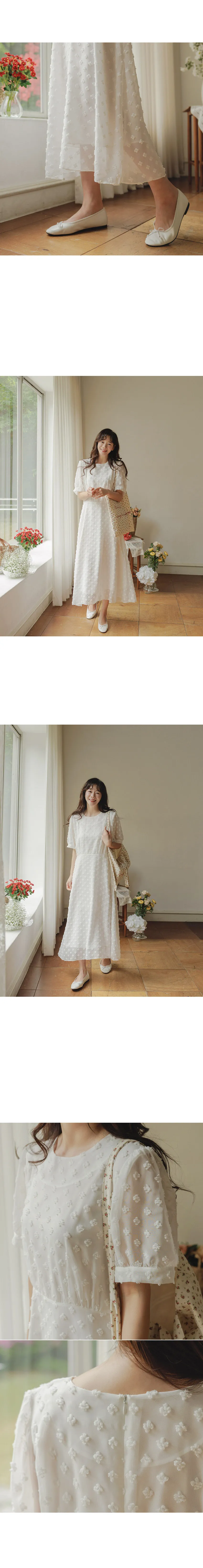立體花朵圖案設計,可愛又充滿魅力,舒適的寬圓領和抽褶的肩點更增添了女人味。 上下腰線有柔和褶皺,營造出立體感的效果,每次移動時都會飄逸的裙擺,勾勒出俏麗的輪廓。充滿浪漫情調的連身裙!