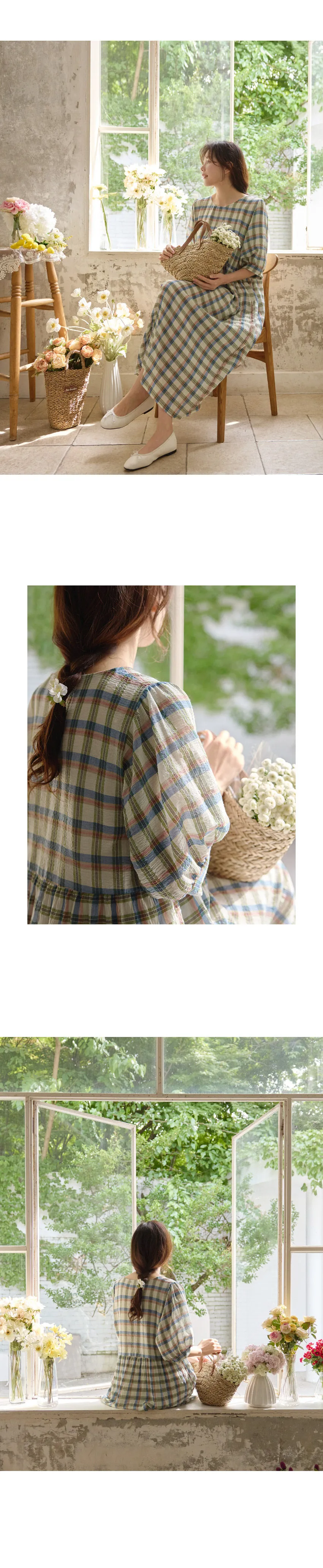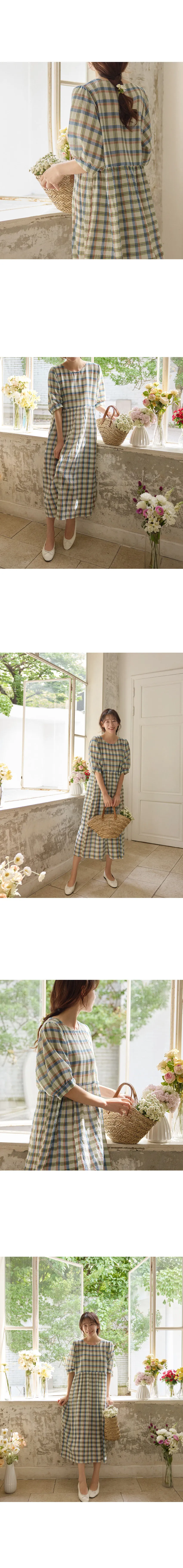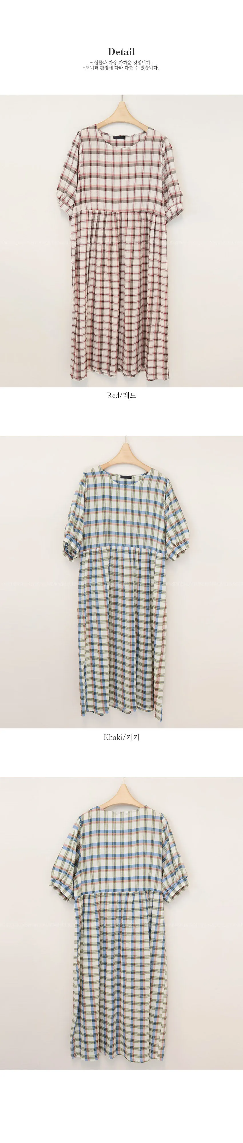一款可以穿出溫柔又可愛的格紋連身裙。 整體寬鬆、可以舒適穿著的設計。 泡泡袖線條充滿女人味。 採用輕款涼爽的布料製成, 在盛夏也能讓你保持涼爽。
