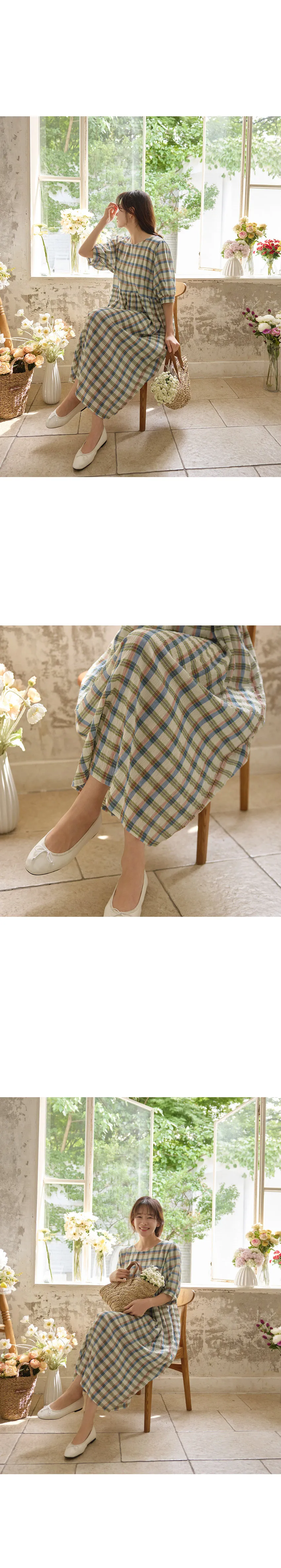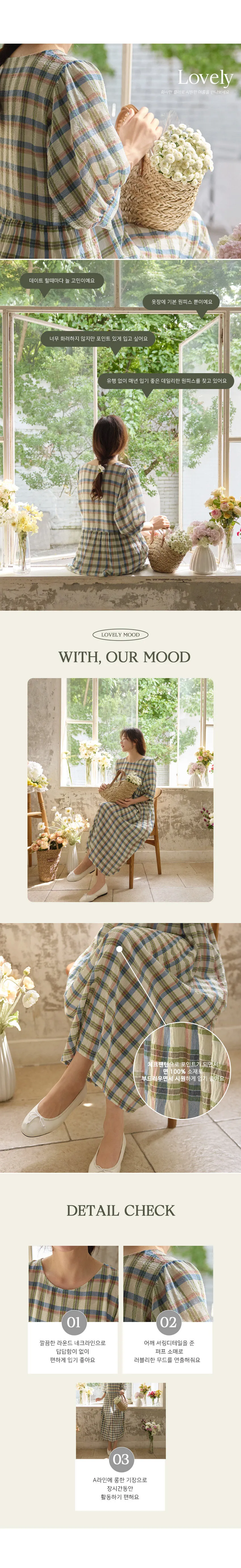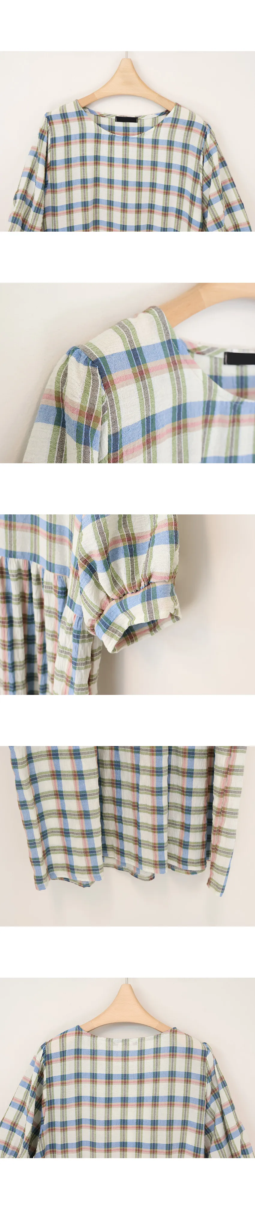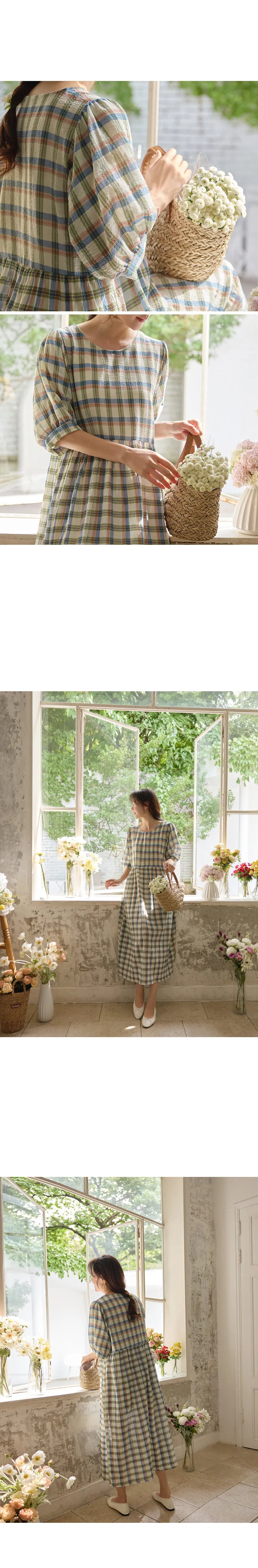 一款可以穿出溫柔又可愛的格紋連身裙。 整體寬鬆、可以舒適穿著的設計。 泡泡袖線條充滿女人味。 採用輕款涼爽的布料製成, 在盛夏也能讓你保持涼爽。