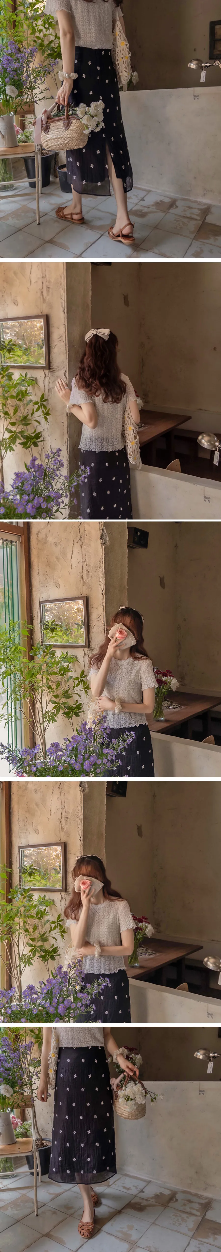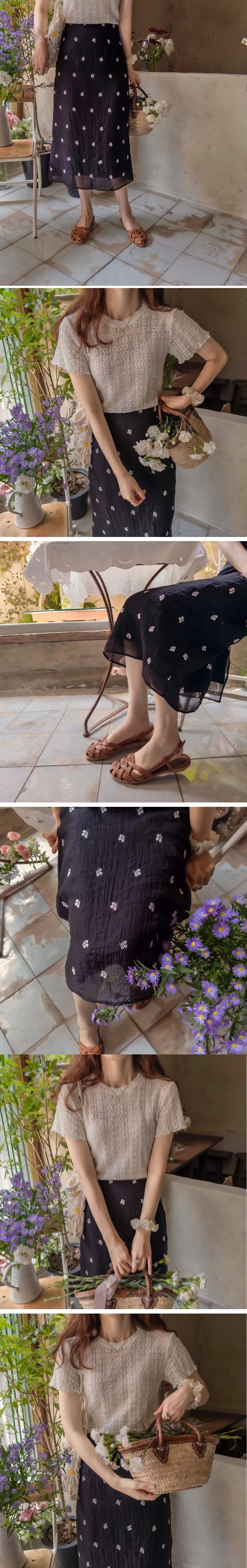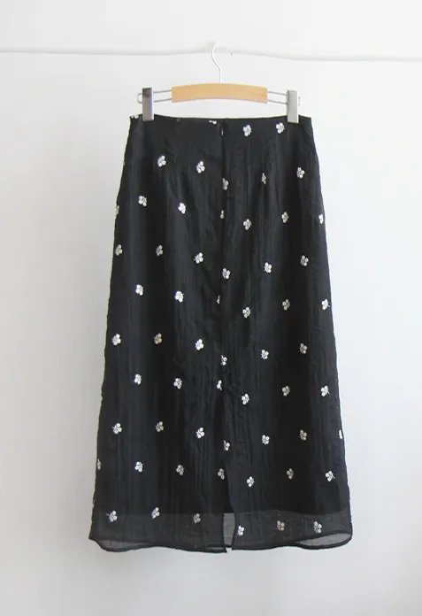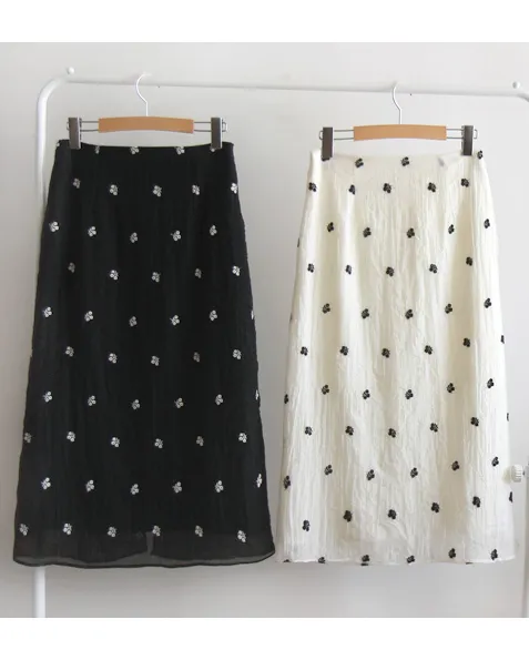 優雅線條花朵刺繡中長裙