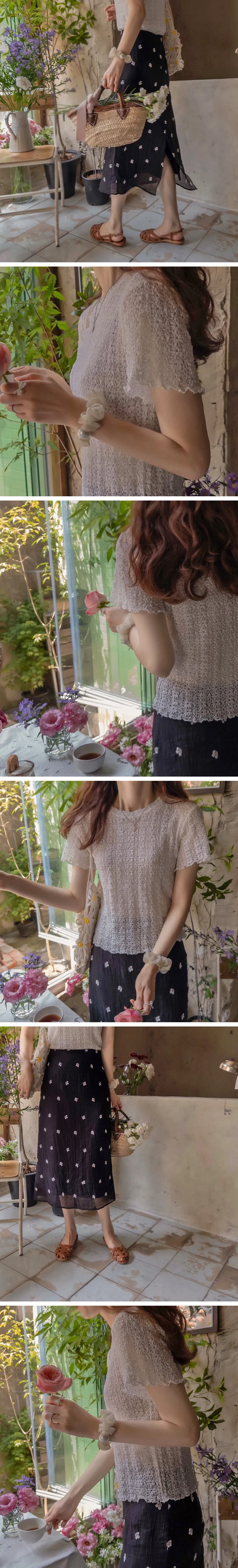 [襯裡:聚酯纖維][品牌品質][後拉鍊結構][非常可愛的設計,帶有微妙花朵刺繡][由微妙鏈接組成的夏季裙子][邊緣貼合,非常適合精緻的穿著][協調,時尚合身