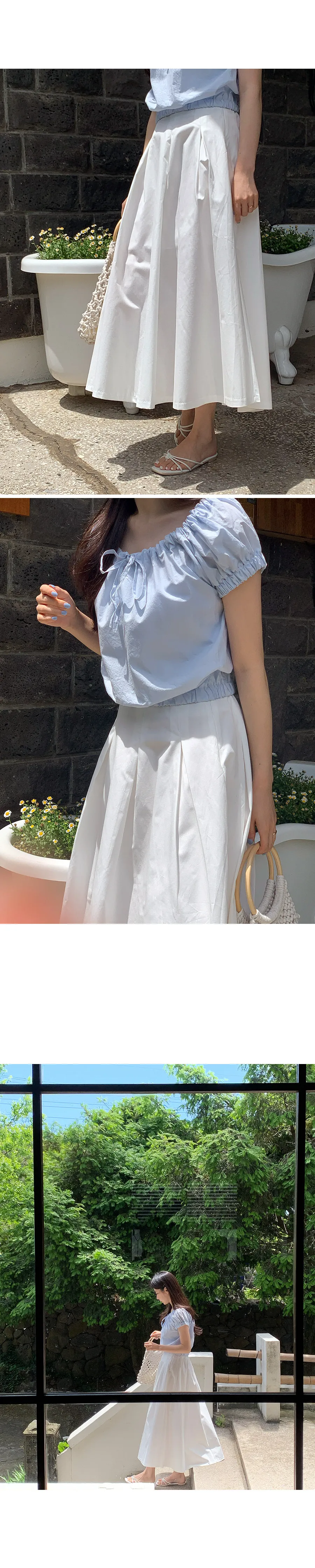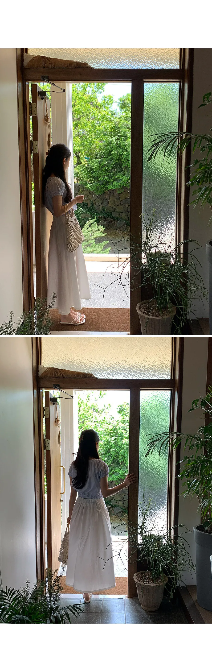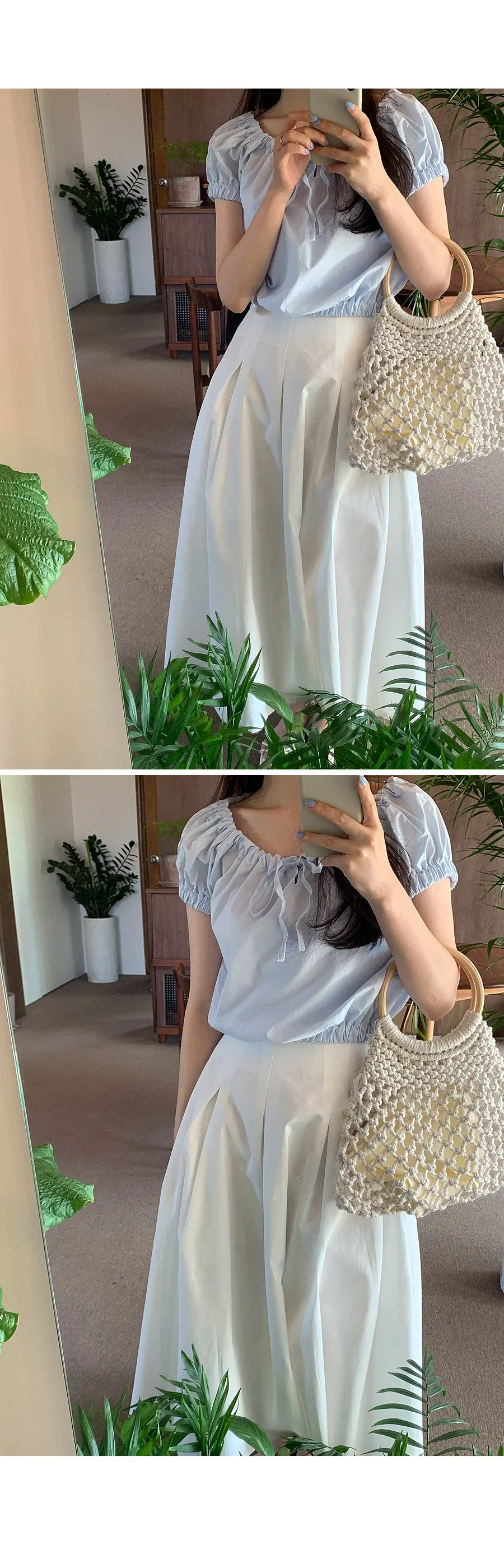 一款剪裁豐富的長裙-寬間距的針褶剪裁細節增強了版型的體積感,腰後的飾帶凸顯了舒適、修身、緊實的腰部貼合:)