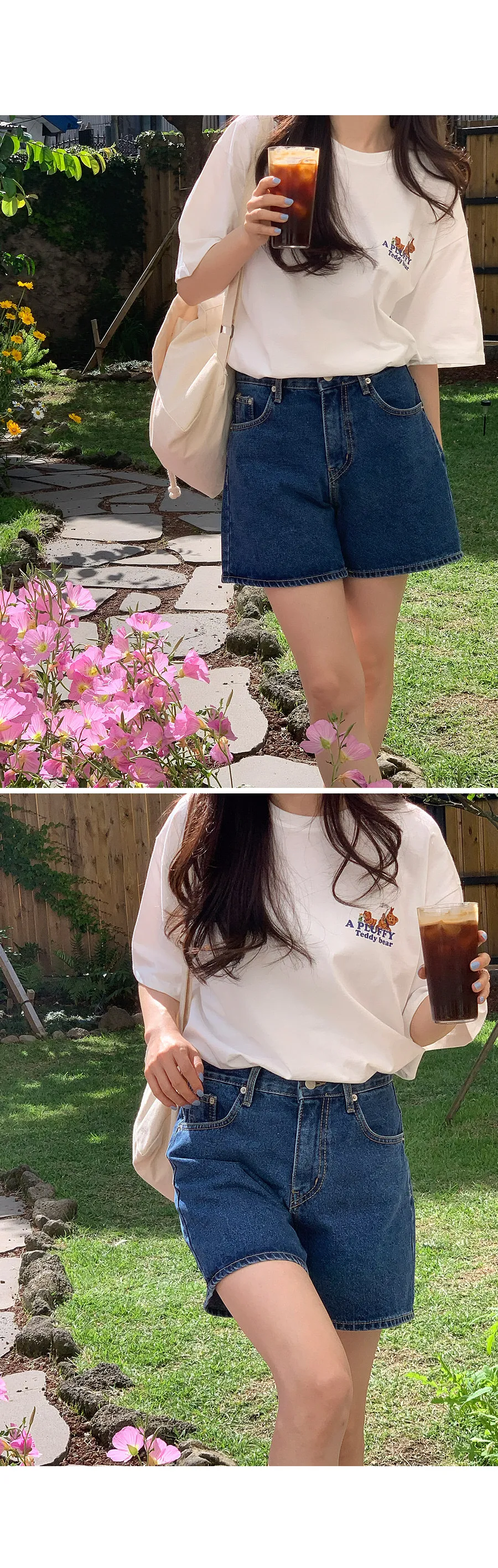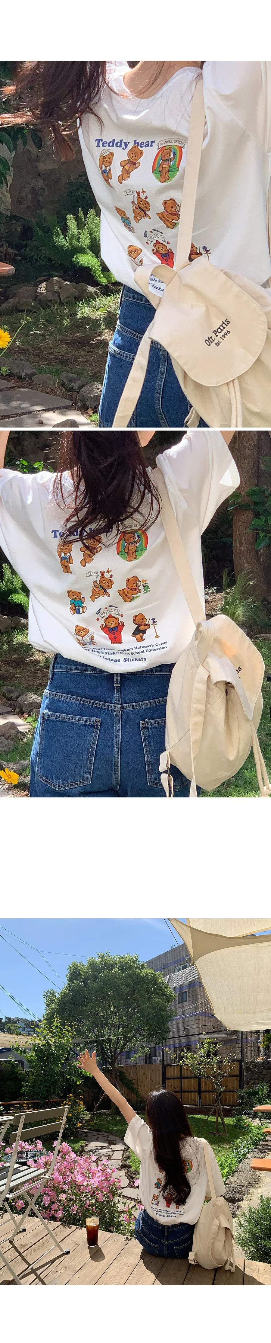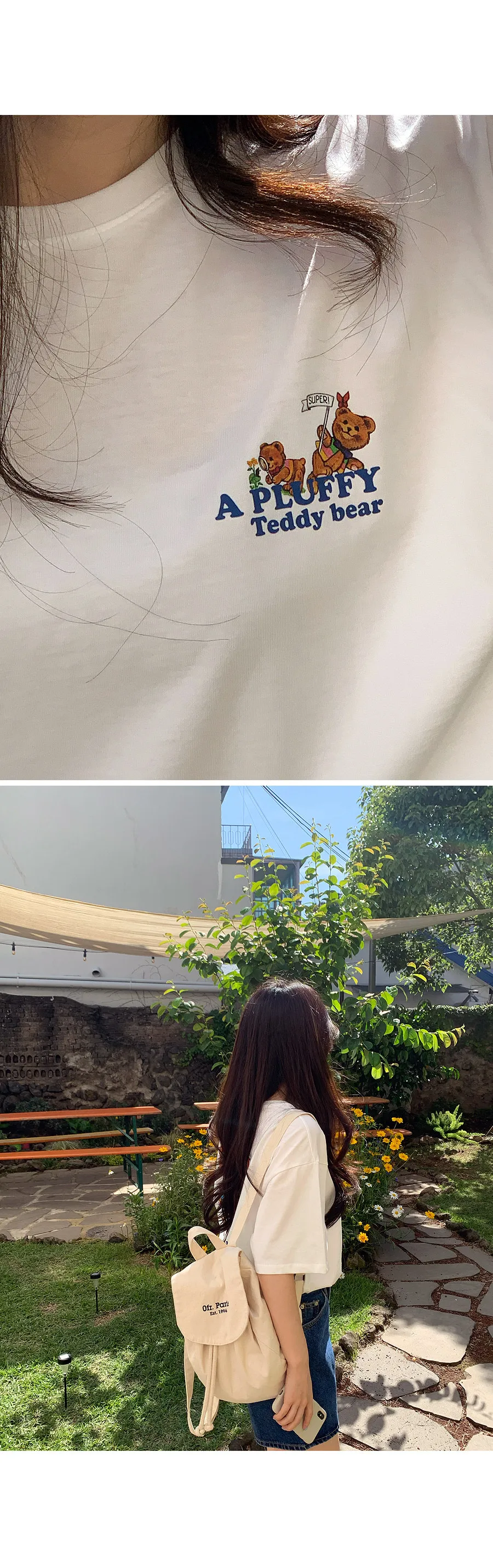 採用純棉材質,品質優良,後背可愛泰迪熊印花凸顯存在感,是很容易與短褲搭配的日常單品:)
