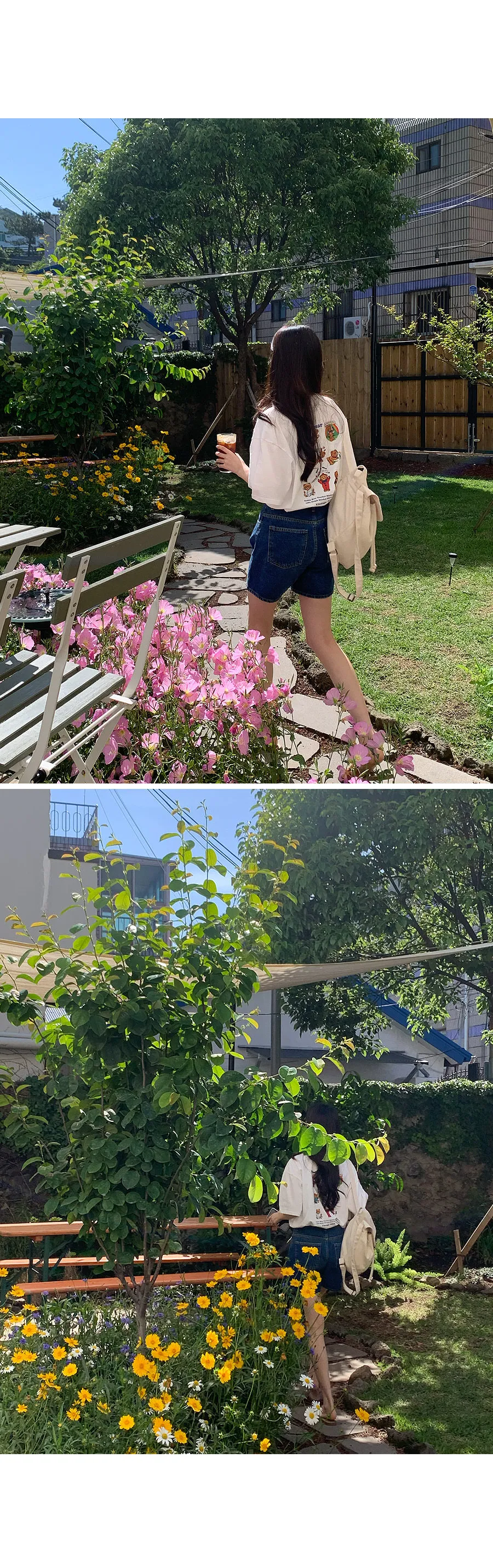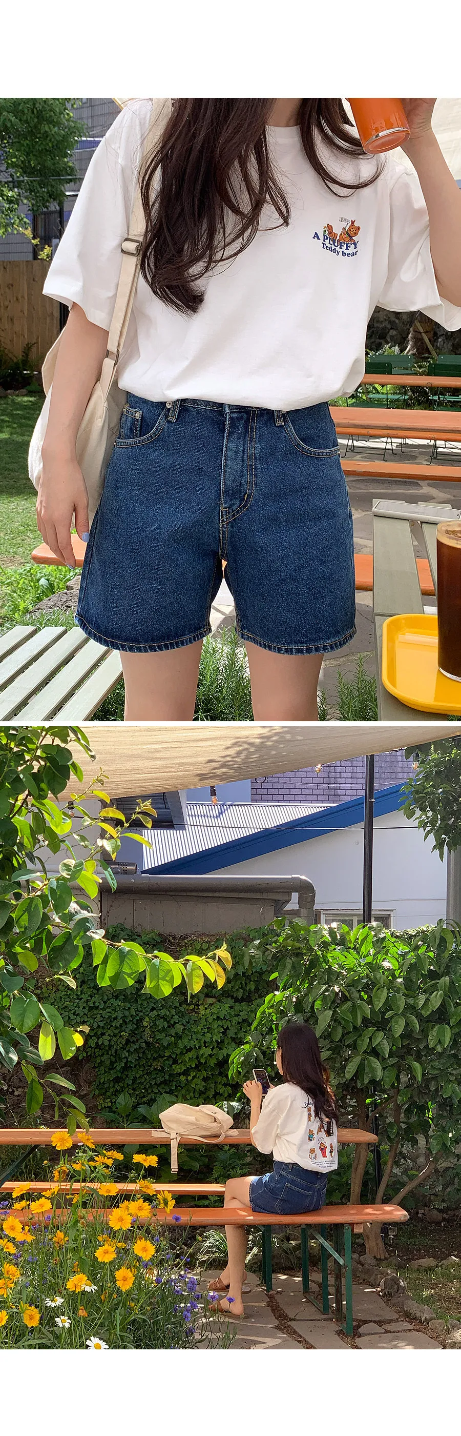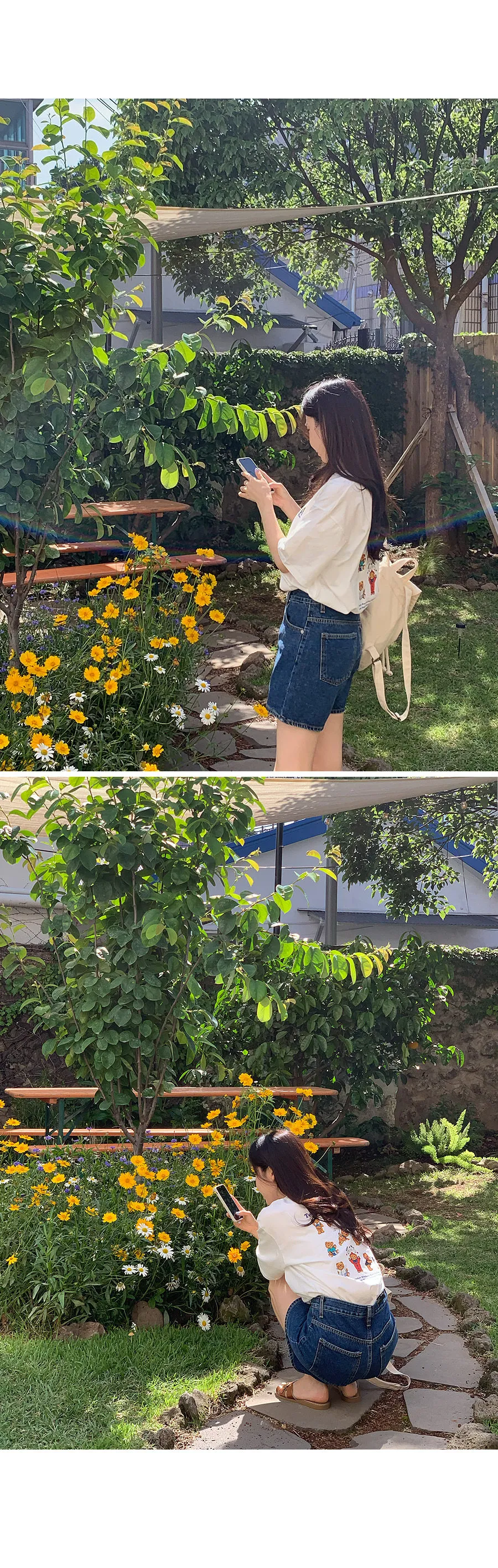 採用純棉材質,品質優良,後背可愛泰迪熊印花凸顯存在感,是很容易與短褲搭配的日常單品:)