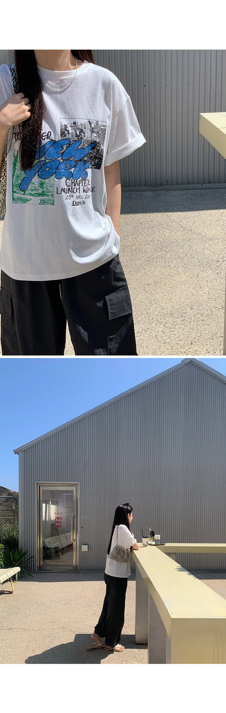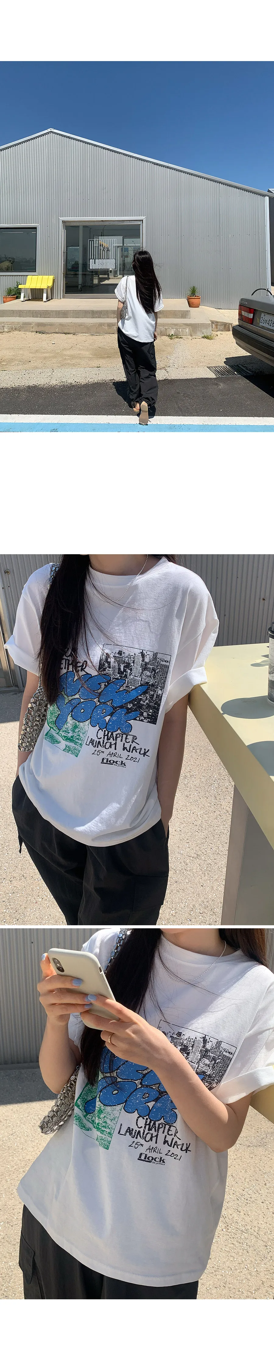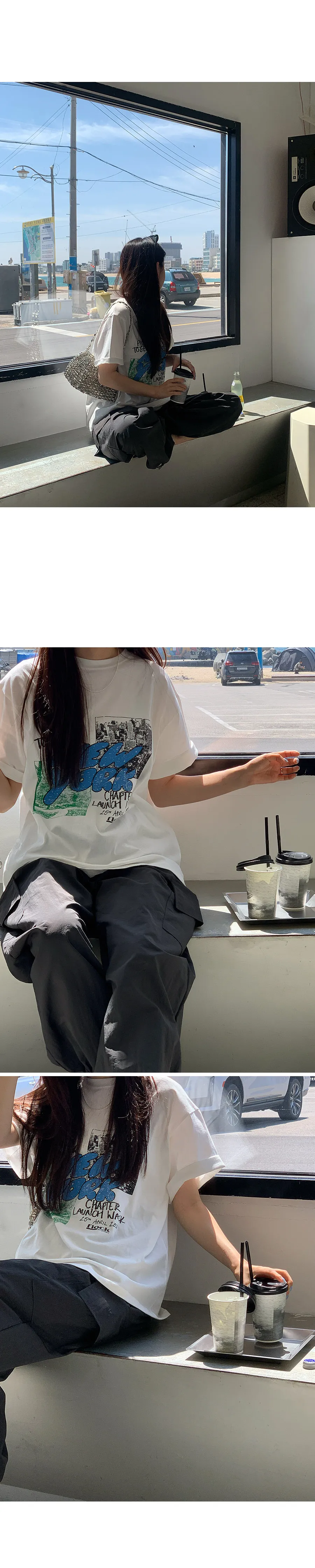 迷人的印花T卹!半罩式剪裁讓您享受舒適又時尚的感覺 - 它很復古,彩色印花是完美的亮點:)