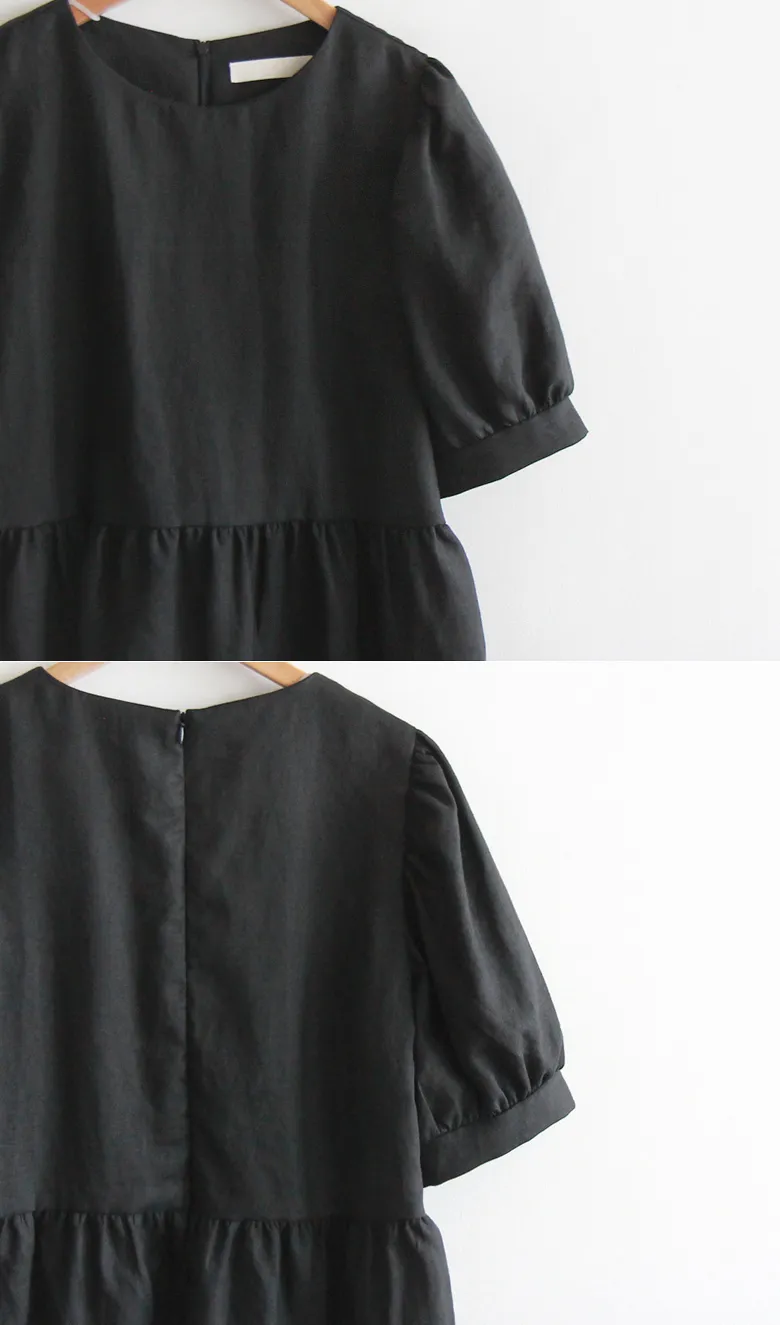 [後拉鍊結構][底部剪裁的可愛設計][精緻的色彩賦予季節感][夏季穿著涼爽的亞麻材質][適度體積的泡泡袖和漂亮的線條營造出優雅的感覺】【推薦作為可愛的夏季上衣】
