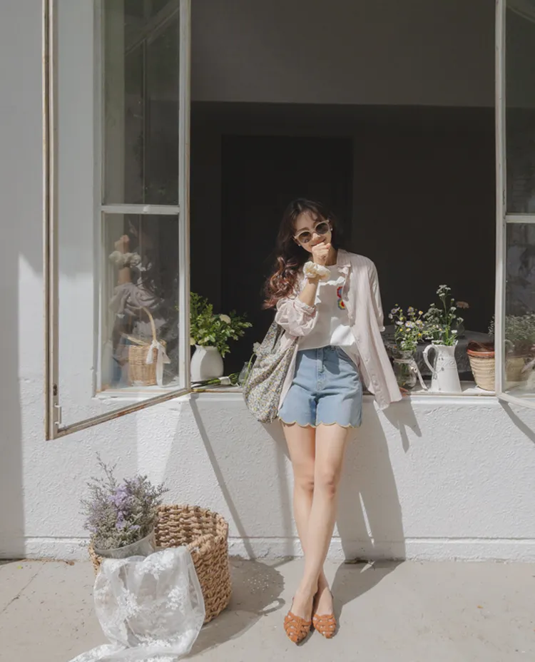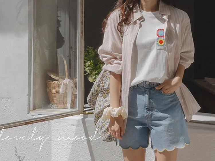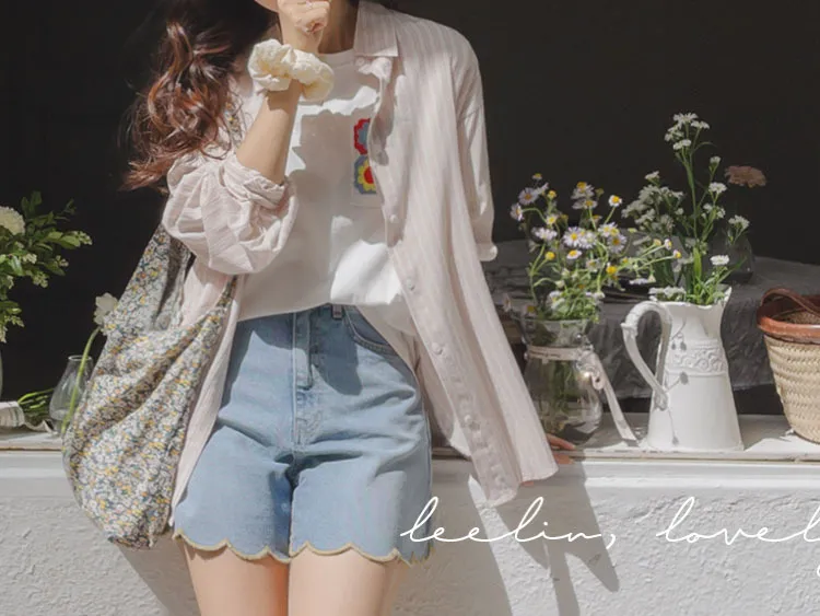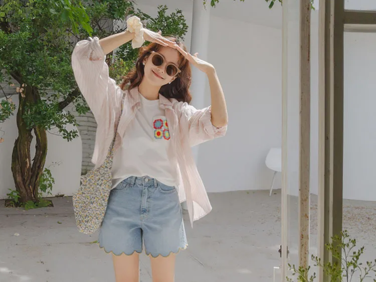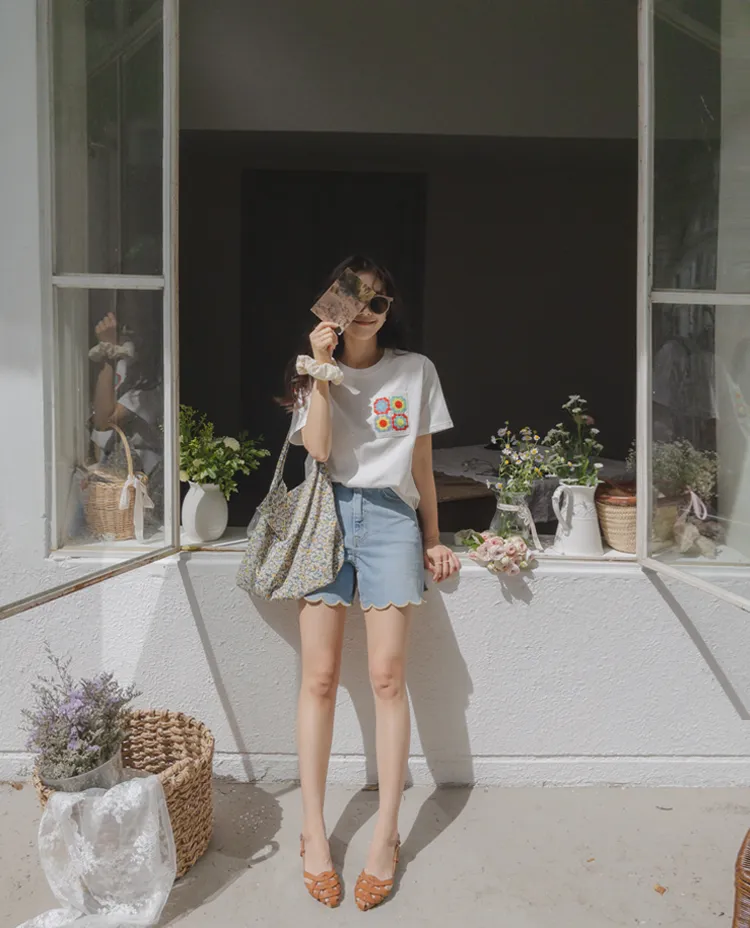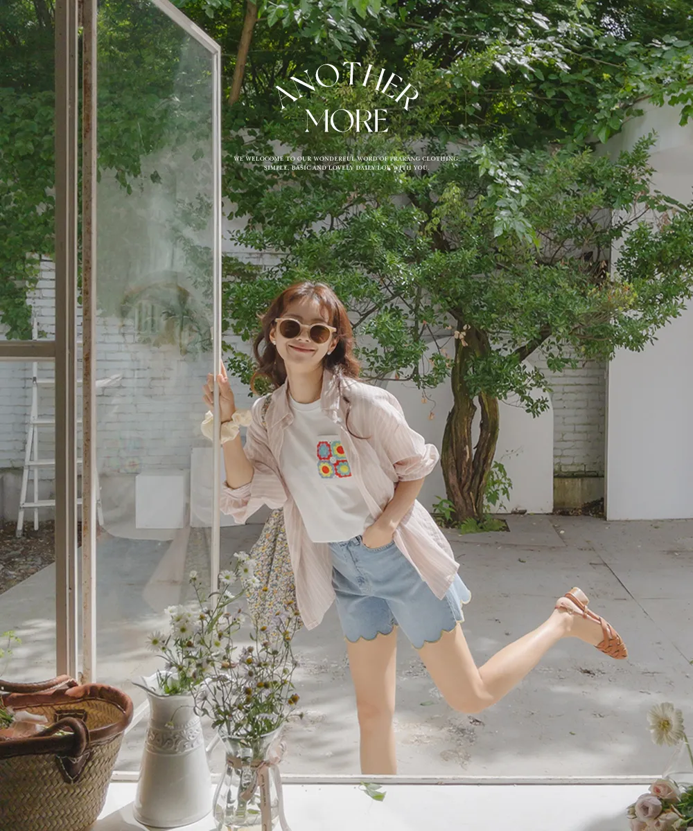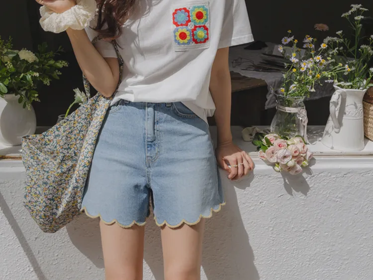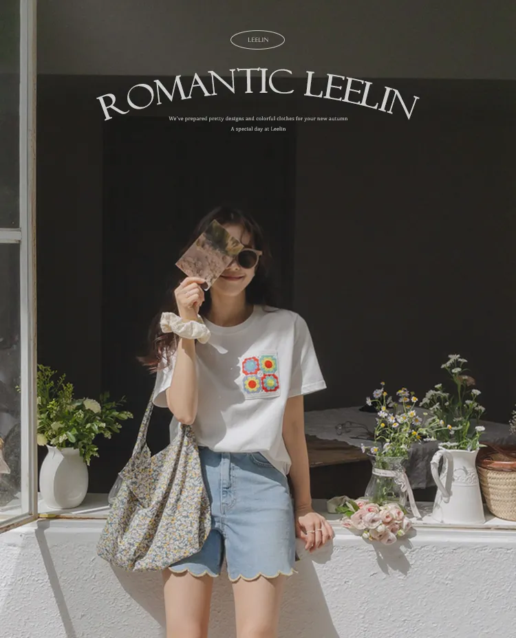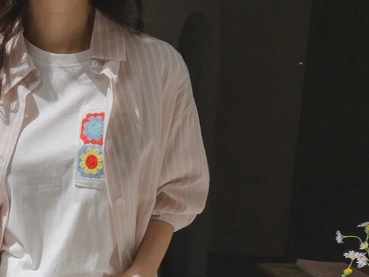 【花朵針織口袋上衣♥】【品質真好,30支棉生物洗水~】【短袖T卹,到處搭配都很棒】【穿著舒適柔軟】