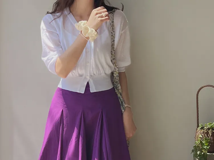 [色彩明亮漂亮] [尼龍~整個夏天都很涼爽的材質-] [添加柔軟的生物洗滌] [抗皺,所以不容易起皺~]