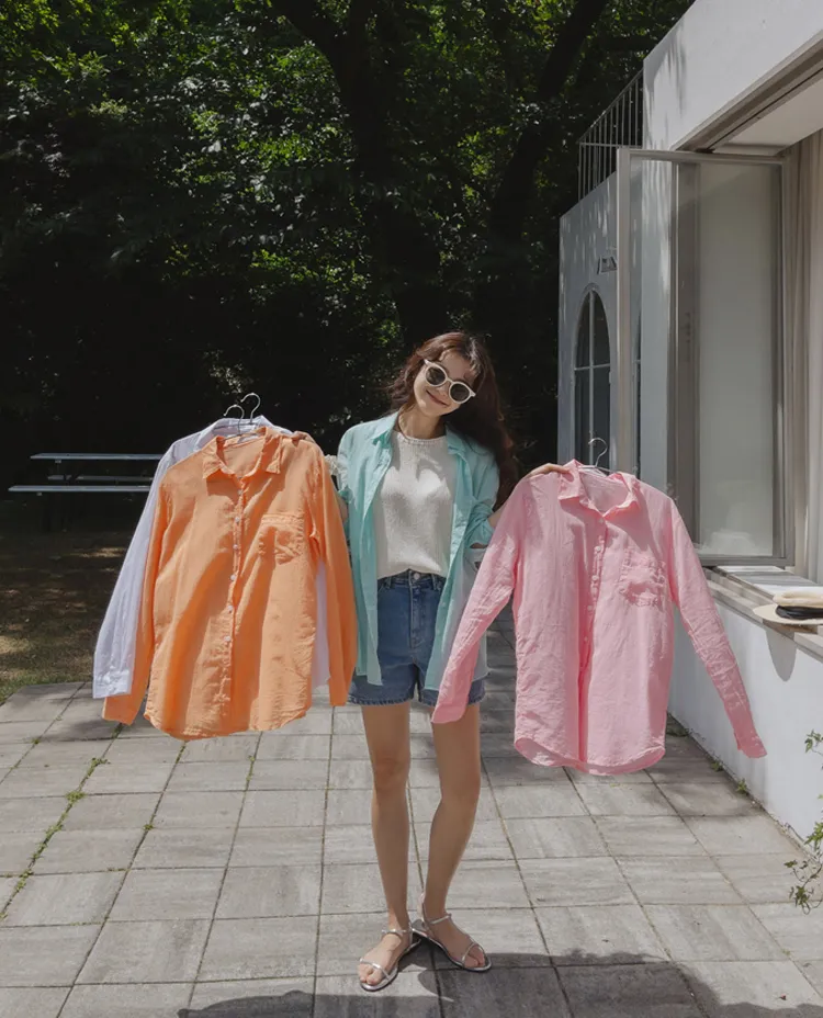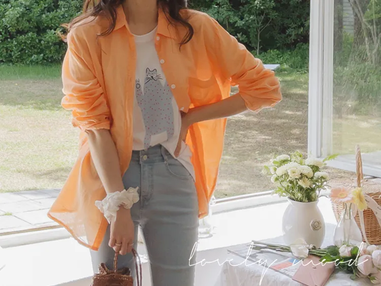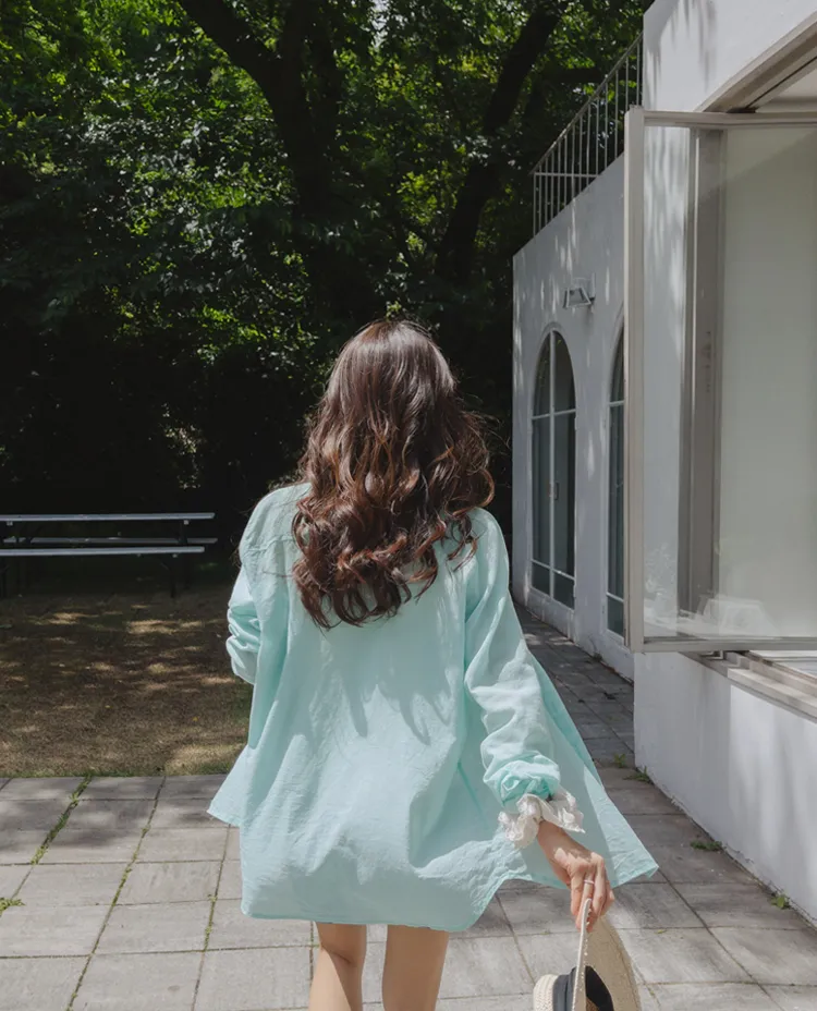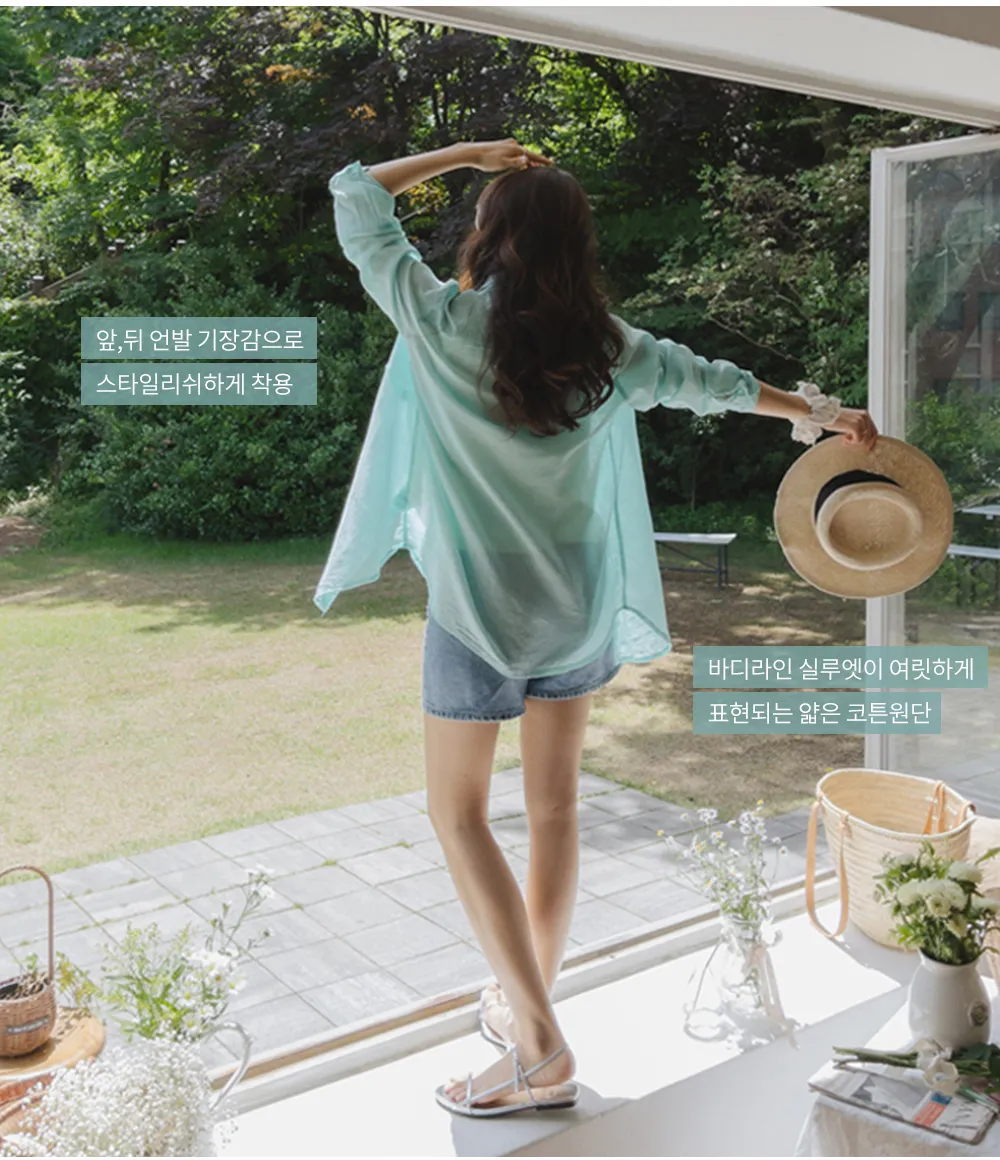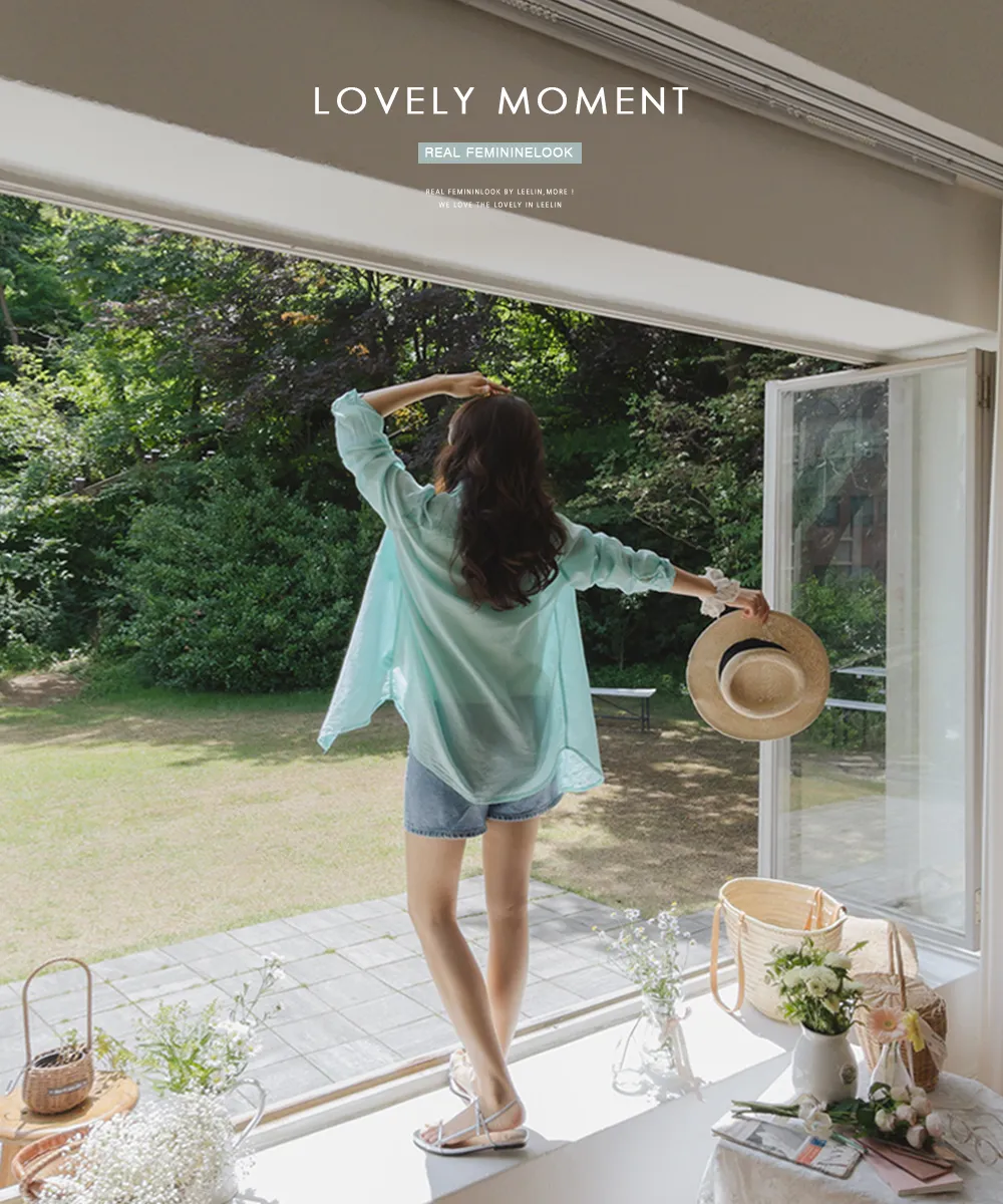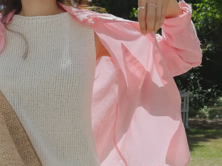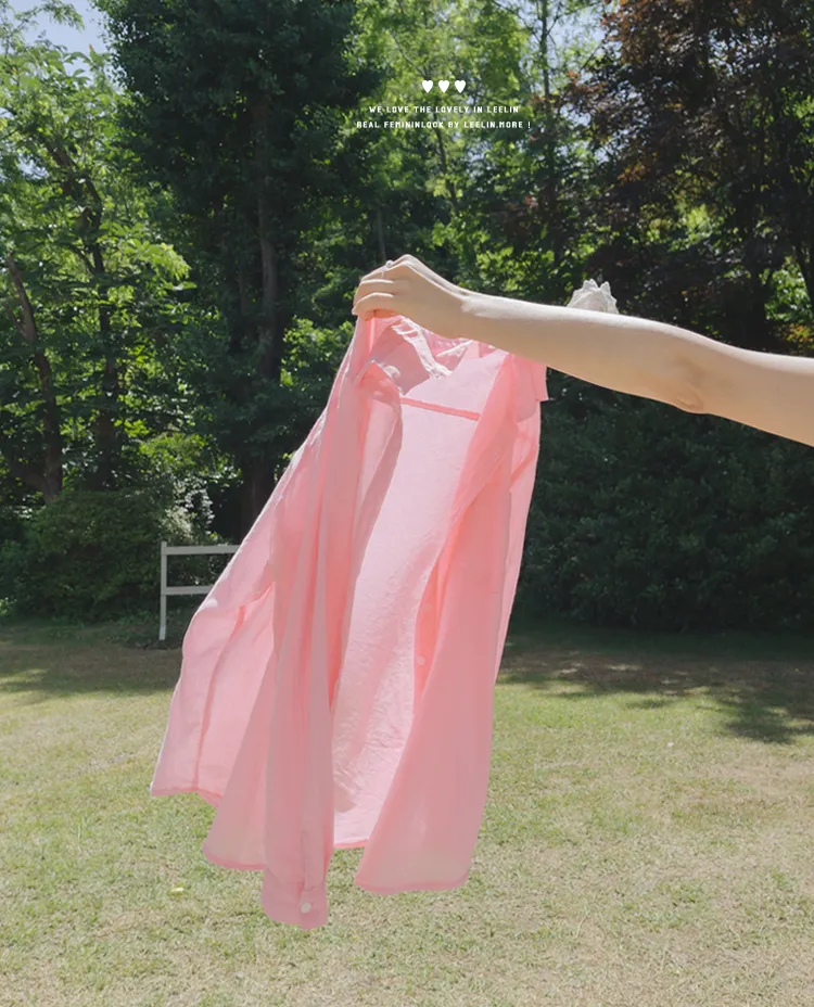 [微風~清新的襯衫♥][棉材質薄而輕,柔軟][甜~涼感好,推薦作為夏季單品][蓬鬆~觸感柔軟舒適] [雨季&梅雨季節&阻擋空調風的各種用途穿搭!!]