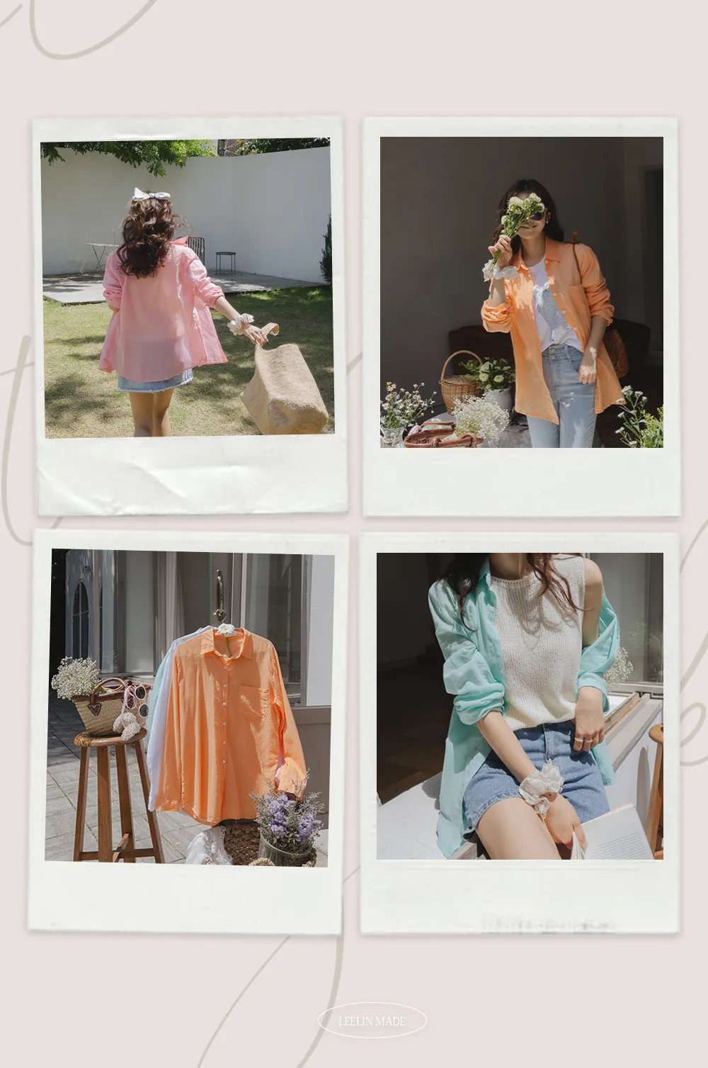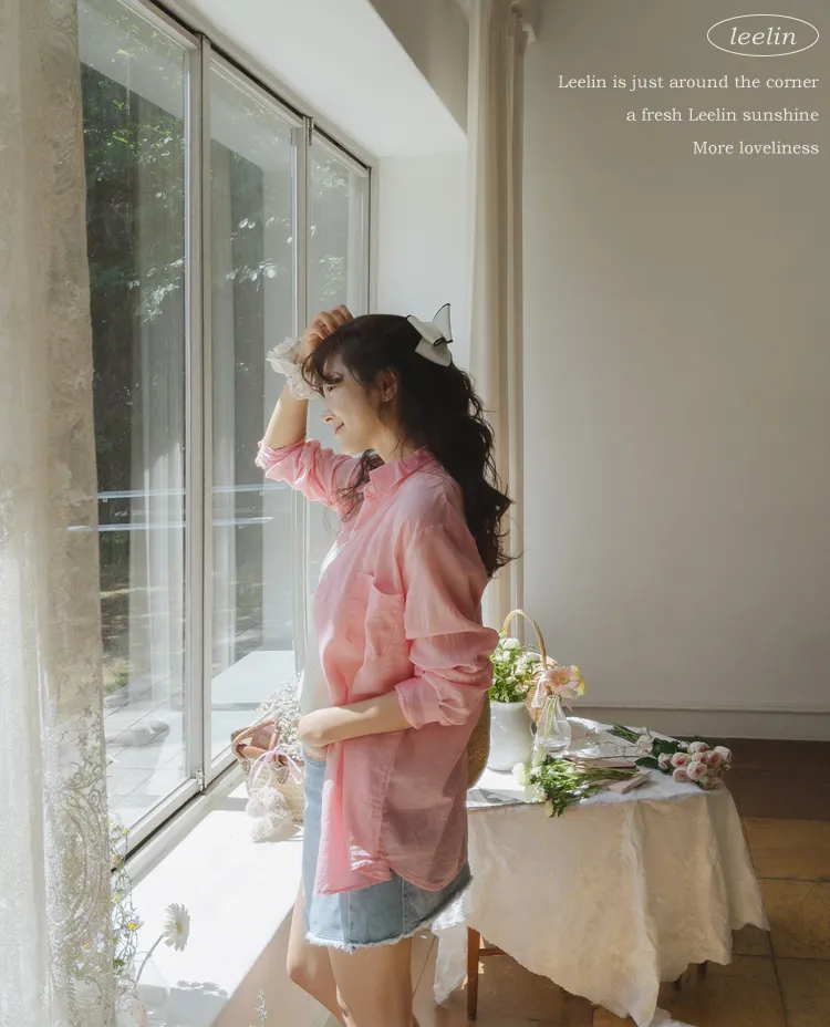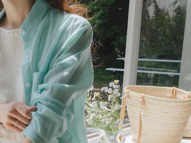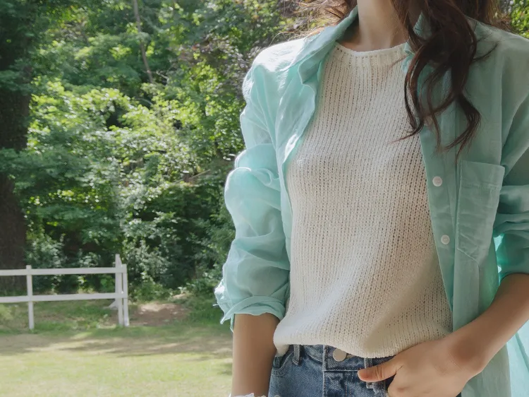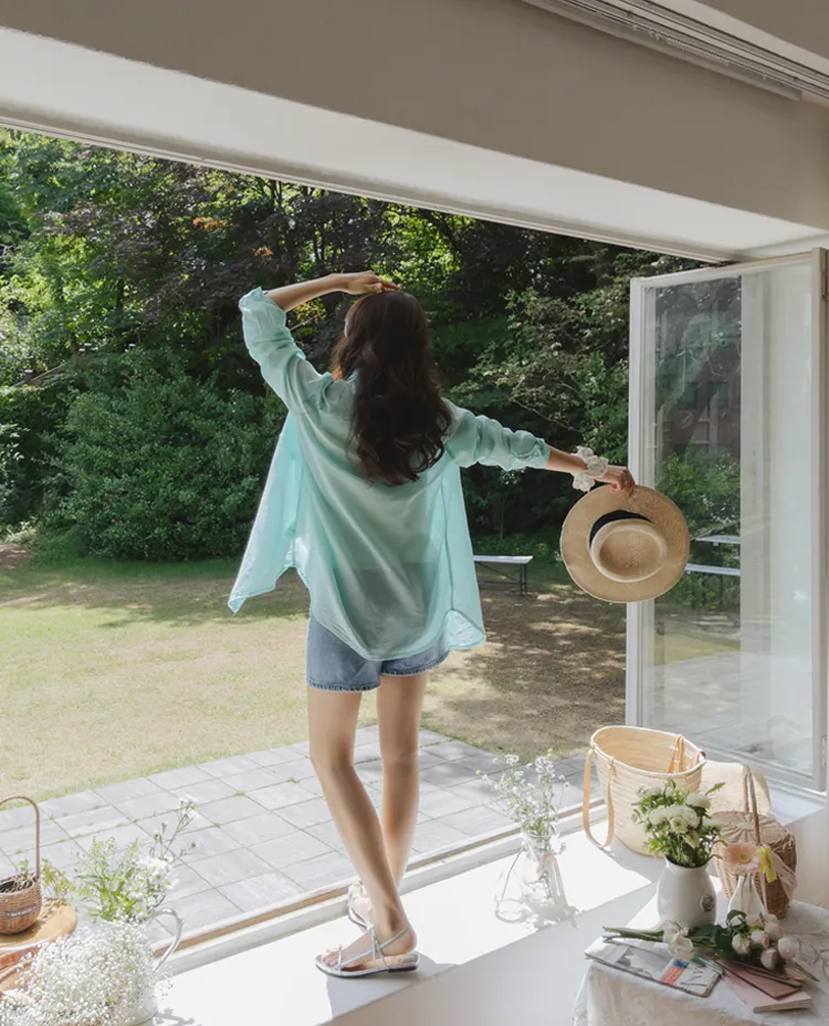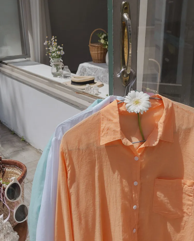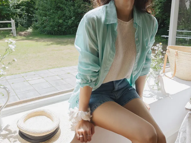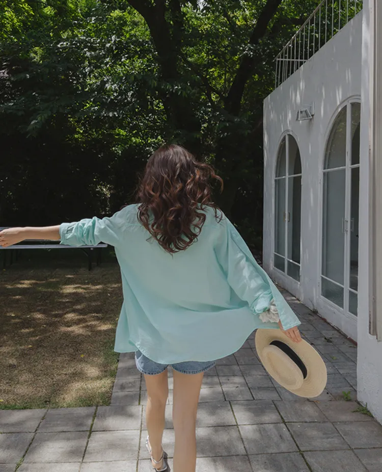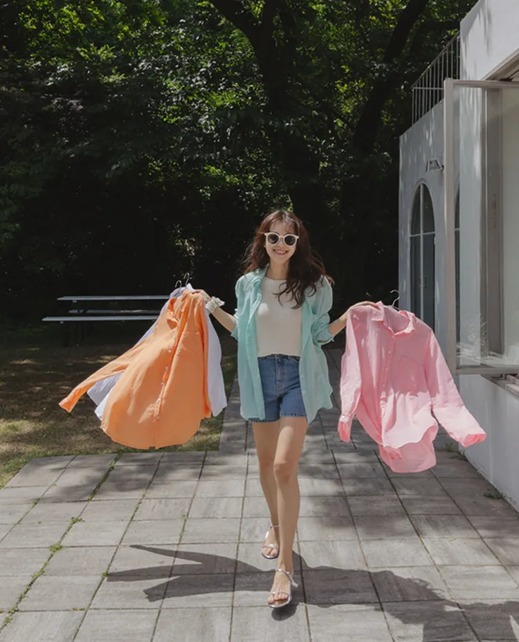 [微風~清新的襯衫♥][棉材質薄而輕,柔軟][甜~涼感好,推薦作為夏季單品][蓬鬆~觸感柔軟舒適] [雨季&梅雨季節&阻擋空調風的各種用途穿搭!!]