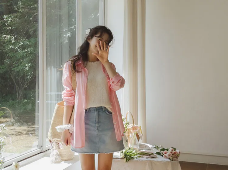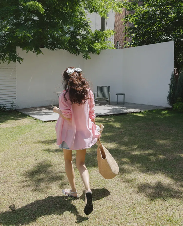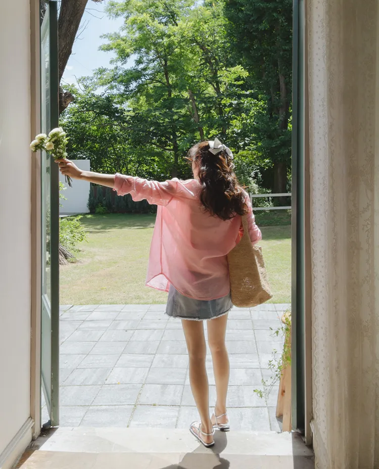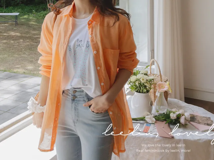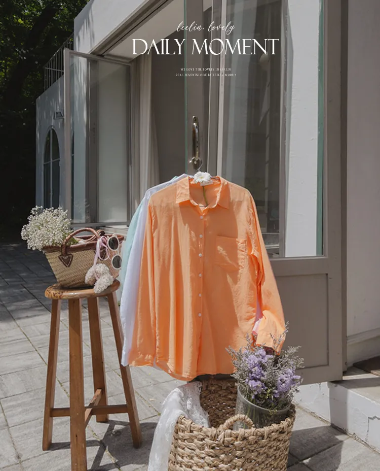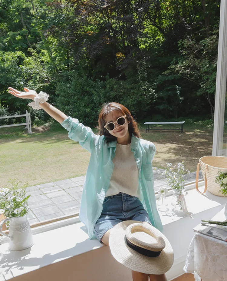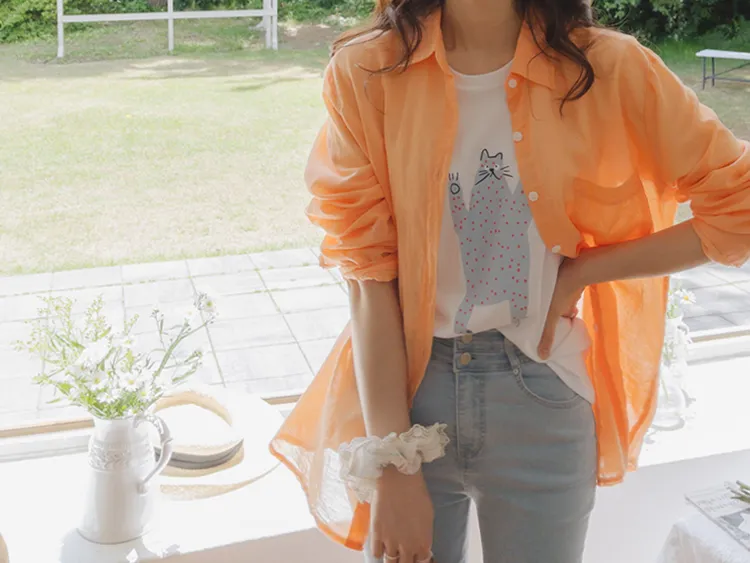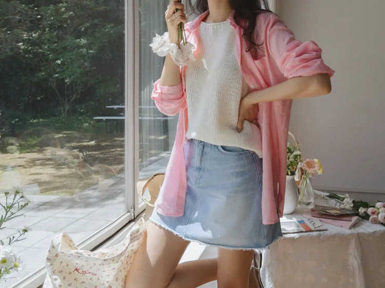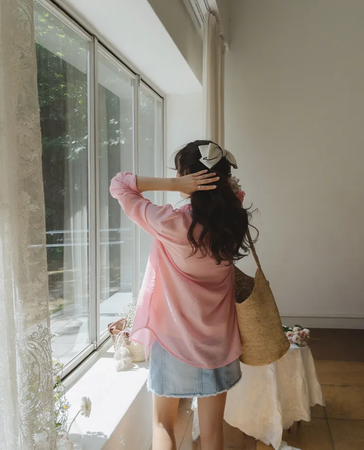 [微風~清新的襯衫♥][棉材質薄而輕,柔軟][甜~涼感好,推薦作為夏季單品][蓬鬆~觸感柔軟舒適] [雨季&梅雨季節&阻擋空調風的各種用途穿搭!!]