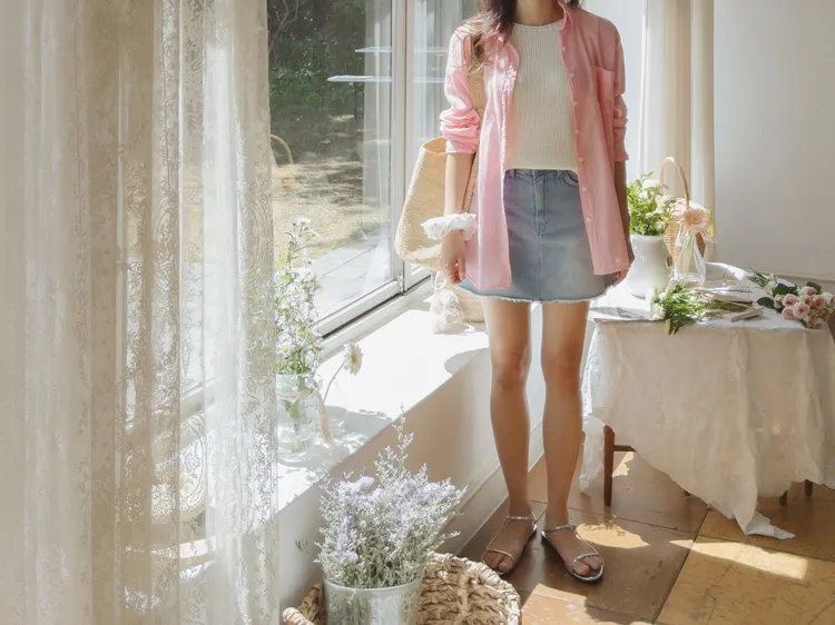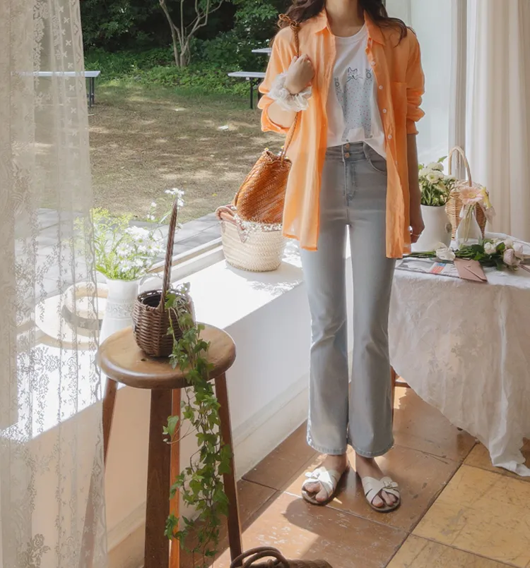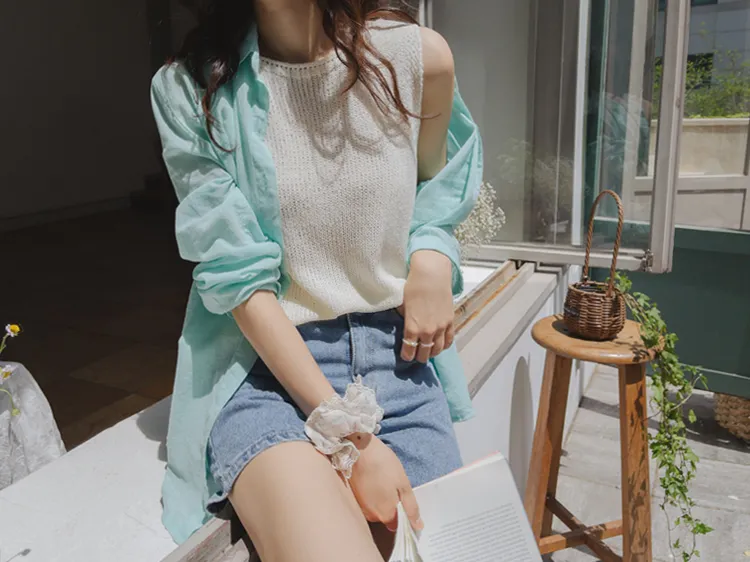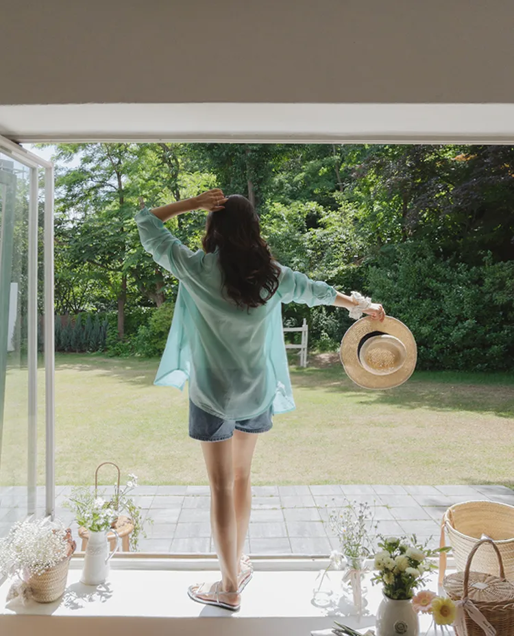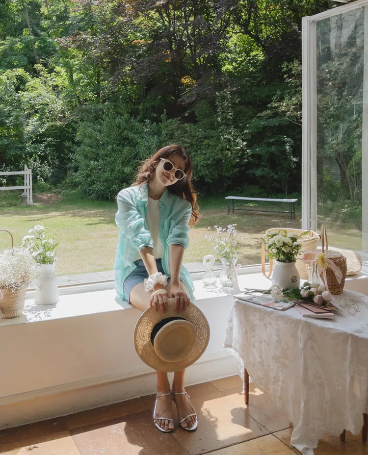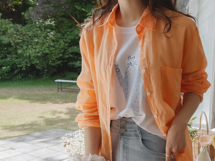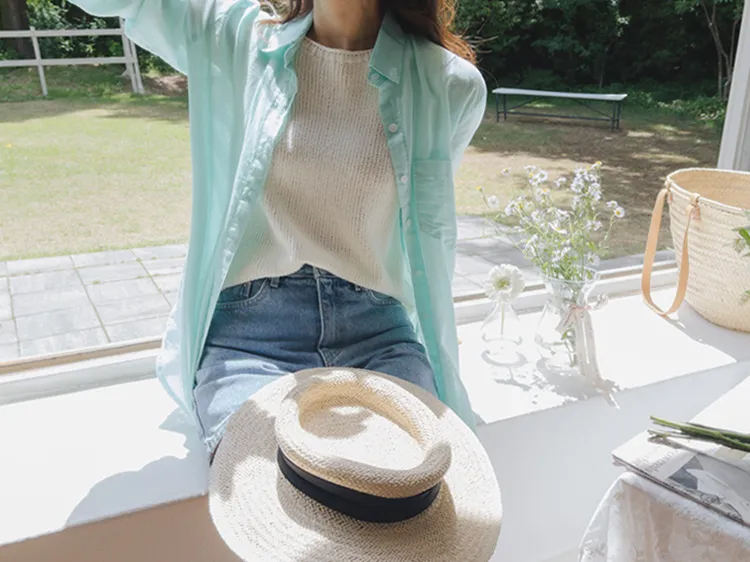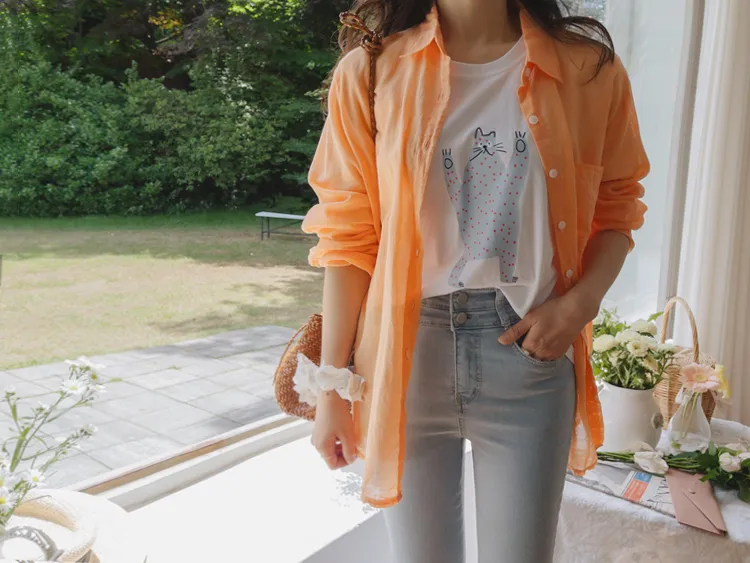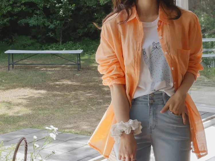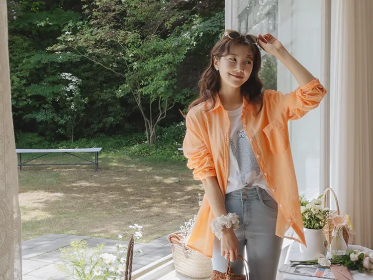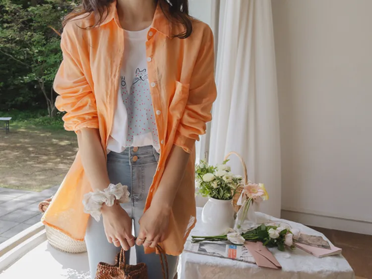 [微風~清新的襯衫♥][棉材質薄而輕,柔軟][甜~涼感好,推薦作為夏季單品][蓬鬆~觸感柔軟舒適] [雨季&梅雨季節&阻擋空調風的各種用途穿搭!!]