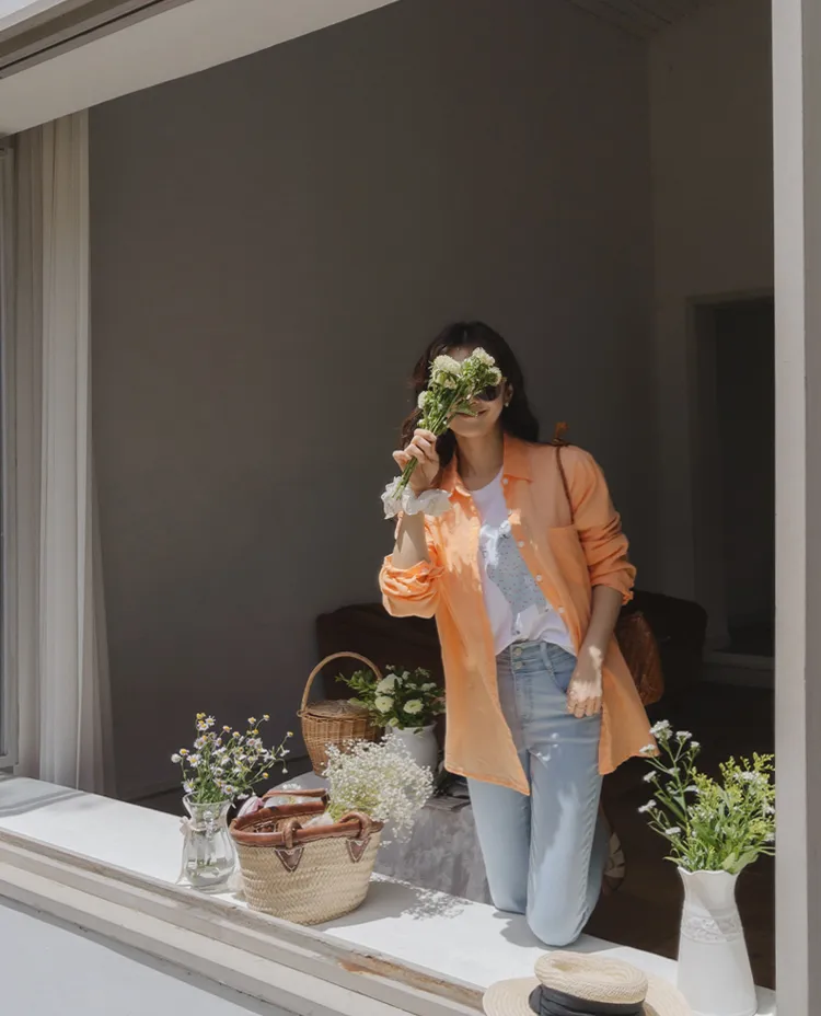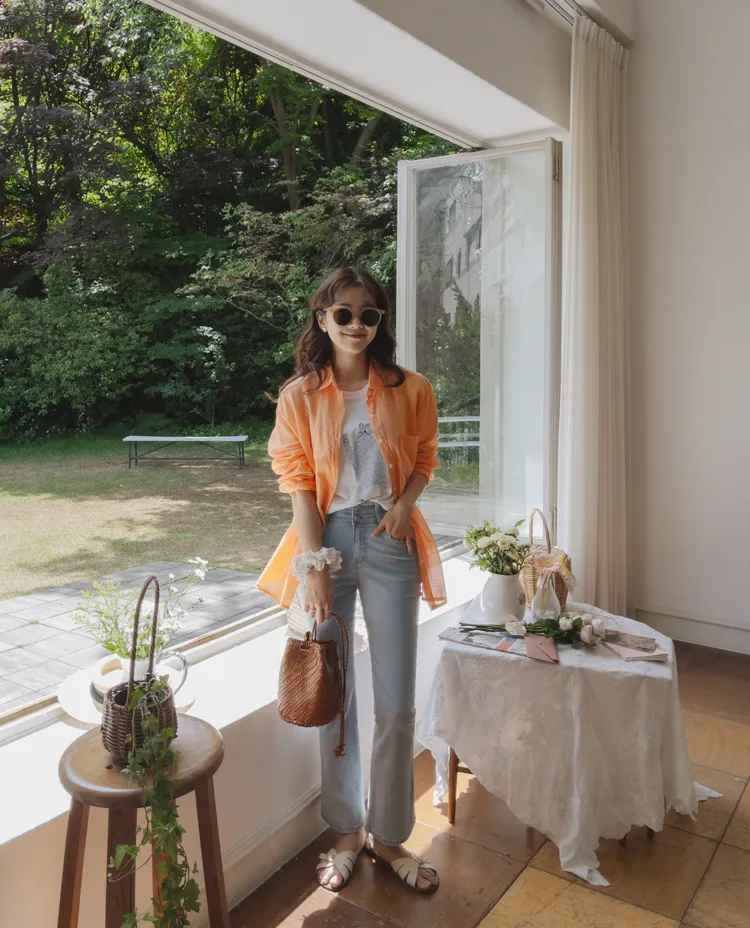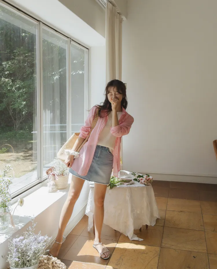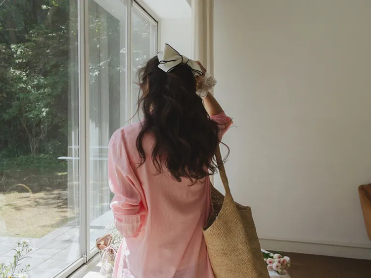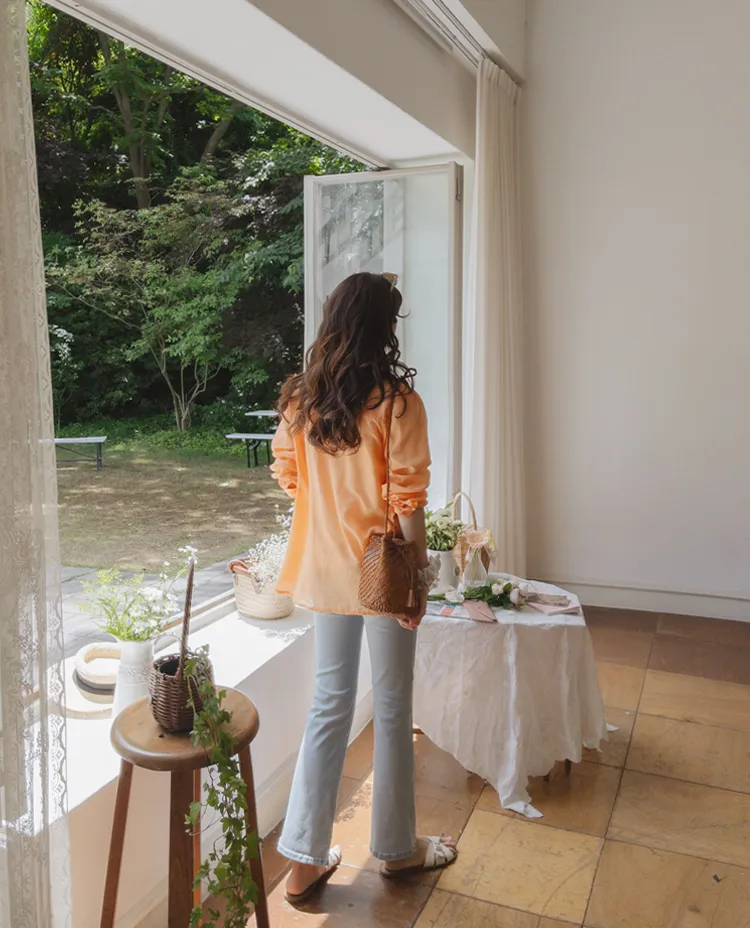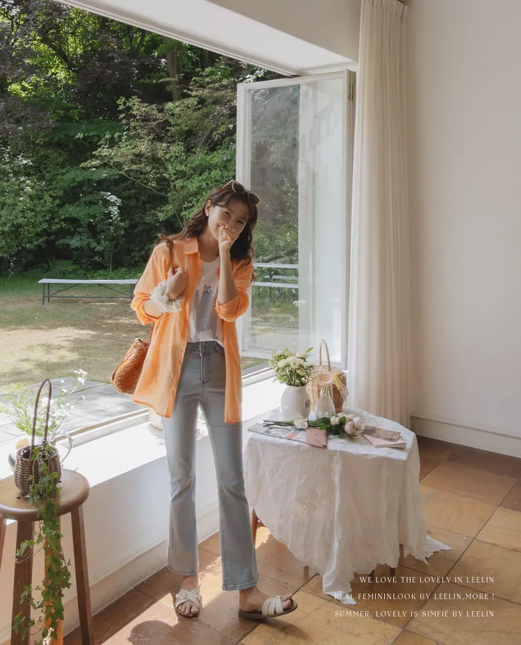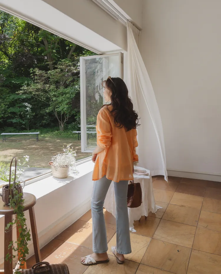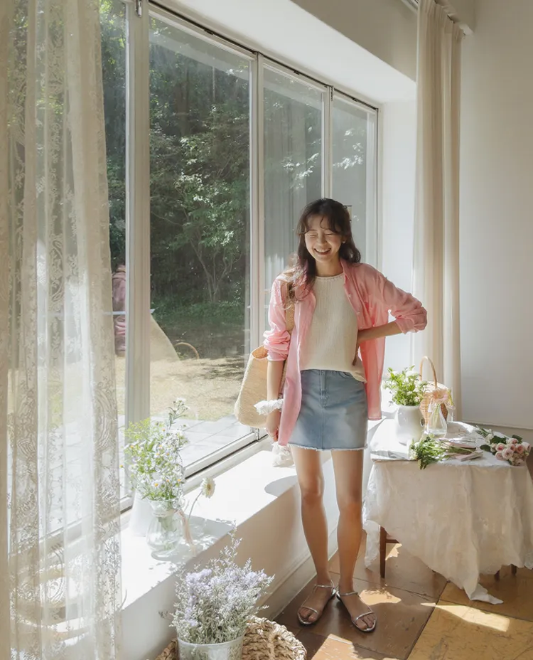 [微風~清新的襯衫♥][棉材質薄而輕,柔軟][甜~涼感好,推薦作為夏季單品][蓬鬆~觸感柔軟舒適] [雨季&梅雨季節&阻擋空調風的各種用途穿搭!!]
