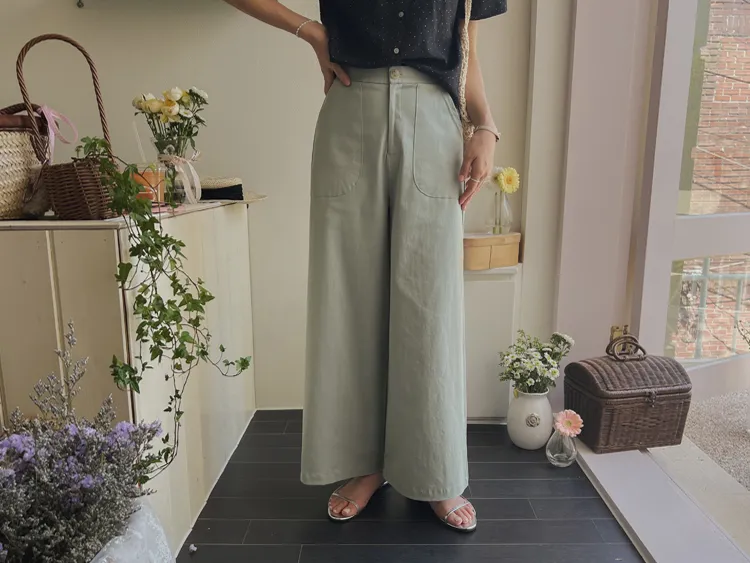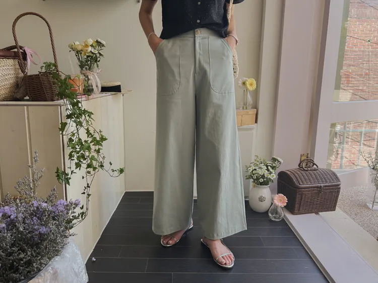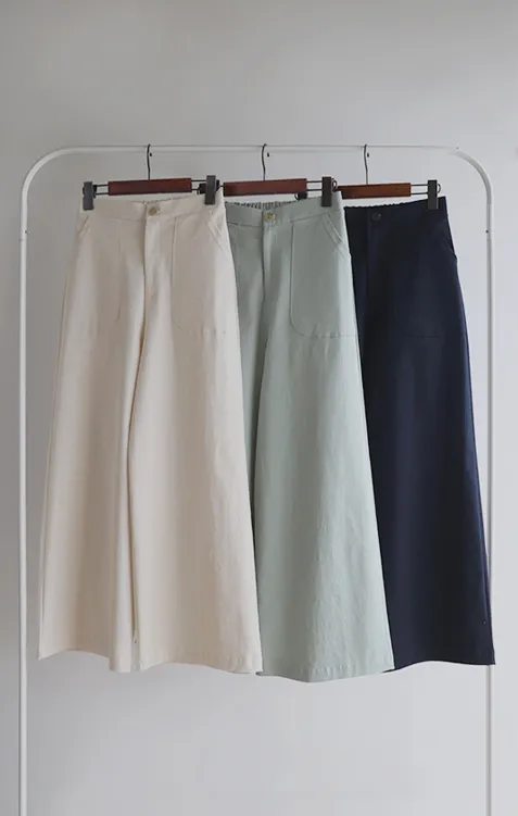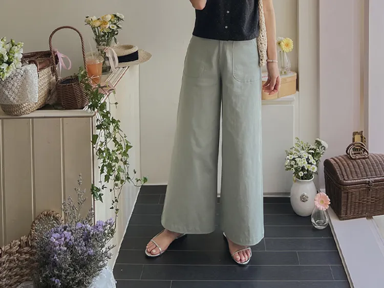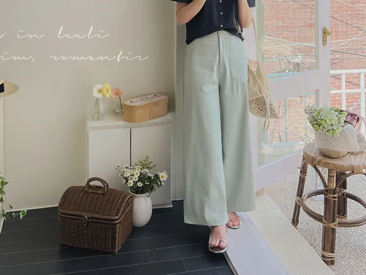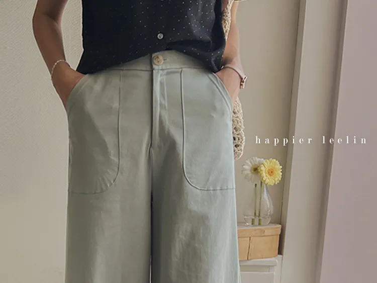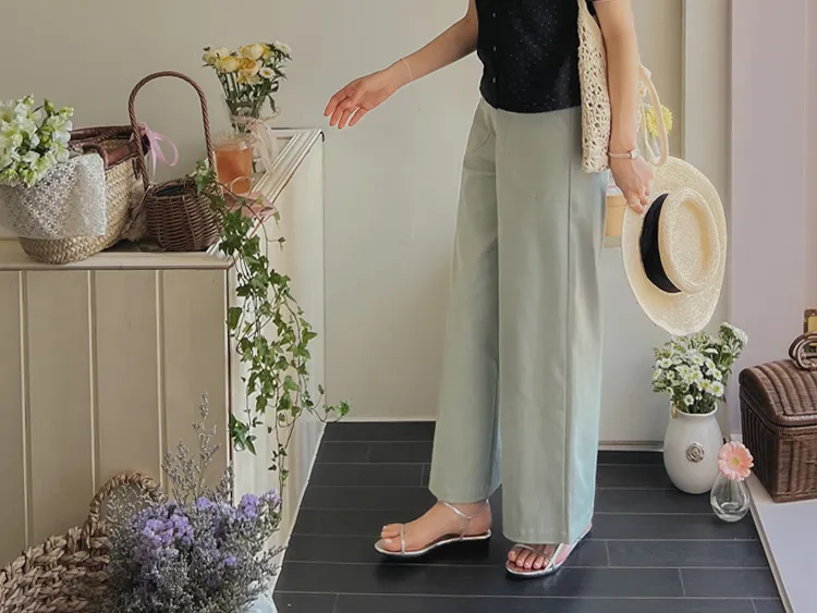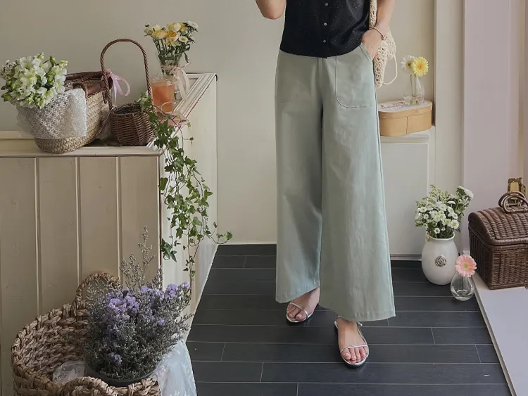 [舒適休閒褲♥ 添加彈性氨綸] [寬版型,後腰帶舒適] [情緒半 A 字型寬版型] [穿著時尚明亮]