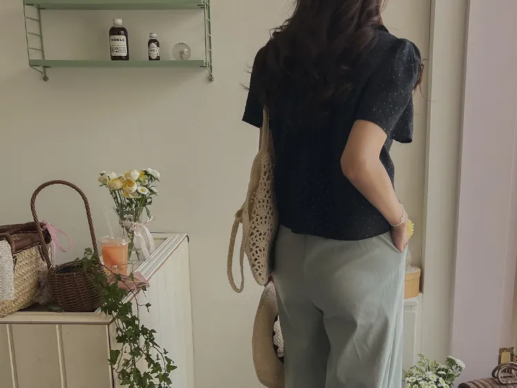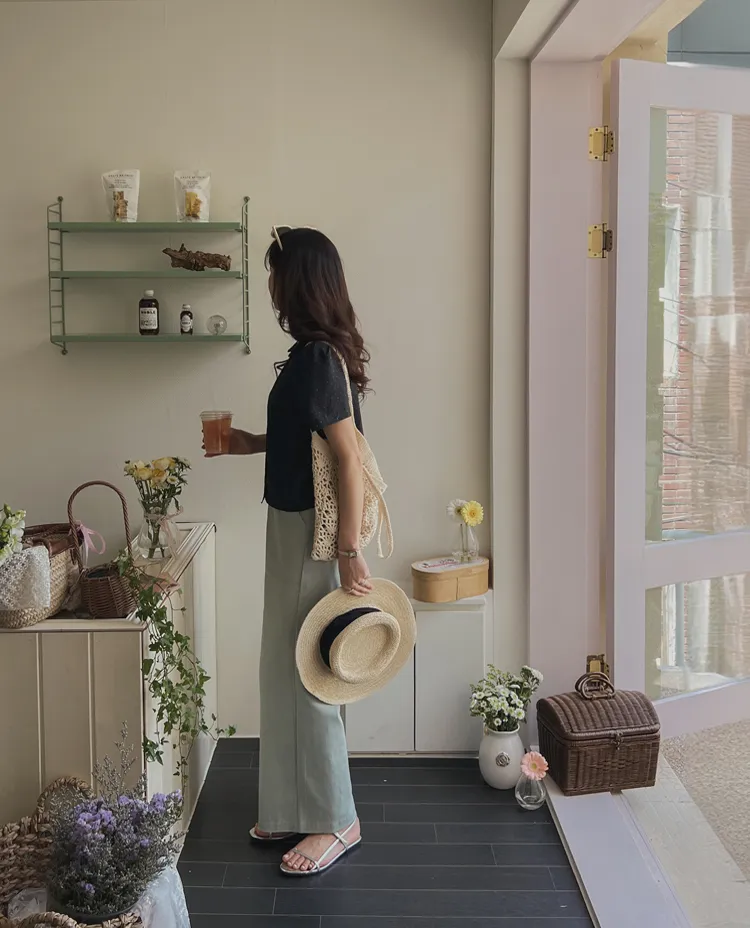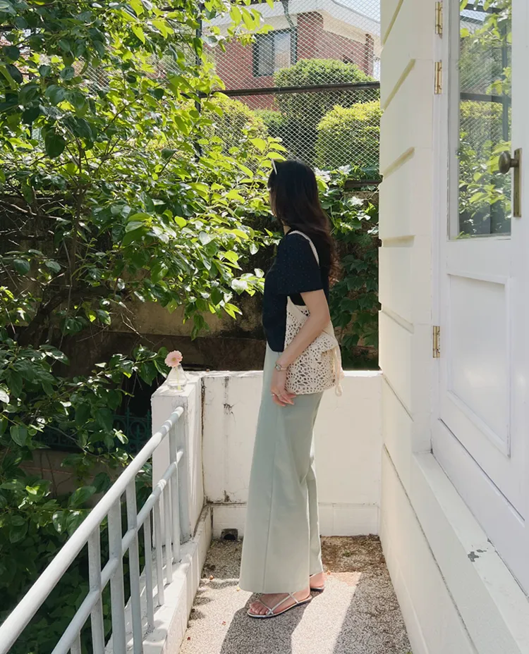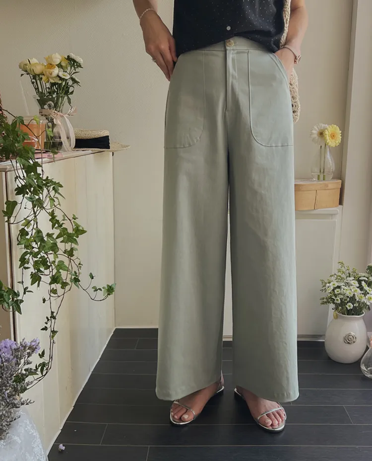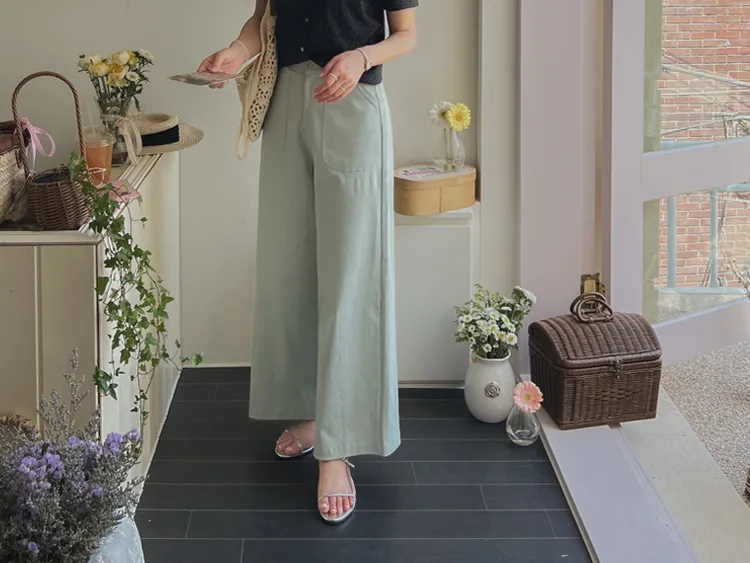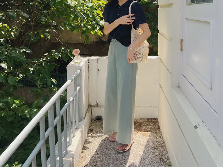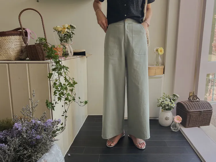 [舒適休閒褲♥ 添加彈性氨綸] [寬版型,後腰帶舒適] [情緒半 A 字型寬版型] [穿著時尚明亮]