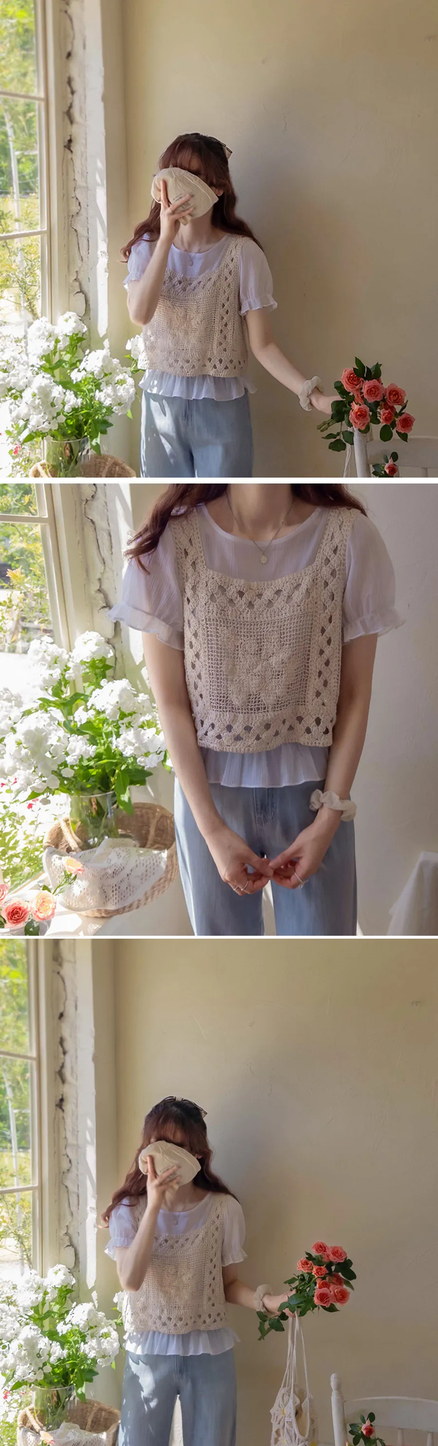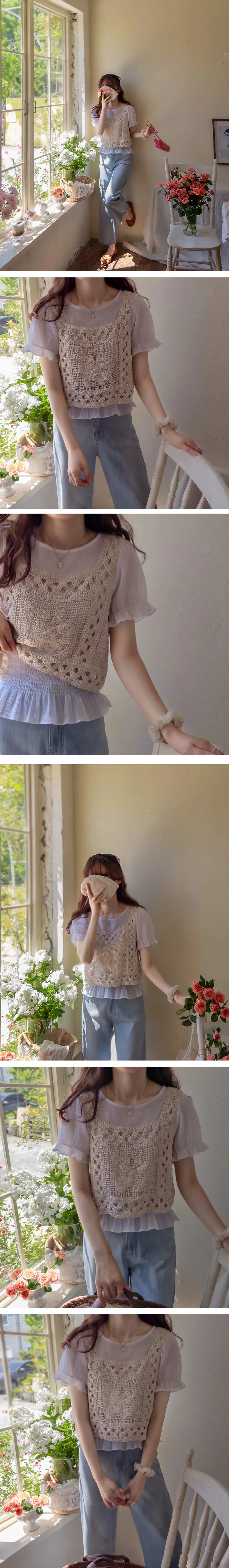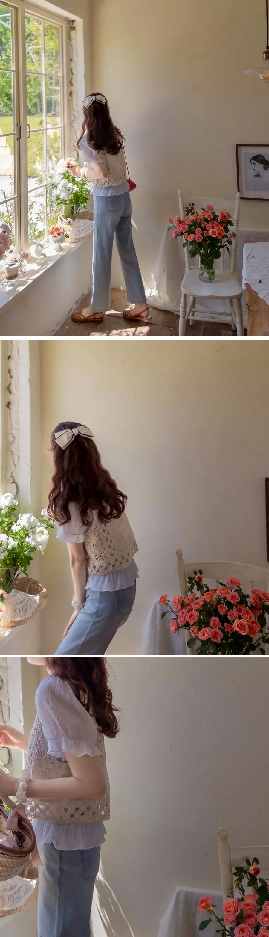 【袖子: 鑲邊】【腰部採用彈性皺摺鑲邊處理】【袖子也採用鑲邊剪裁充滿可愛魅力】【夏季面料,帶有微妙的皺紋感覺] [從現在到夏天都很好] [作為明亮優雅的單品]
