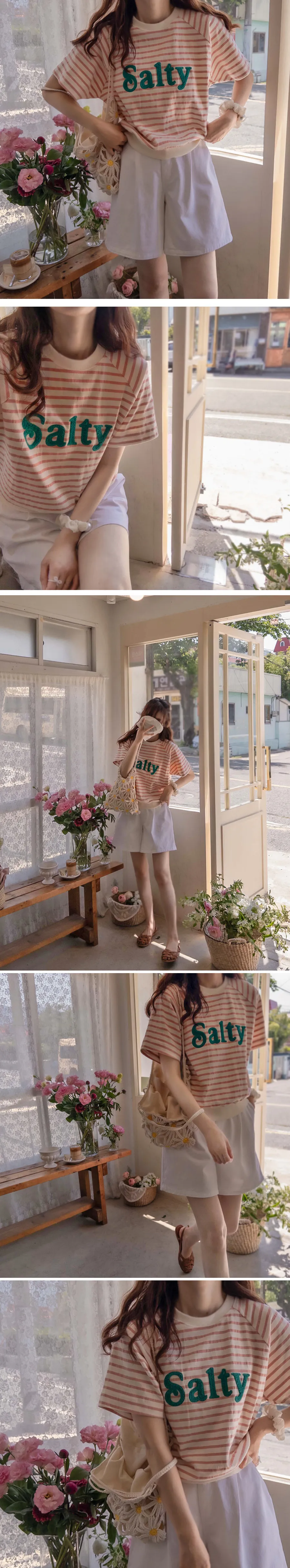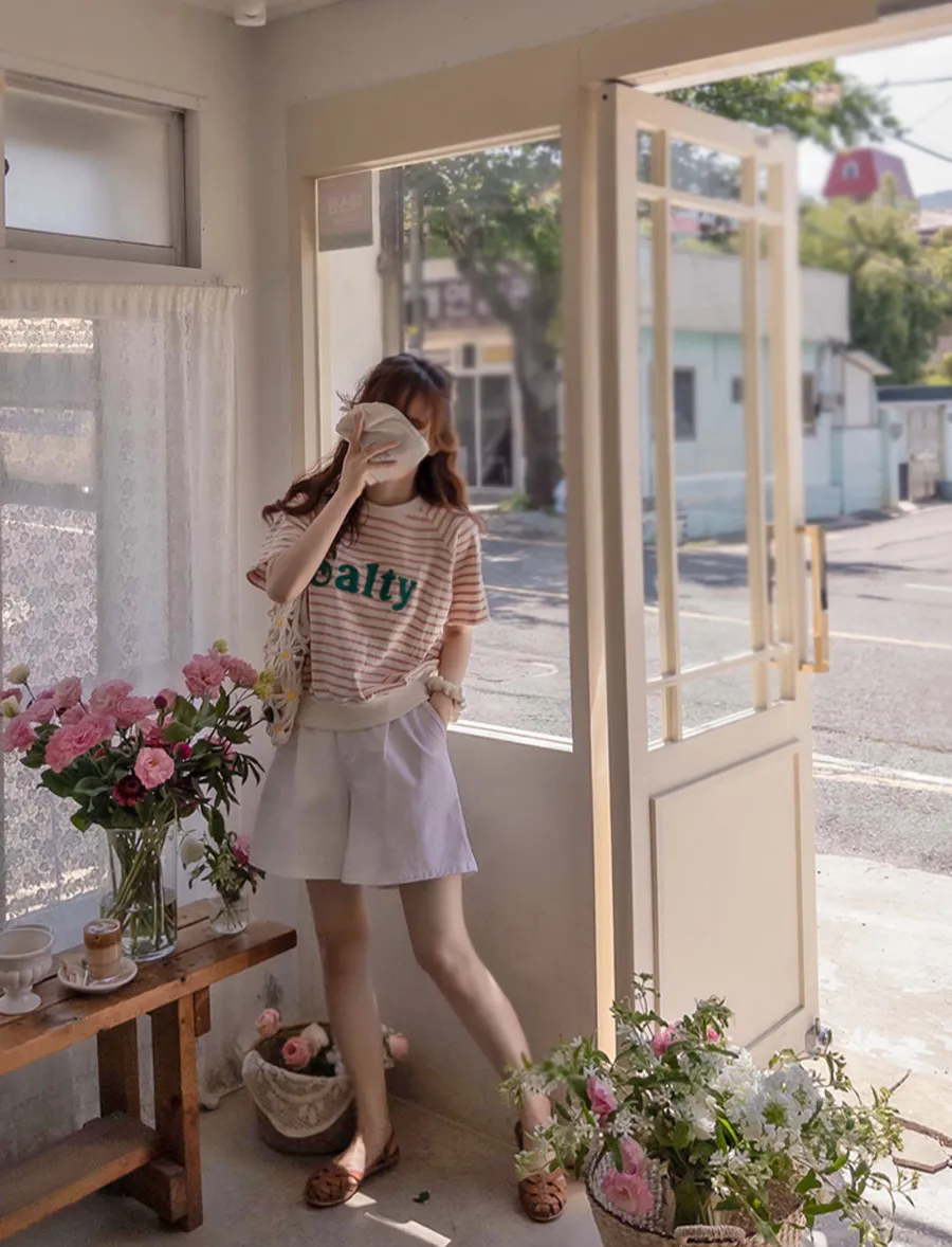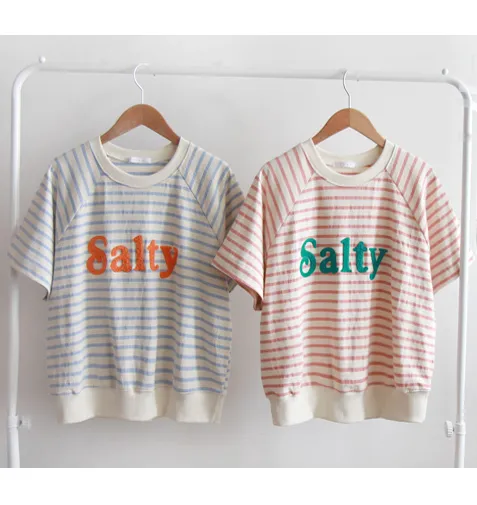 [條紋圖案給人一種活潑感覺][字母字樣是立體的][這件 T 卹很容易穿著,可以有品味地穿著而不累贅][推薦日常穿搭】