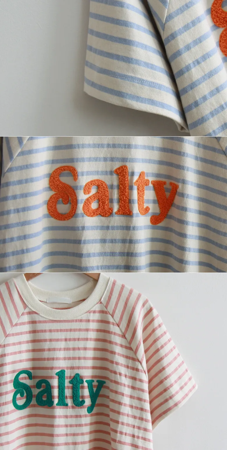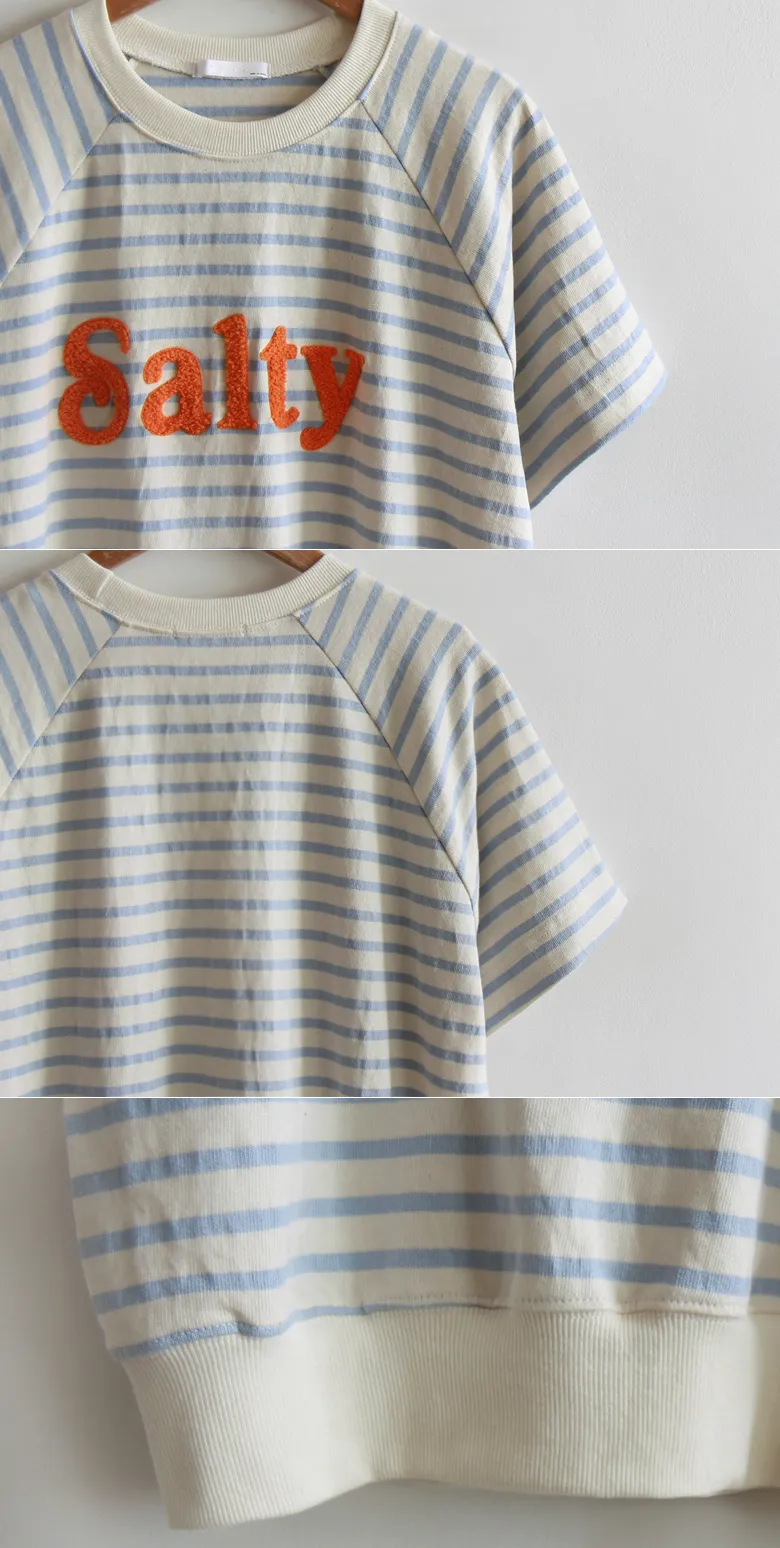 點綴立體字母休閒條紋上衣