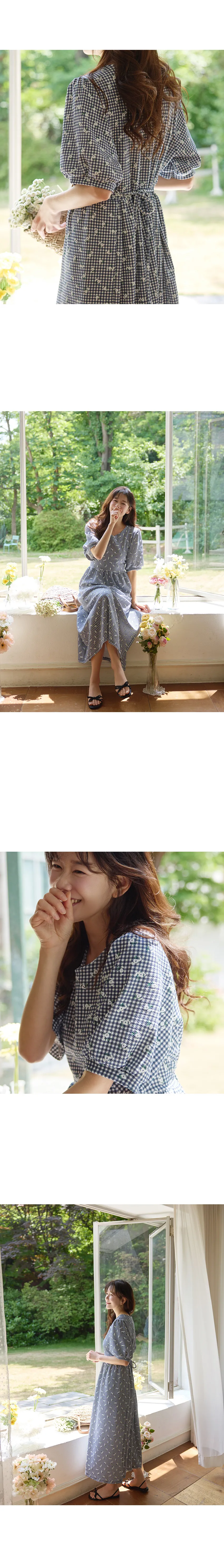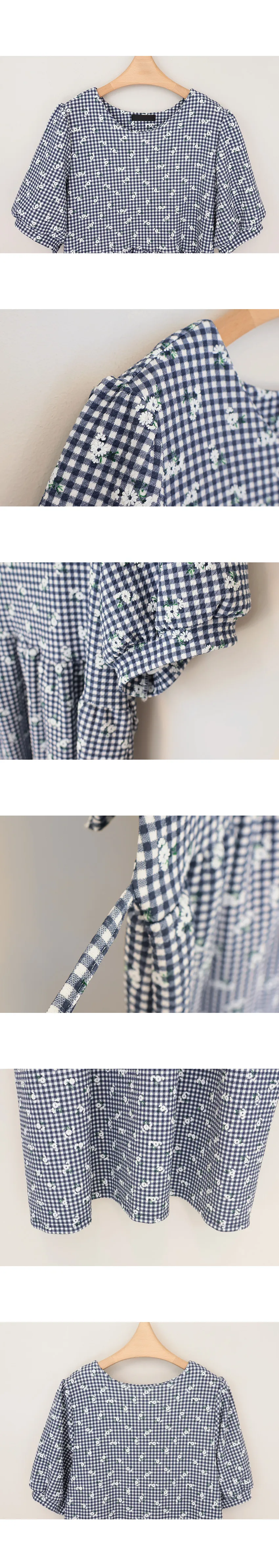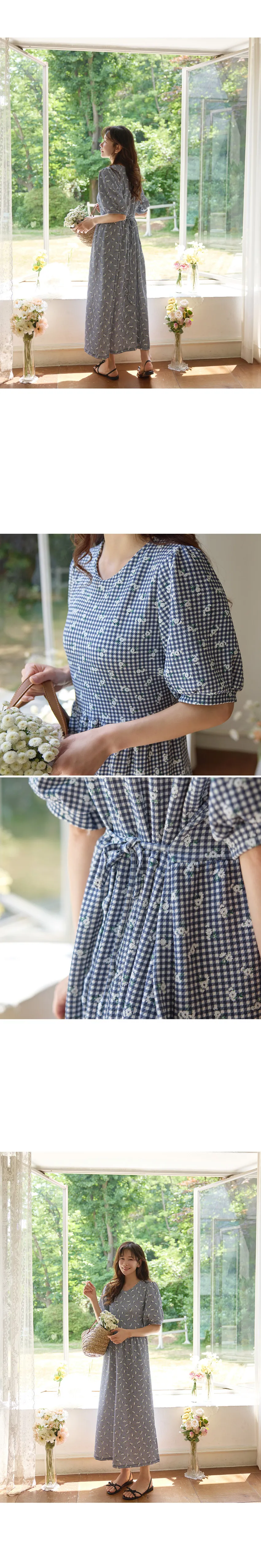 沉穩的格紋設計和精美的白色花朵刺繡,散發出更多的女人味,休閒精緻的領口和略高於腳踝的長度讓身材修長而優雅。腰綁帶使其穿著舒適且易於移動。合適的版型和裙擺線條很漂亮。