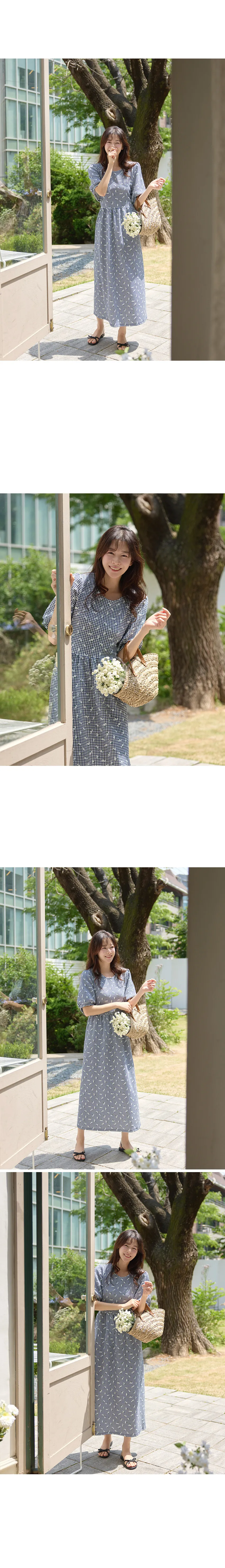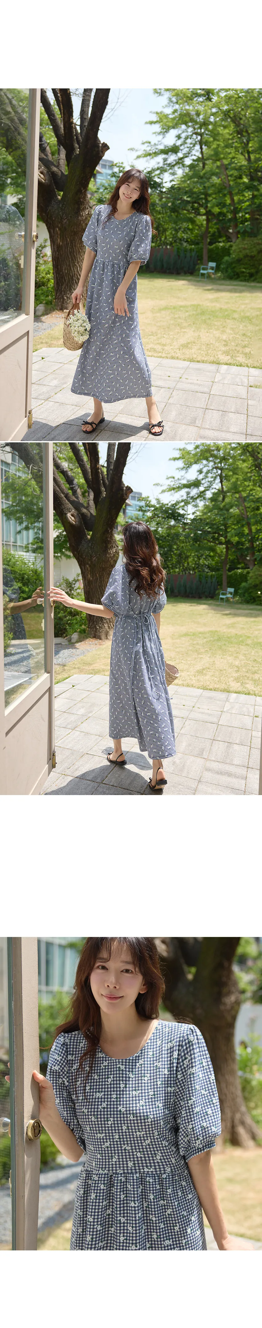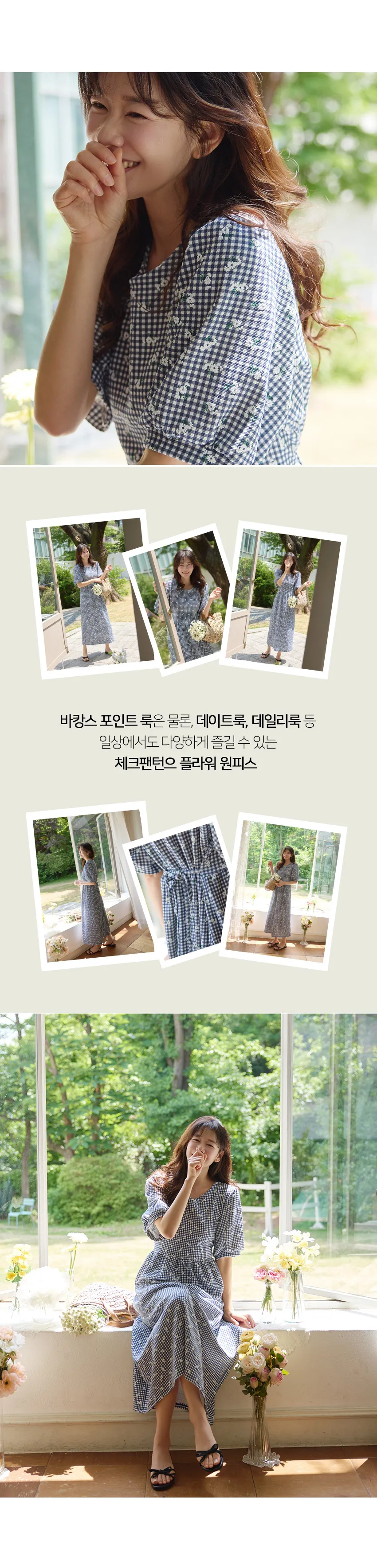 沉穩的格紋設計和精美的白色花朵刺繡,散發出更多的女人味,休閒精緻的領口和略高於腳踝的長度讓身材修長而優雅。腰綁帶使其穿著舒適且易於移動。合適的版型和裙擺線條很漂亮。