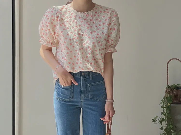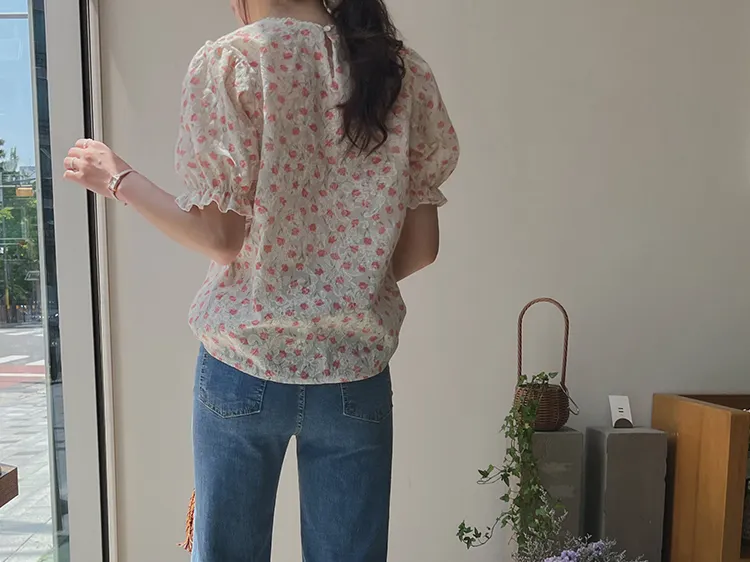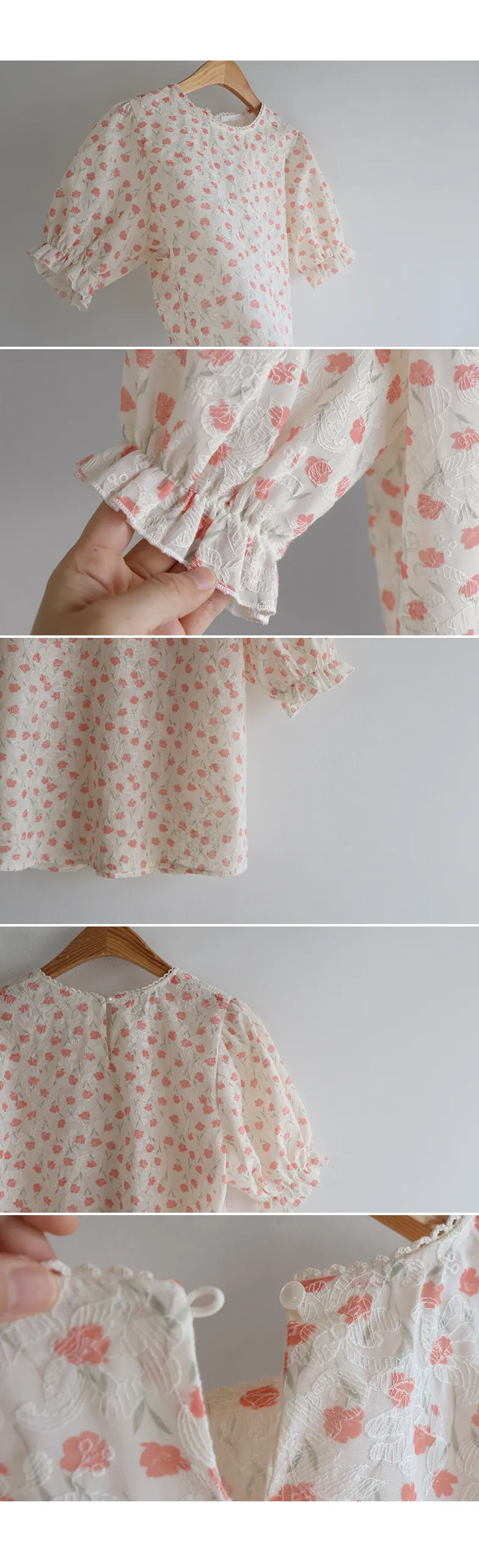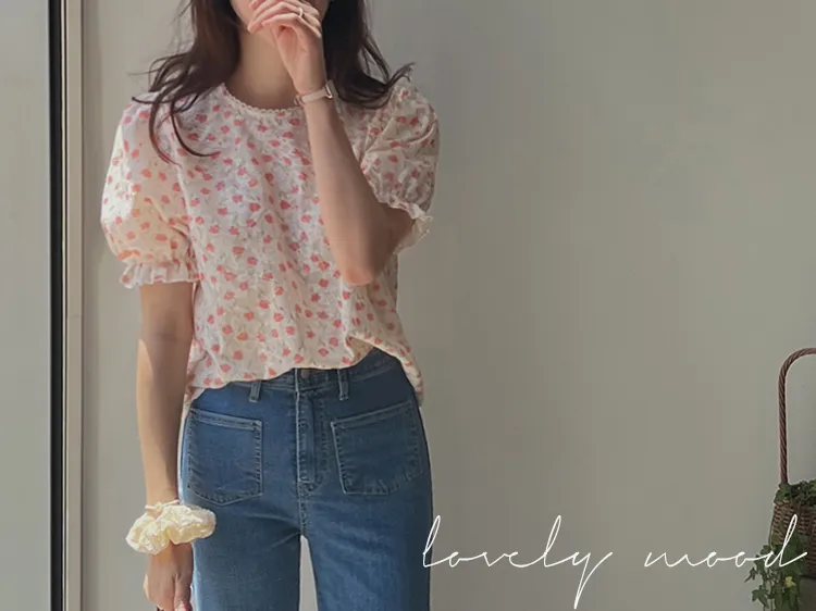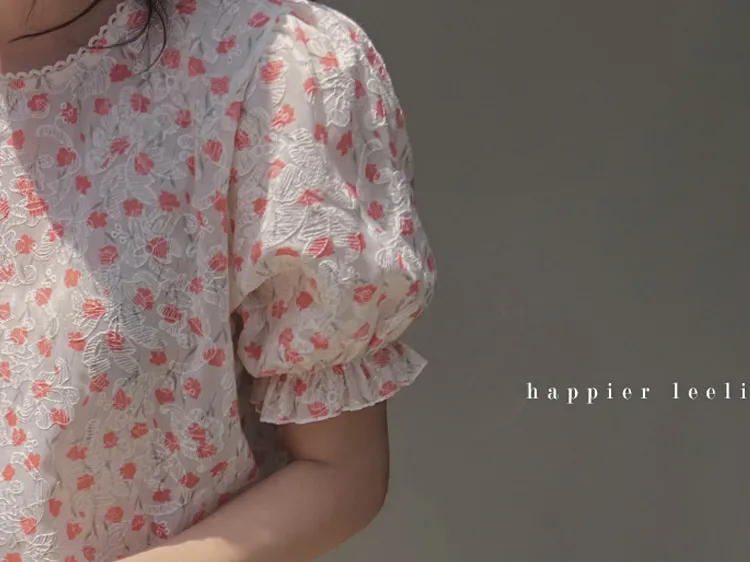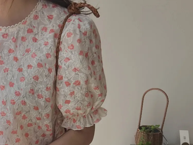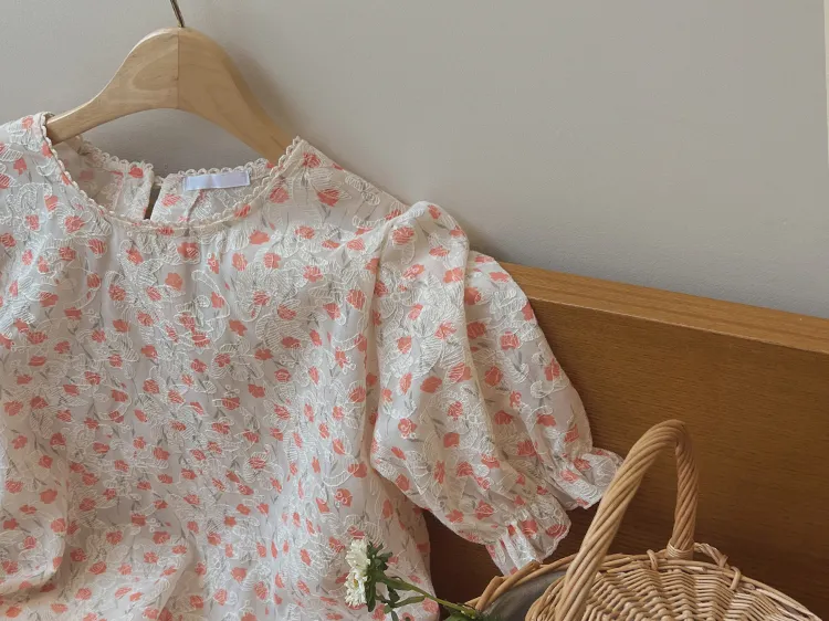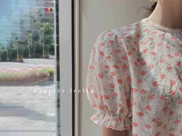 【明亮清新感】【添加花朵刺繡的奢華心情】【可愛的泡泡袖】【不易起皺