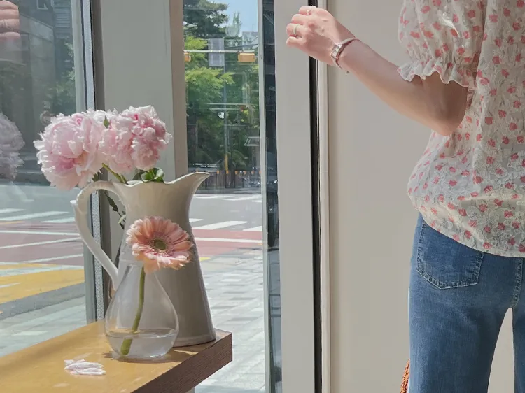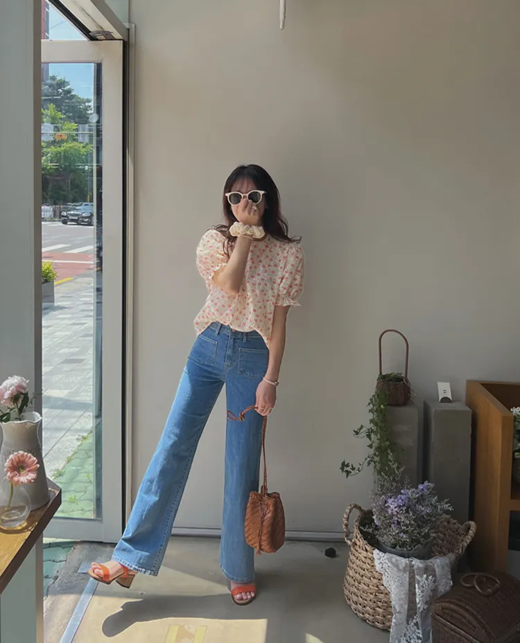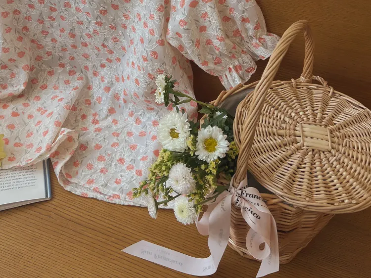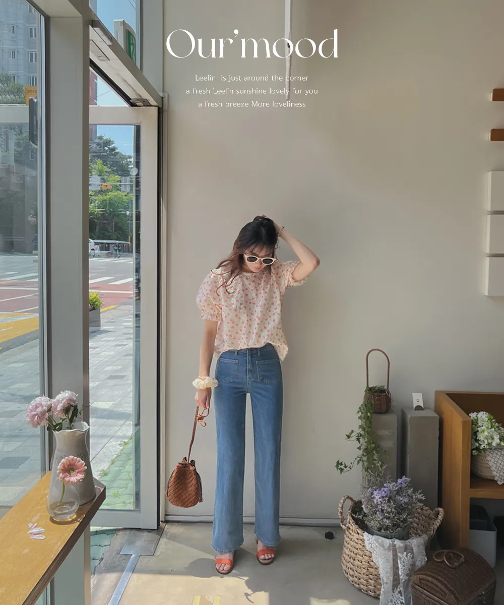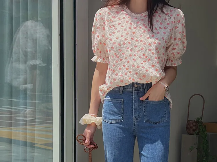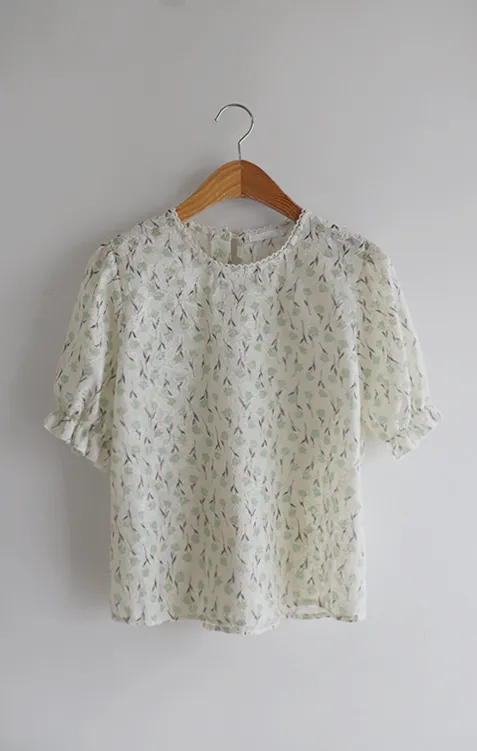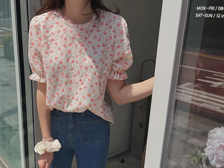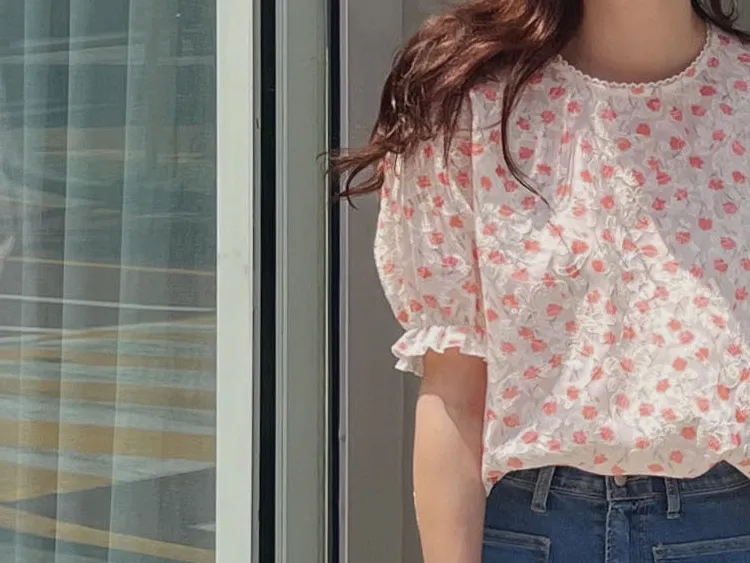 【明亮清新感】【添加花朵刺繡的奢華心情】【可愛的泡泡袖】【不易起皺