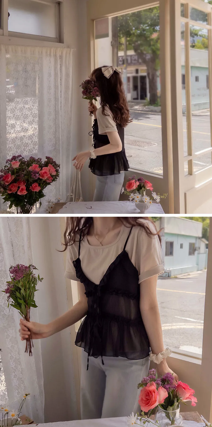 【繫上緞帶也能打造時尚造型】【營造出可愛的氛圍】【夏天搭配透視緊身胸衣,為整套造型增添活力】【推薦作為精緻的夏季單品