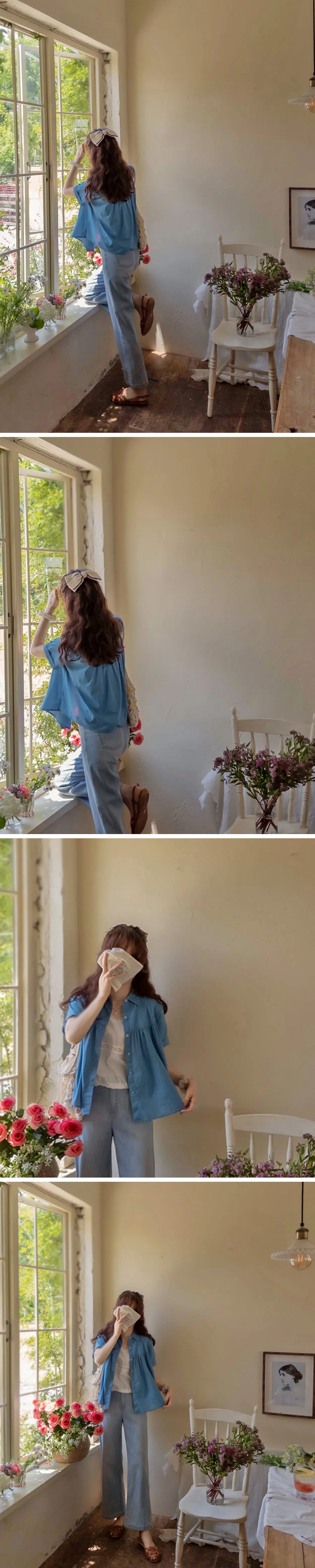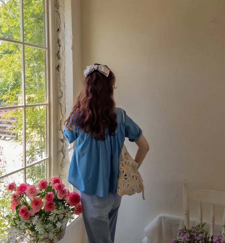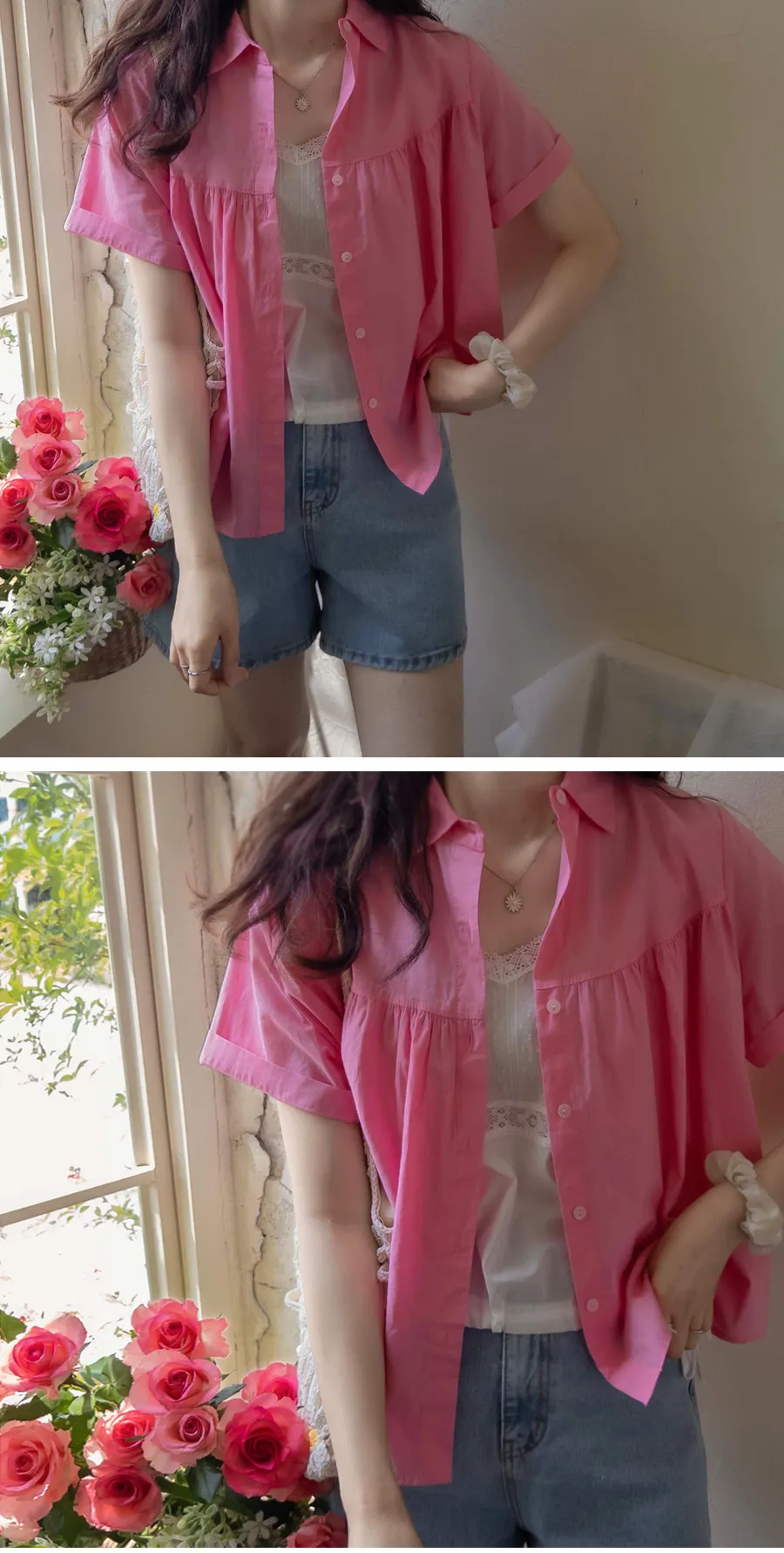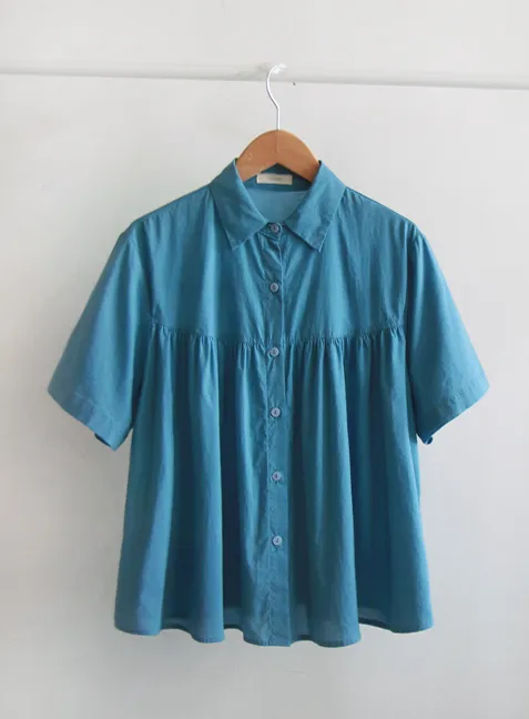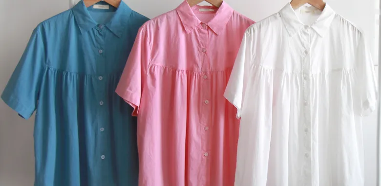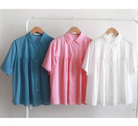 [涼爽的棉質:線編織得很細,輕盈,觸感柔軟] [洗滌處理] [顏色明亮、精緻的襯衫] [獨特設計,形成可愛的線條][百搭的襯衫,穿起來很漂亮] [柔和的夏季襯衫]