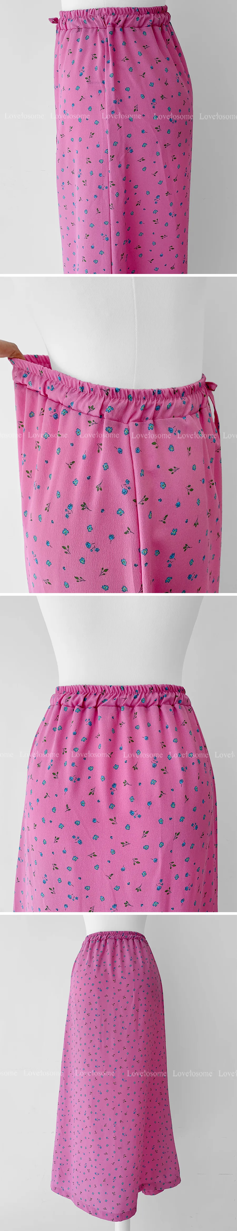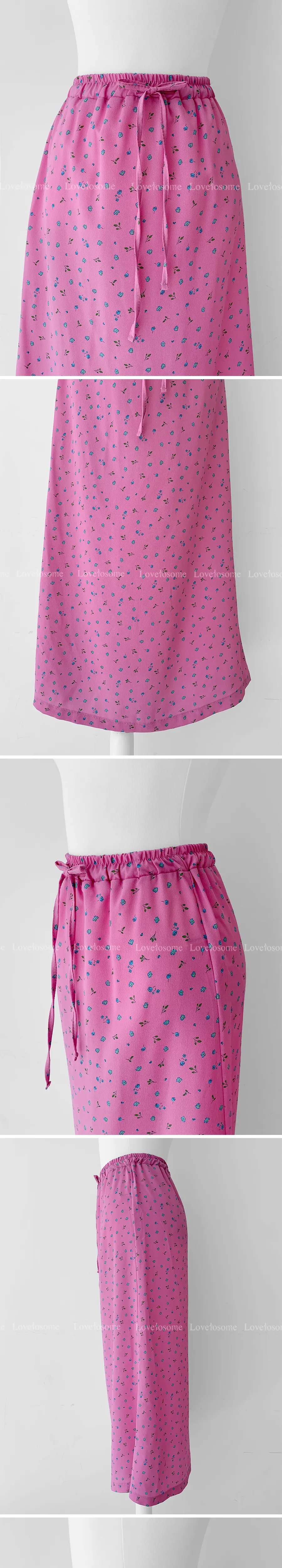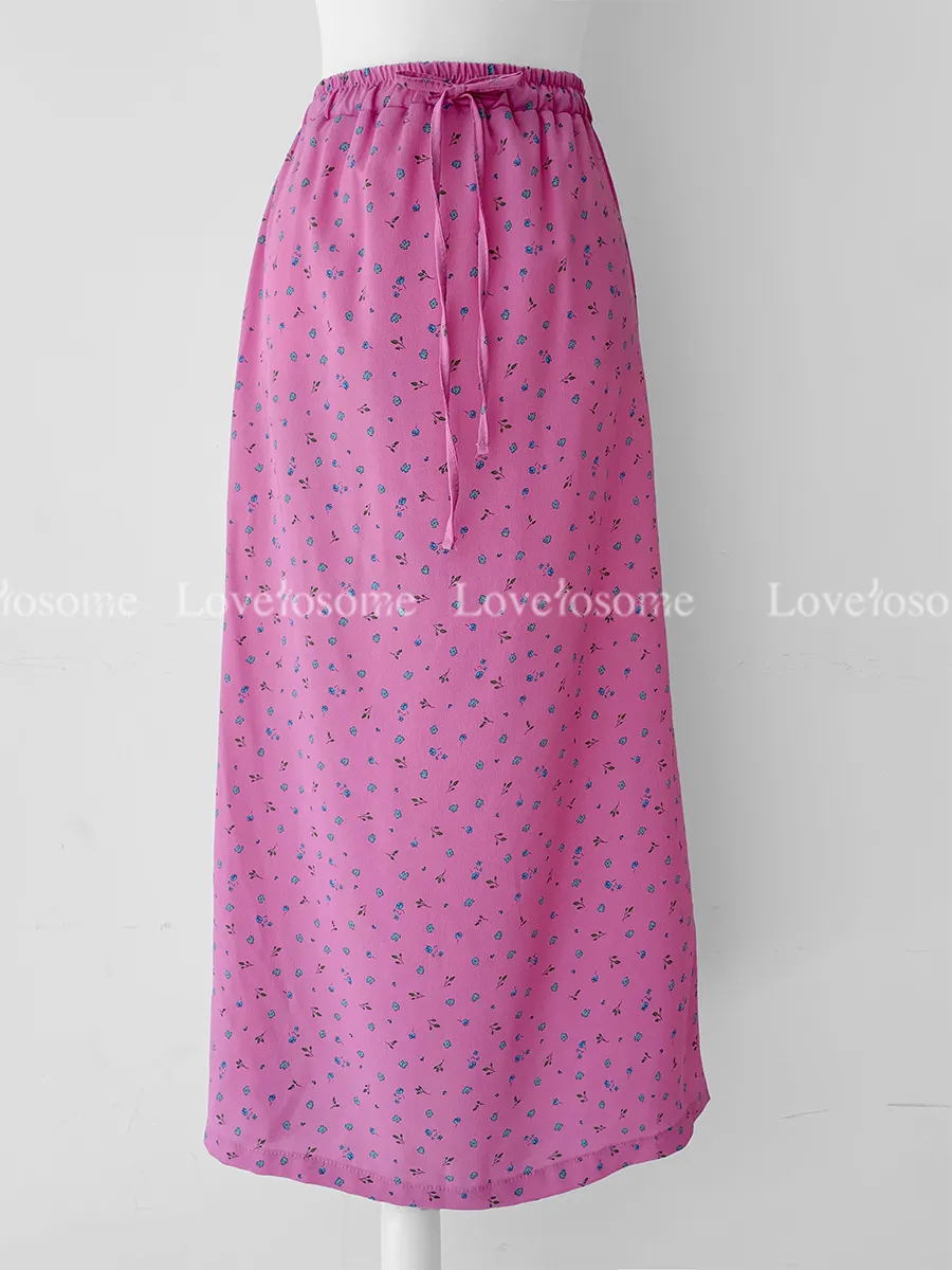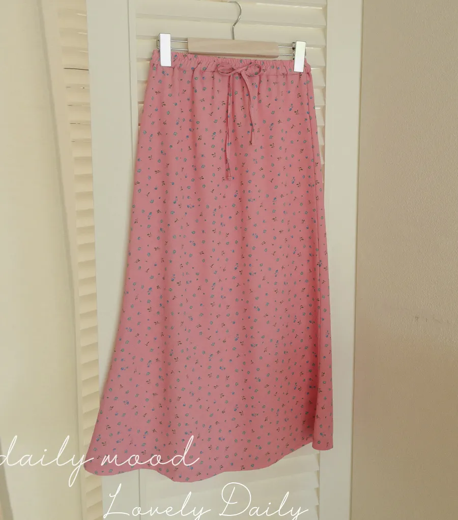 可愛小碎花柔軟輕款腰綁帶中長裙