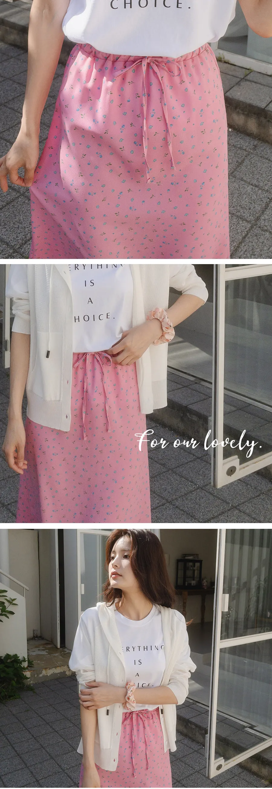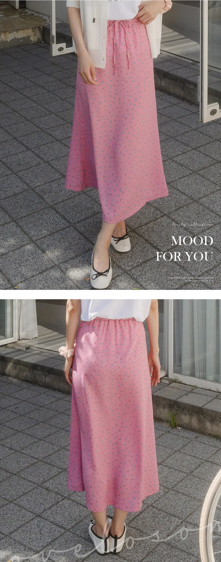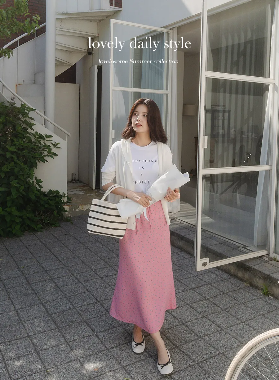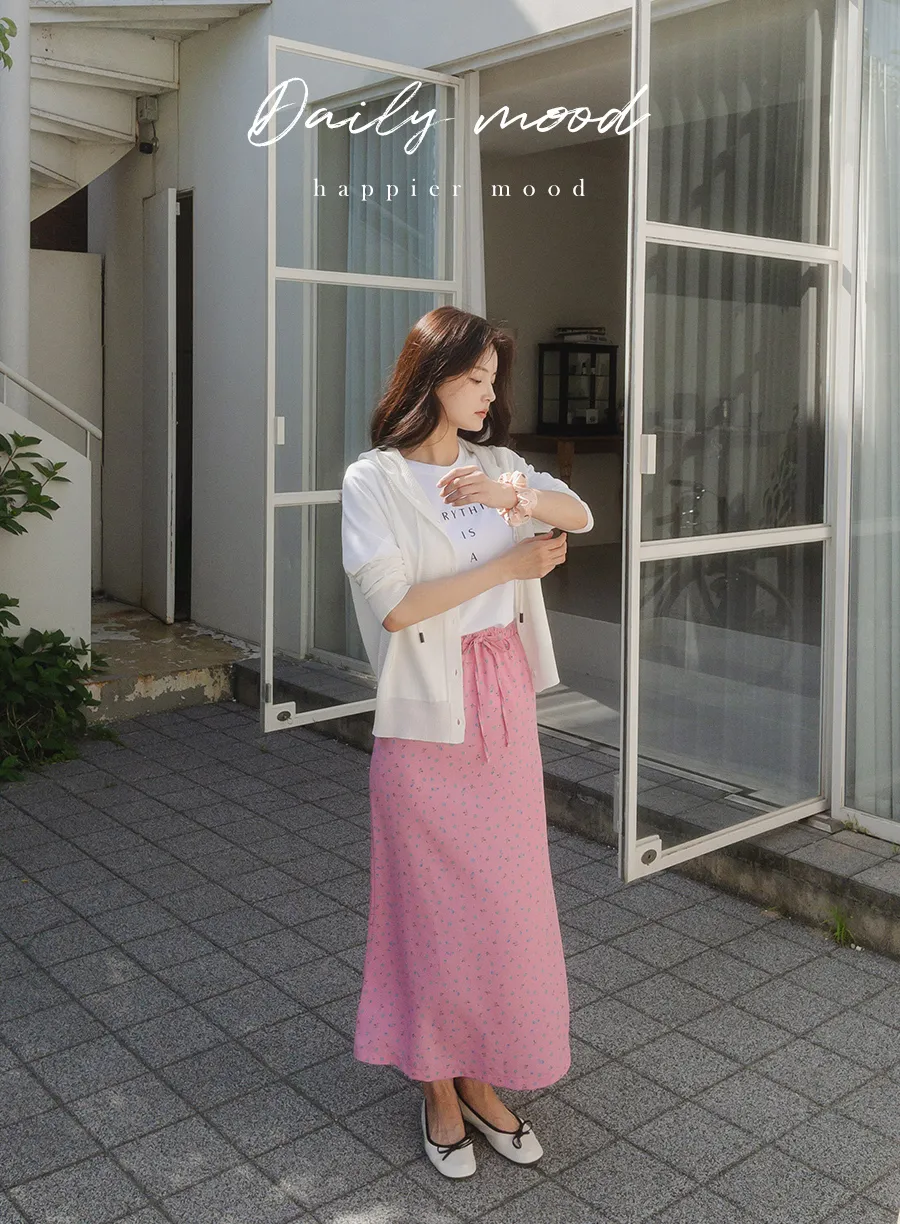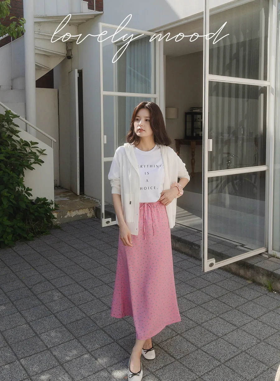 可愛小碎花柔軟輕款腰綁帶中長裙